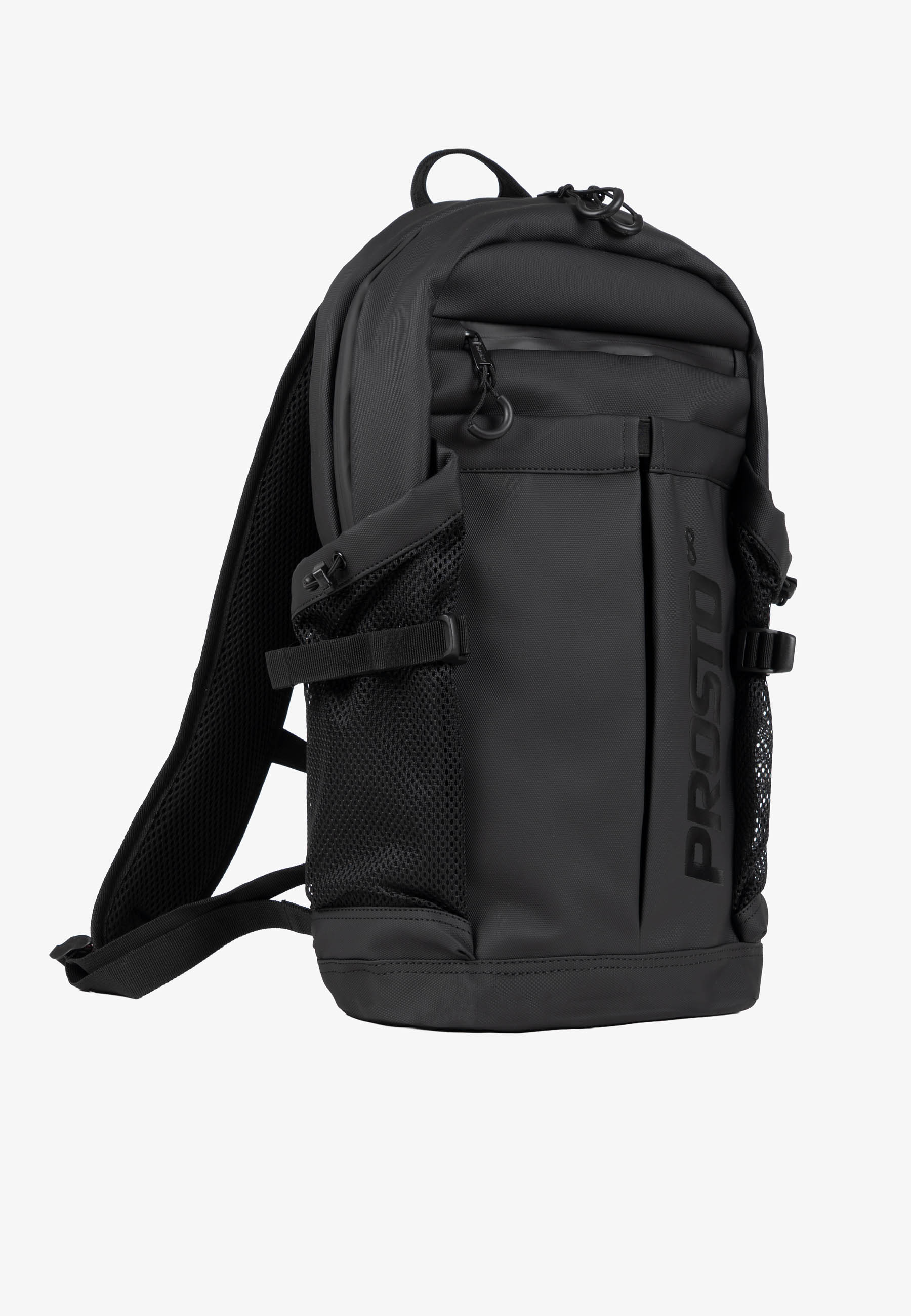Plecak Backpack Rack Black – czarny funkcjonalny plecak z kolekcji Prosto, zaprojektowany z myślą o intensywnym, codziennym użytkowaniu w mieście i w ruchu. Klasyczna, wyraźnie zarysowana forma dobrze układa się na plecach i oferuje dużą pojemność przy zachowaniu uporządkowanej bryły. Model wykonano z wytrzymałego materiału typu shell fabric, który dobrze chroni zawartość i sprawdza się w zmiennych warunkach. Rozbudowany system kieszeni – w tym duża przednia kieszeń oraz mniejsze przegrody – ułatwia organizację, a boczne kieszenie z siatki zwiększają funkcjonalność. Całość uzupełnia czarny, półgumowy nadruk Prosto oraz solidne detale techniczne.