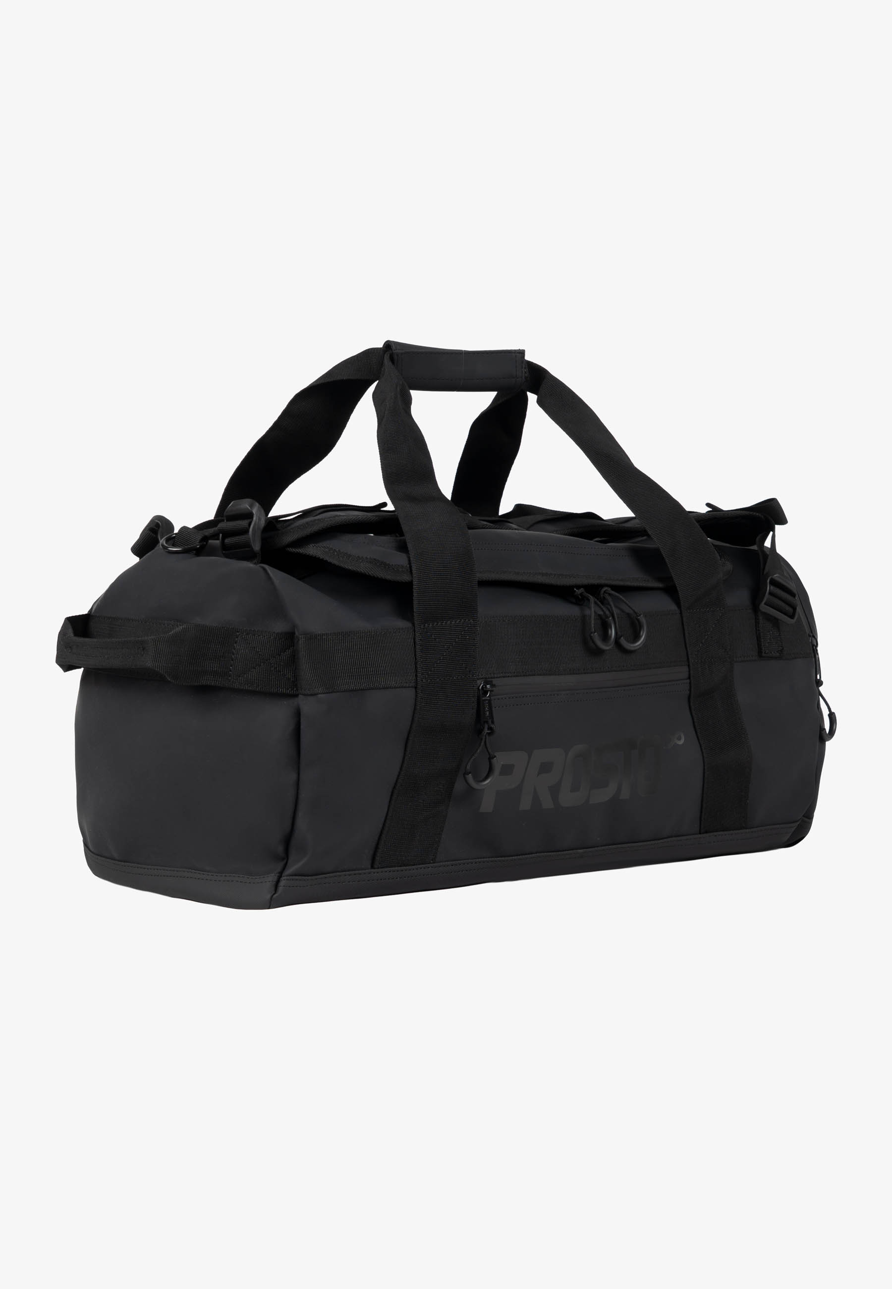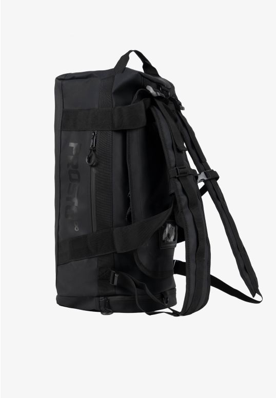 Torba podróżna Vault Bag Black – czarna pojemna torba z kolekcji Prosto, zaprojektowana z myślą o intensywnym użytkowaniu w podróży i na co dzień. Duża, cylindryczna forma o pojemności ok. 35 litrów bez problemu pomieści odzież, sprzęt treningowy lub bagaż na krótki wyjazd. Model został wykonany z wytrzymałego materiału typu good film polyester z wodoodpornym wykończeniem, który dobrze chroni zawartość przed wilgocią i uszkodzeniami. Torba posiada przestronną komorę główną zapinaną na odwrócony zamek, kieszeń frontową na szybki dostęp do drobiazgów oraz boczną kieszeń pomocniczą. Regulowane paski i uchwyty umożliwiają noszenie jej zarówno w ręce, jak i na plecach w formie plecaka. Całość dopełnia czarny, półgumowy nadruk Prosto, podkreślający techniczny charakter modelu.