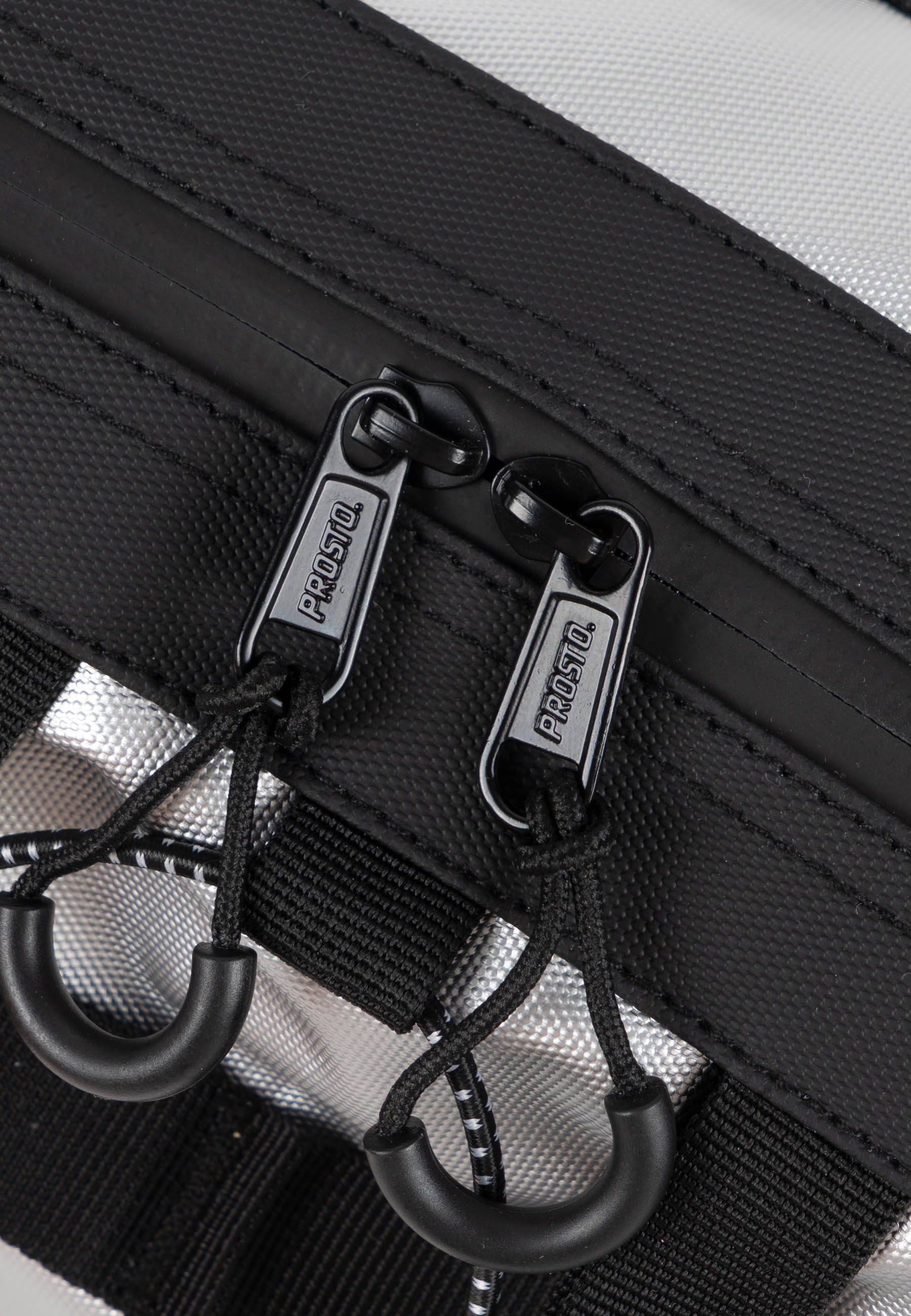 Torba Biker Bag Base Silver – funkcjonalna torba z kolekcji Prosto w srebrnym kolorze, zaprojektowana z myślą o maksymalnej wygodzie i wszechstronnym użytkowaniu. Możesz nosić ją jako streetbag na ramieniu lub crossbody, albo przymocować bezpośrednio do ramy roweru – w zależności od potrzeb i stylu poruszania się po mieście. Pojemna konstrukcja bez problemu pomieści cienką bluzę, butelkę o pojemności 0,5 l oraz wszystkie niezbędne drobiazgi w jednym miejscu. Elastyczne gumy na froncie pozwalają dodatkowo przymocować bluzę lub ręcznik, zwiększając funkcjonalność torby w ruchu. Wodoodporne panele boczne i solidna konstrukcja chronią zawartość przed wilgocią, a techniczny wygląd podkreśla nowoczesny, użytkowy charakter modelu.