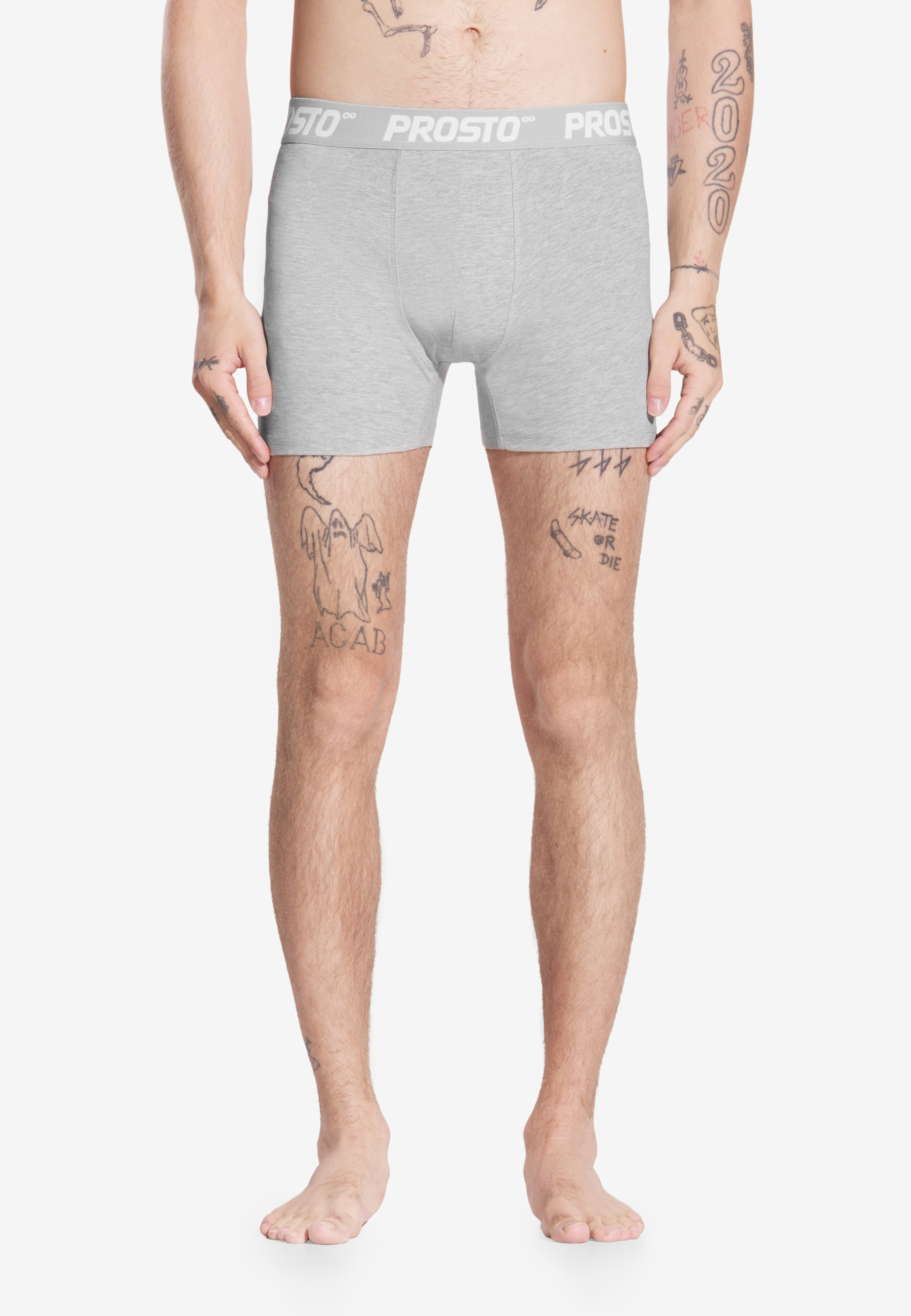 Boxers 3pack Gray – męskie bokserki Prosto o regularnym, dopasowanym kroju, wykonane z miękkiej bawełny z dodatkiem elastanu. Stonowany, szary kolor w połączeniu z elastyczną taśmą z logo tworzy minimalistyczny, a jednocześnie charakterystyczny design. Idealne na co dzień – wygodne, przewiewne i trwałe. Sprzedawane w praktycznym zestawie 3 sztuk.