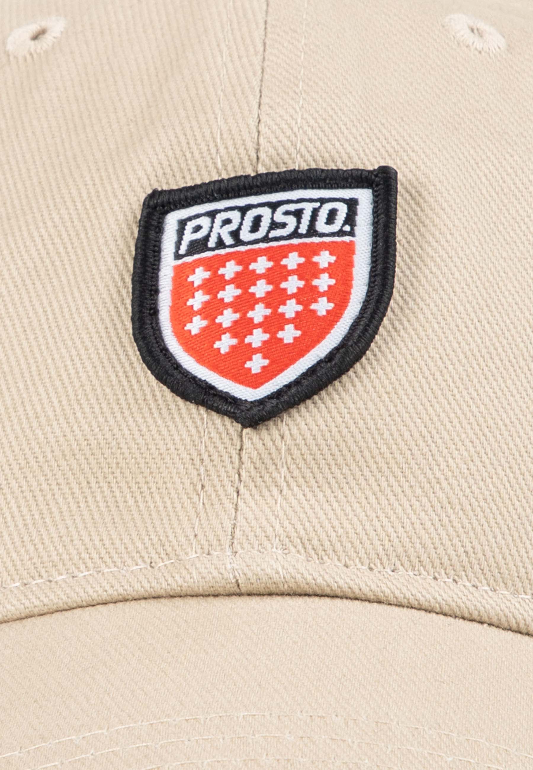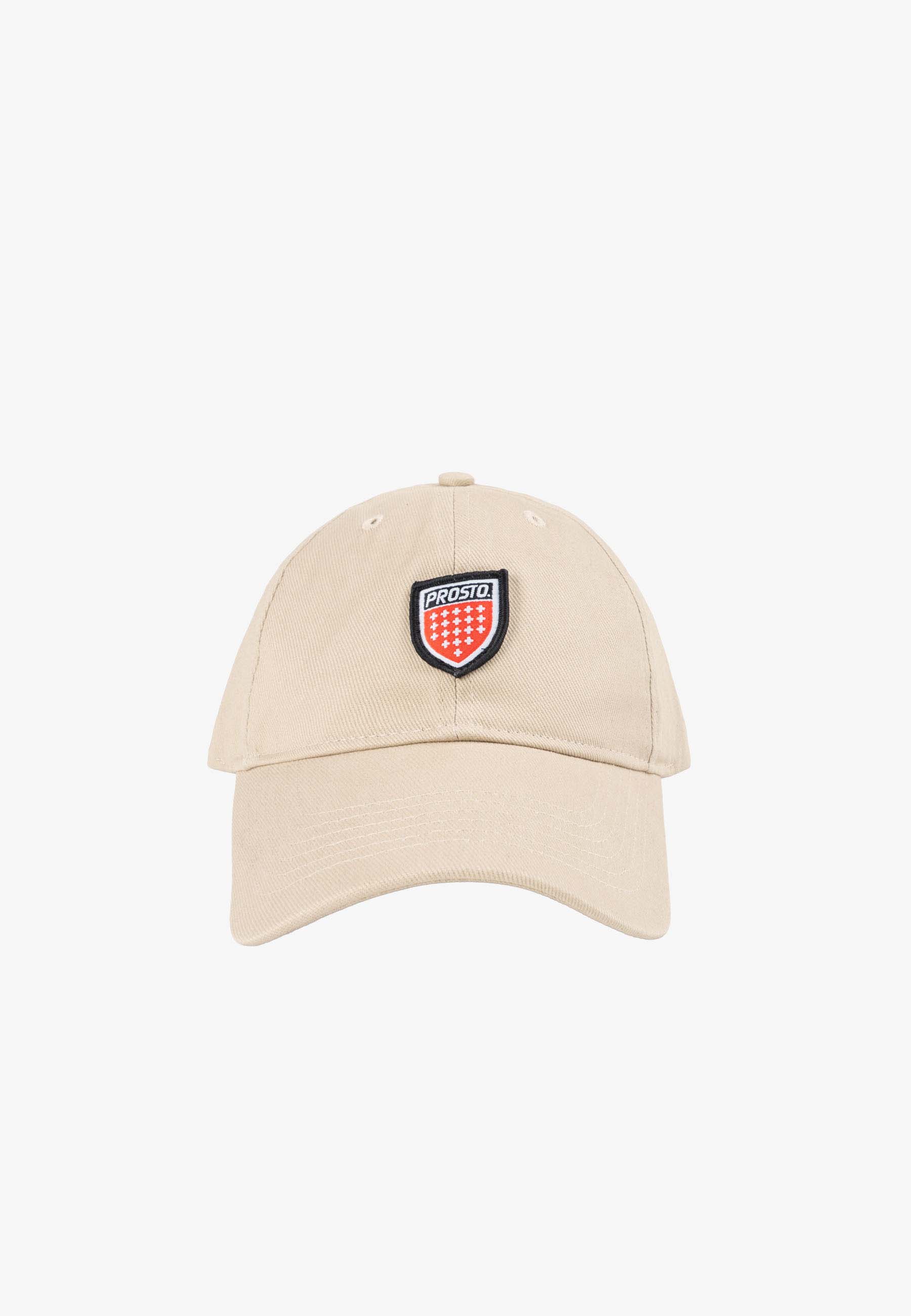 Czapka z daszkiem Cap Shield Beige – beżowa męska czapka z daszkiem Prosto w klasycznym, sześciopanelowym kroju, wykonana z bawełnianej tkaniny typu twill (100% bawełna). Beżowa kolorystyka nadaje jej lżejszy, bardziej neutralny charakter, który łatwo wpasowuje się w codzienne stylizacje. Na froncie znajduje się żakardowa naszywka z kultową tarczą Prosto – mocny, rozpoznawalny detal osadzony w czystej formie. Regulacja w formie paska z metalową klamrą pozwala na szybkie dopasowanie, a całość trzyma się sprawdzonego schematu: klasyk, który po prostu działa.