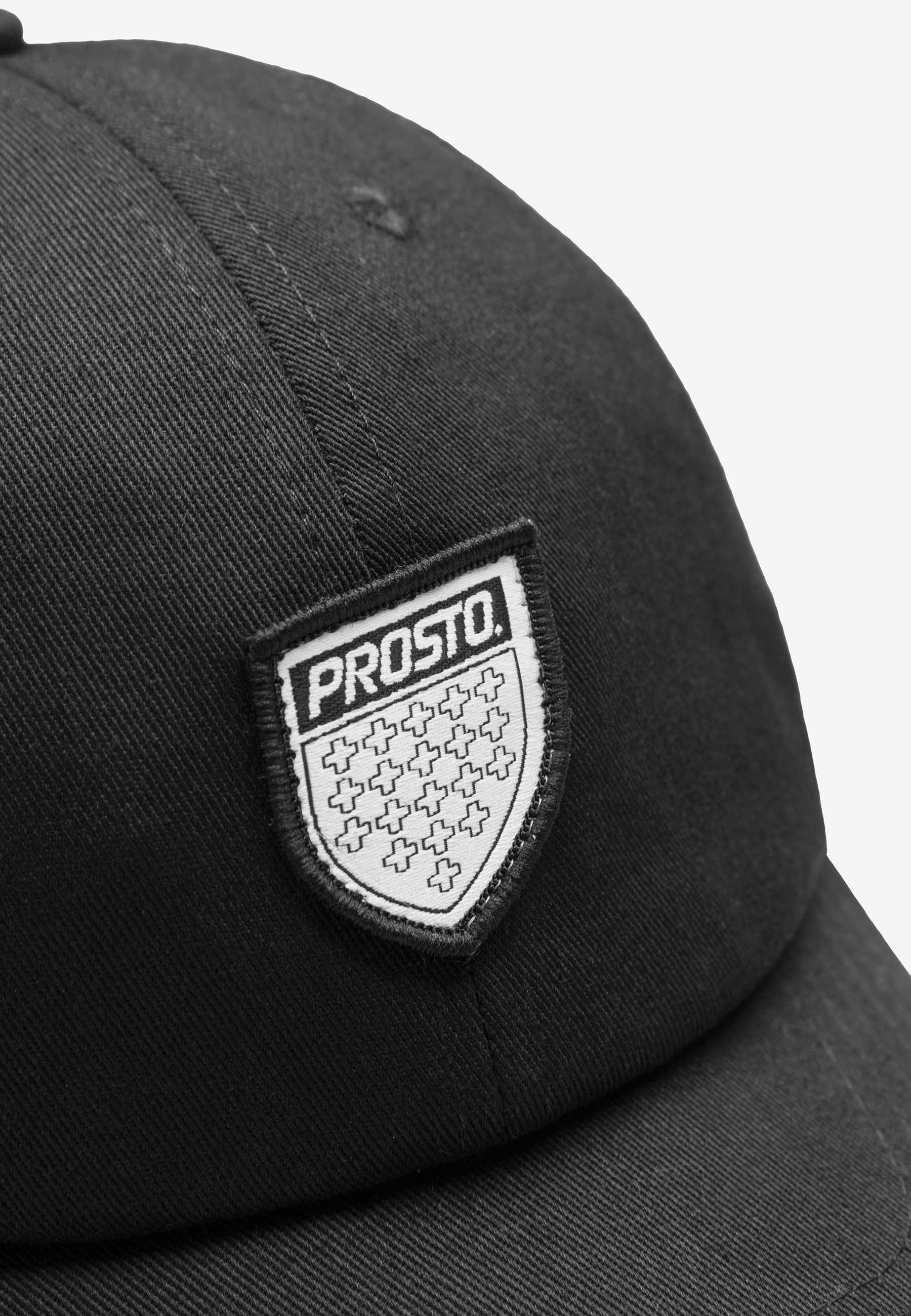 Cap Shield White – klasyczna czapka z daszkiem z kolekcji Prosto, ozdobiona naszywką w kształcie tarczy na froncie. Uniwersalna czerń połączona z kontrastową, białą tarczą tworzy ponadczasowy dodatek do każdej streetwearowej stylówki. Regulowane zapięcie z tyłu pozwala dopasować czapkę do głowy, a bawełniany materiał zapewnia komfort noszenia na co dzień.