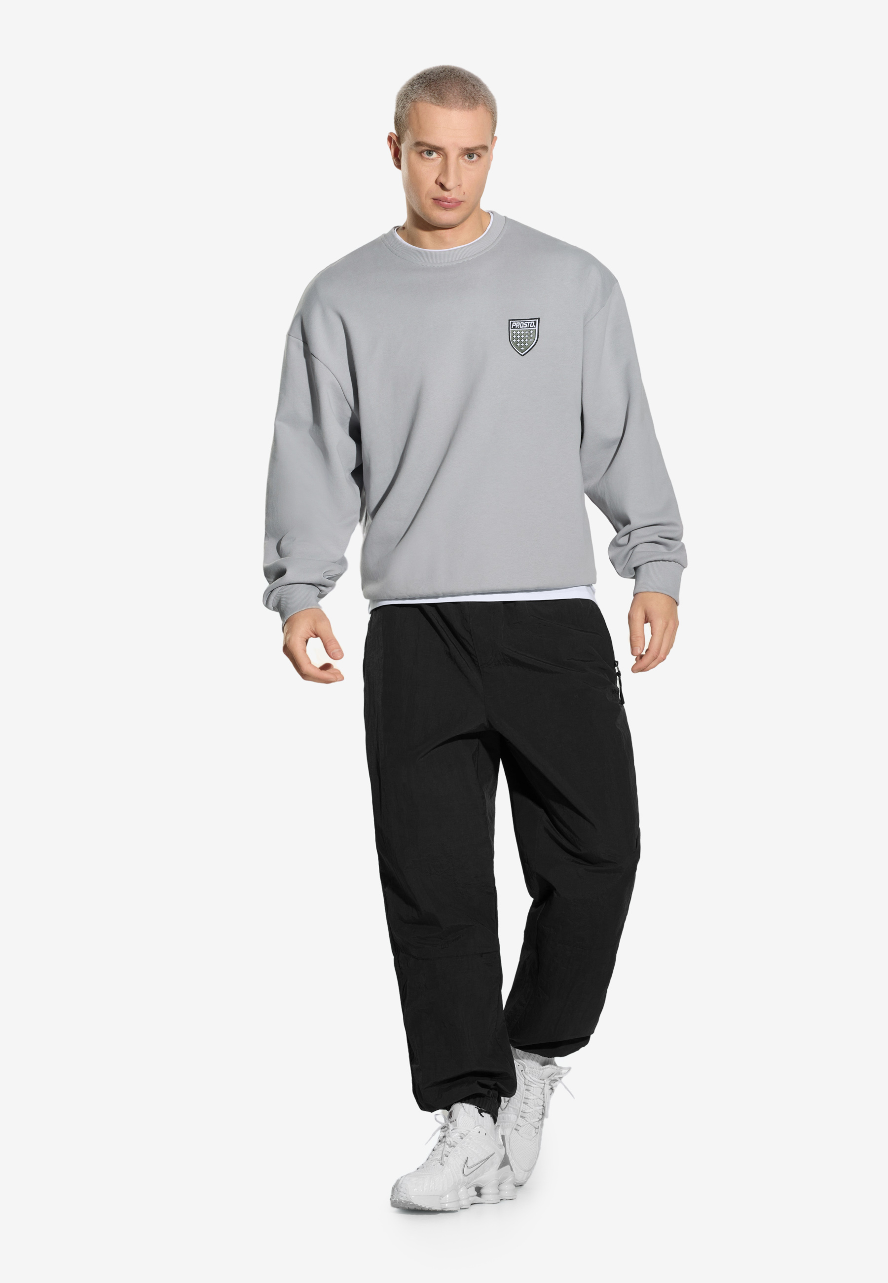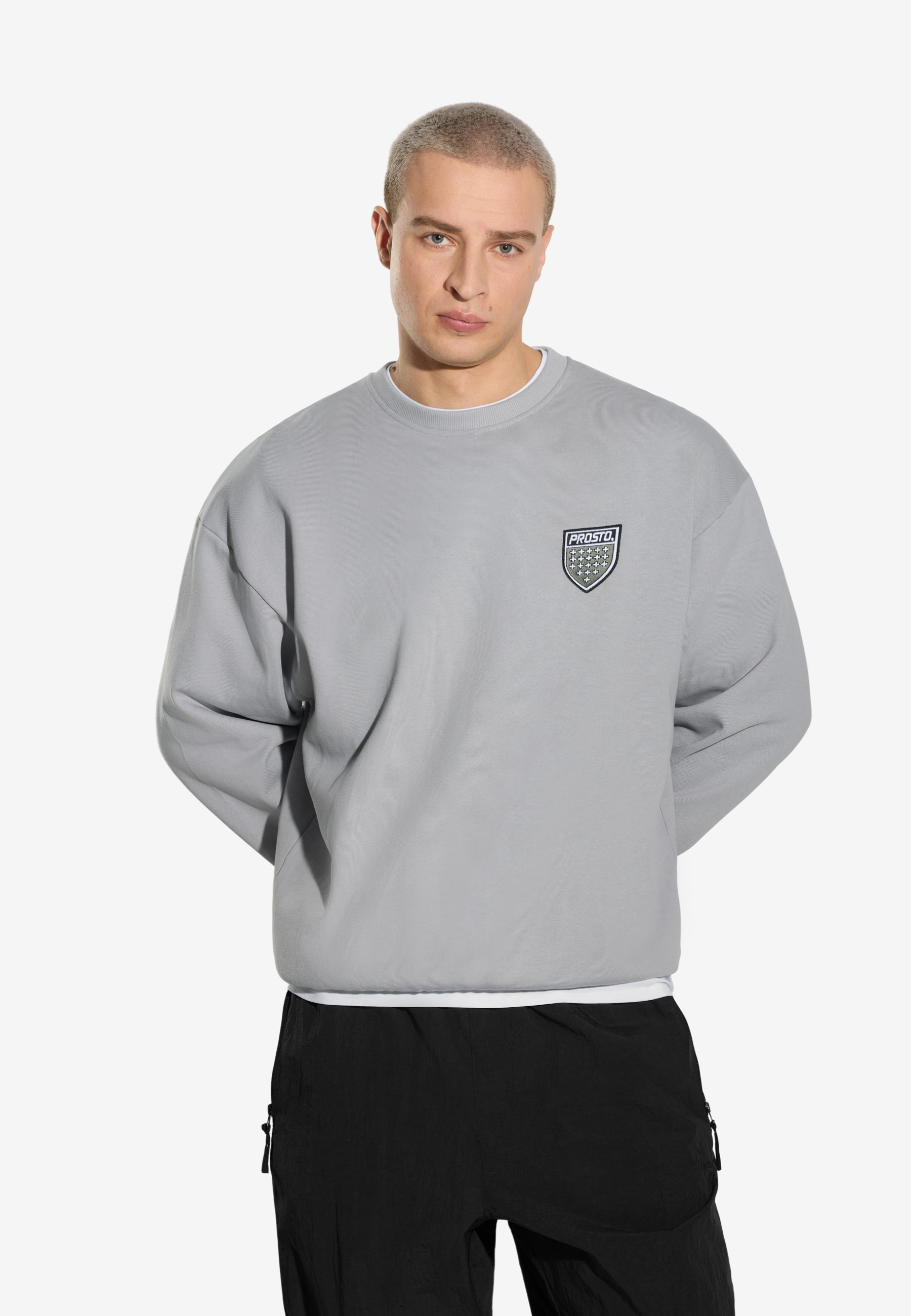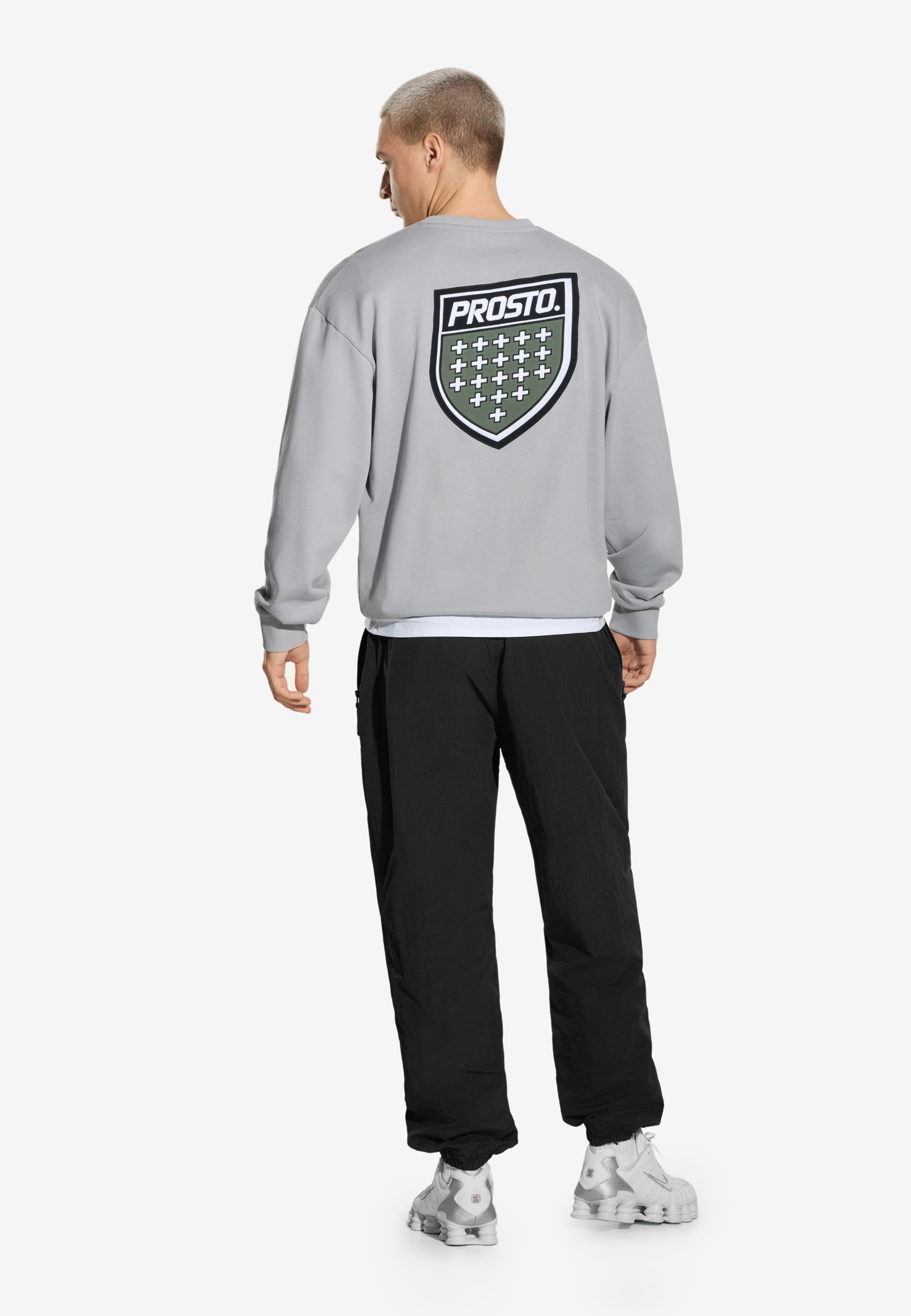 Crewneck Shield Washed Gray – bluza z kolekcji Prosto, wchodząca w skład dropu wykorzystującego motyw kultowej tarczy marki. Oversize’owy krój i efekt sprania nadają jej surowego, vintage’owego charakteru, a haftowane logo z przodu i duża tarcza Prosto na plecach podkreślają jej streetowy, charakterystyczny styl. Wykonana z grubej dzianiny typu french terry, bluza łączy komfort z solidnym wykonaniem. Elastyczne ściągacze w pasie i przy rękawach zapewniają wygodne dopasowanie i trwałość w codziennym noszeniu.