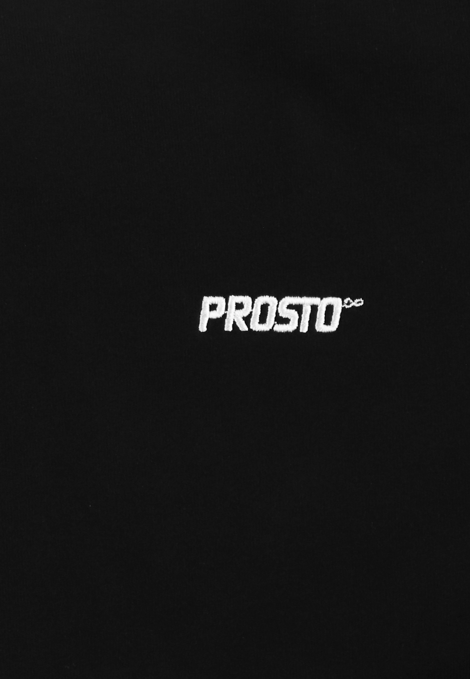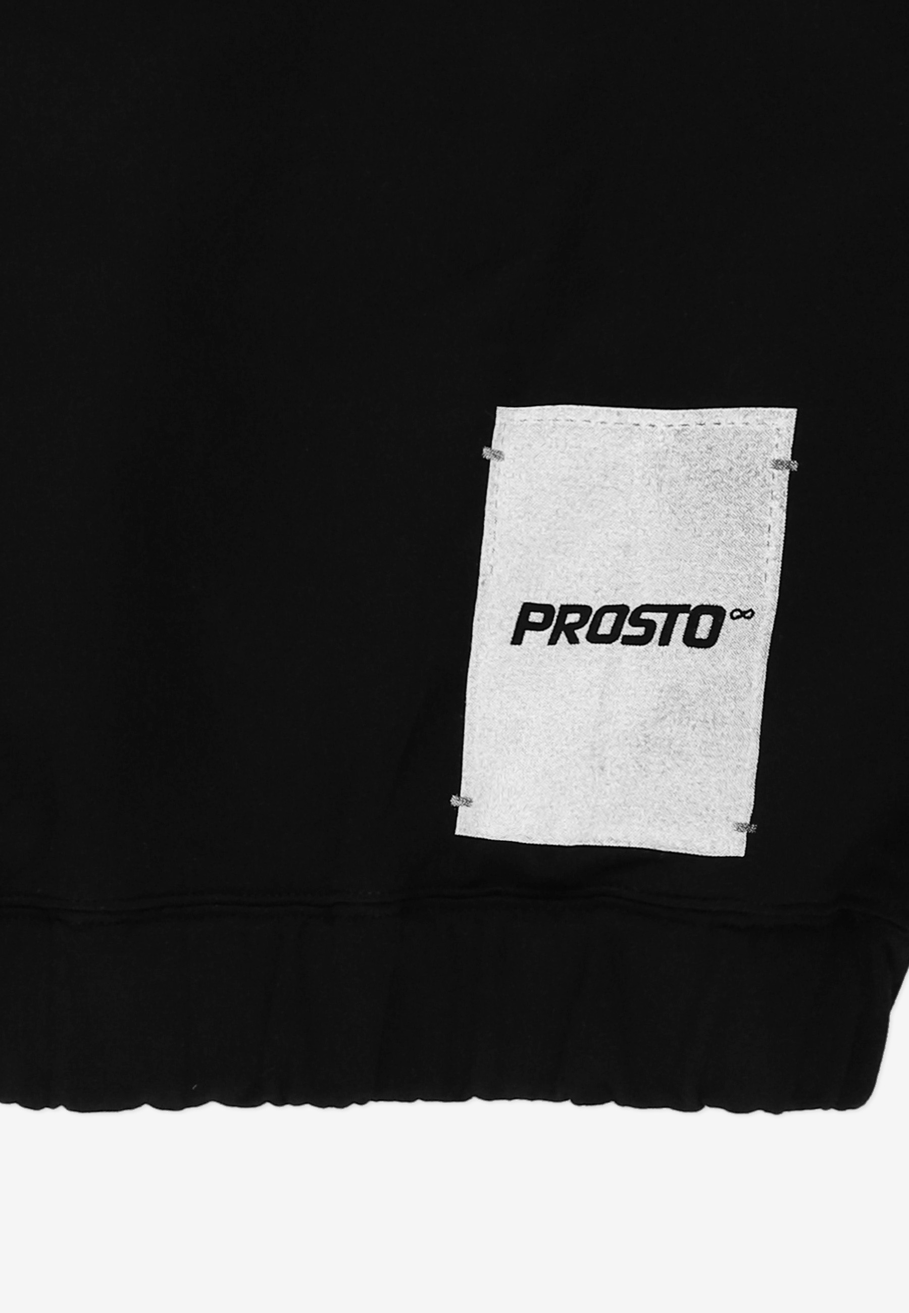 Hoodie Bomb Black – damska bluza z kapturem z kolekcji Prosto w klasycznym, czarnym kolorze. Ma oversize’owy, lekko skrócony krój z obniżoną linią ramion i wydłużonymi rękawami, które nadają jej charakterystyczny, luźny look. Wykonana z grubej bawełny typu pętelka – to klasyczny, solidny materiał, który dobrze trzyma formę i zapewnia pełen komfort noszenia. Model ma głęboki, obszerny kaptur ze sznurkiem do regulacji oraz rękawy zakończone wszytą gumką, co dodaje całości objętości i miękko układa się przy nadgarstkach. Z przodu znajduje się haft z logo Prosto, a z tyłu – print wykonany metodą sita wodnego. To bluza, która łączy minimalizm z wyrazistym, streetowym charakterem.