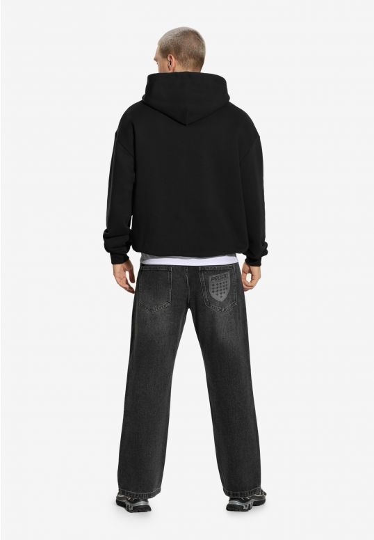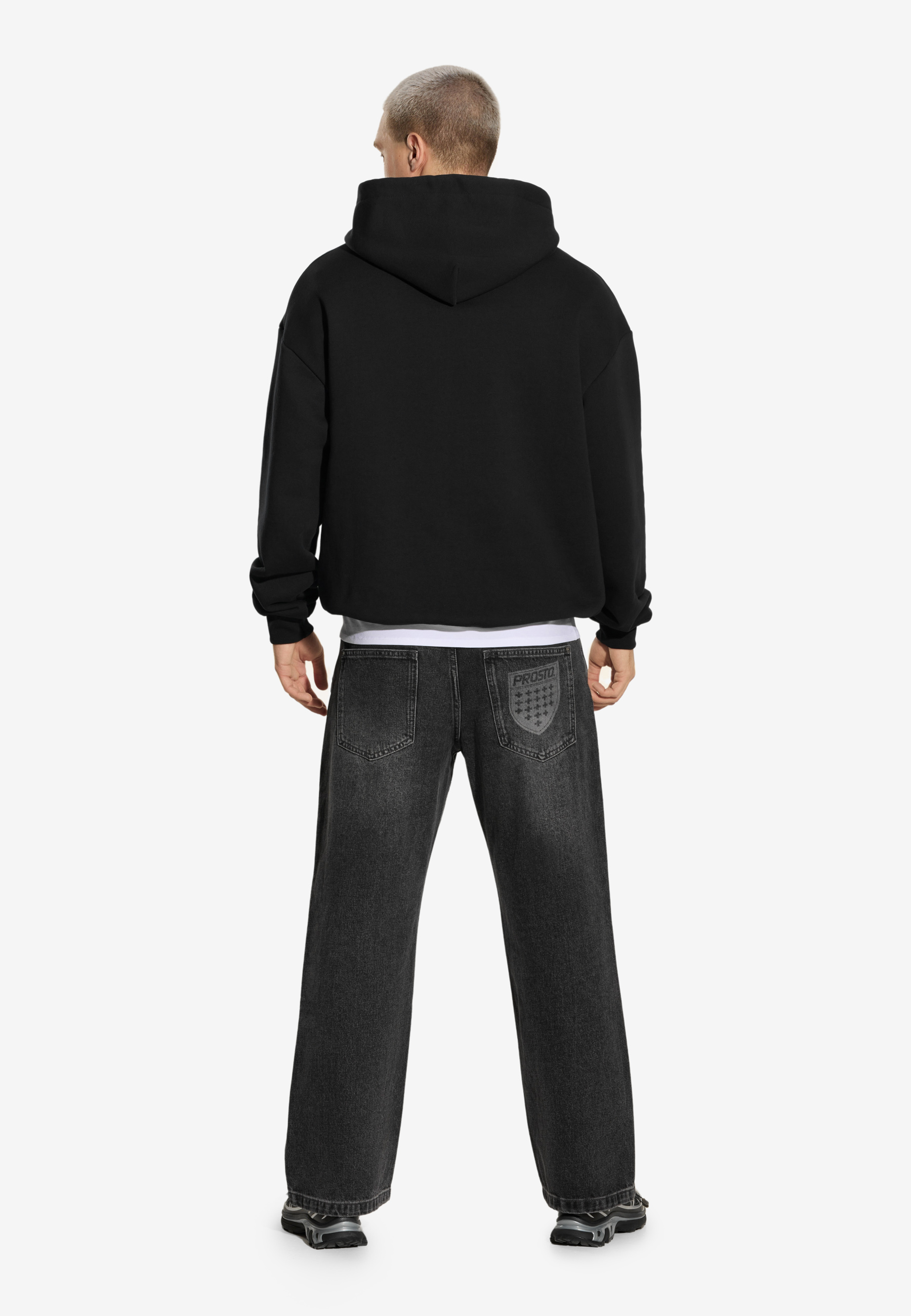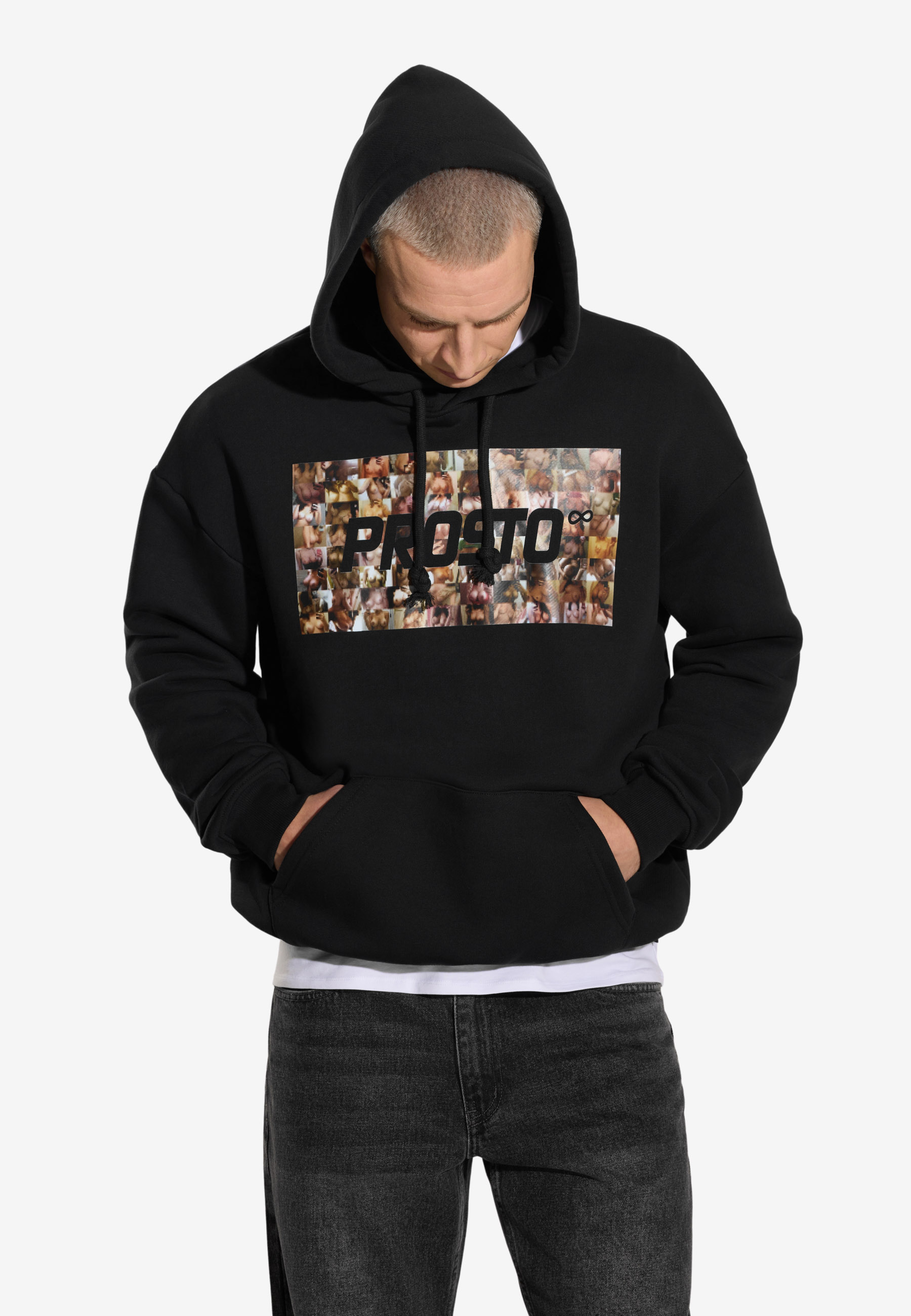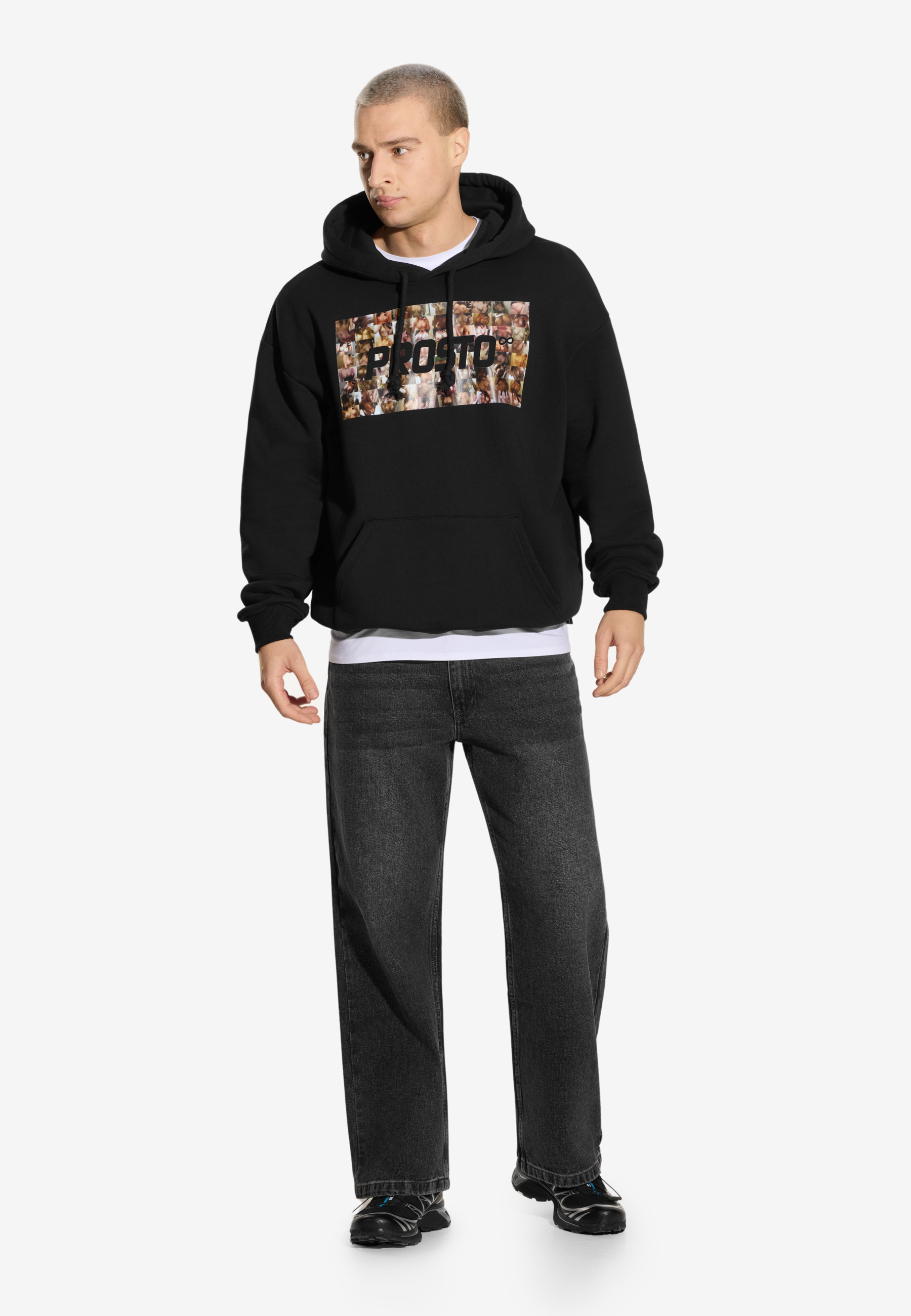 Hoodie Cams Black – męska bluza z kapturem z kolekcji Prosto Not Safe For Work (NSFW). Nadruk na froncie to kolaż złożony z rozmazanych, pikselowych kadrów pochodzących z kamerek internetowych – prowokacyjny, ale utrzymany w artystycznej, konceptualnej formie. Kontrast między mocnym motywem graficznym a minimalistyczną czernią nadaje bluzie charakter statement piece, typowy dla linii NSFW. Luźny, loose fit krój i gruba bawełna typu pętelka zapewniają wygodę, trwałość oraz odpowiednią strukturę materiału. To projekt balansujący na granicy sztuki i kontrowersji, który reinterpretując internetową kulturę, pozostaje wierny archiwalnemu DNA marki Prosto.