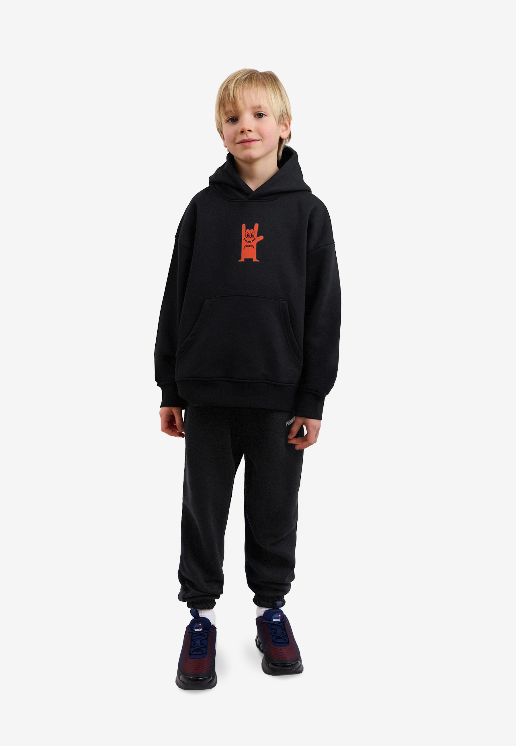 Hoodie Grunge – dziecięca bluza z linii Prosto Kids, inspirowana estetyką grunge’u i surową energią alternatywnej sceny muzycznej. Model ma klasyczny, regularny krój i wykonany jest z miękkiej dzianiny fleece, która zapewnia ciepło i komfort najmłodszym. Na froncie umieszczono charakterystyczną grafikę - czerwoną, zabawną rączkę ułożoną w rockowy znak "rogów", połączoną z logo Prosto. Ilustracja została stworzona przez Michała Lobę, znanego z wyrazistego, humorystycznego stylu. Całość dopełniają elastyczne ściągacze oraz praktyczna kieszeń kangurka.