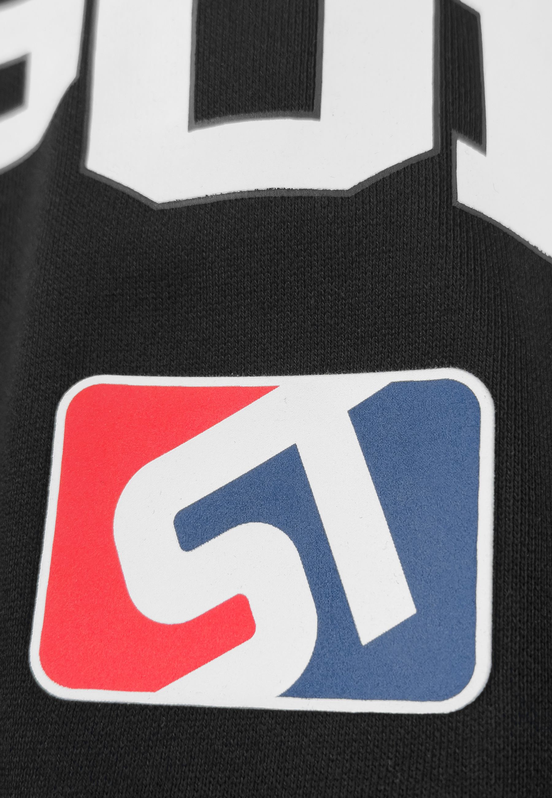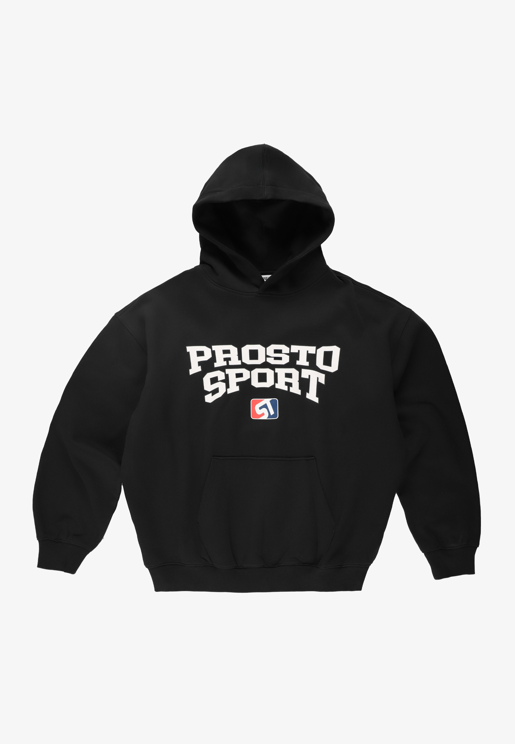 Hoodie Lounge Black - męska bluza z kapturem z kolekcji Prosto o kroju oversize i mocnym, sportowym DNA. Czarna baza buduje czystą, zdecydowaną sylwetkę, a nadruk Prosto Sport jest bezpośrednim nawiązaniem do archiwalnej linii o tej samej nazwie. College’owa typografia nadaje całości drużynowy charakter - nawet jeśli grasz solo. Gruba bawełna zapewnia miękkość w dotyku i jednocześnie stabilną, konkretną strukturę. Kaptur trzyma formę, kieszeń kangurka podkreśla funkcjonalny vibe, a połączenie sitodruku plastisolowego z nadrukiem HD buduje wyraźny kontrast i głębię detalu. To hoodie, która wygląda jak element uniformu - zakładasz i wchodzisz w tryb Prosto Sport.