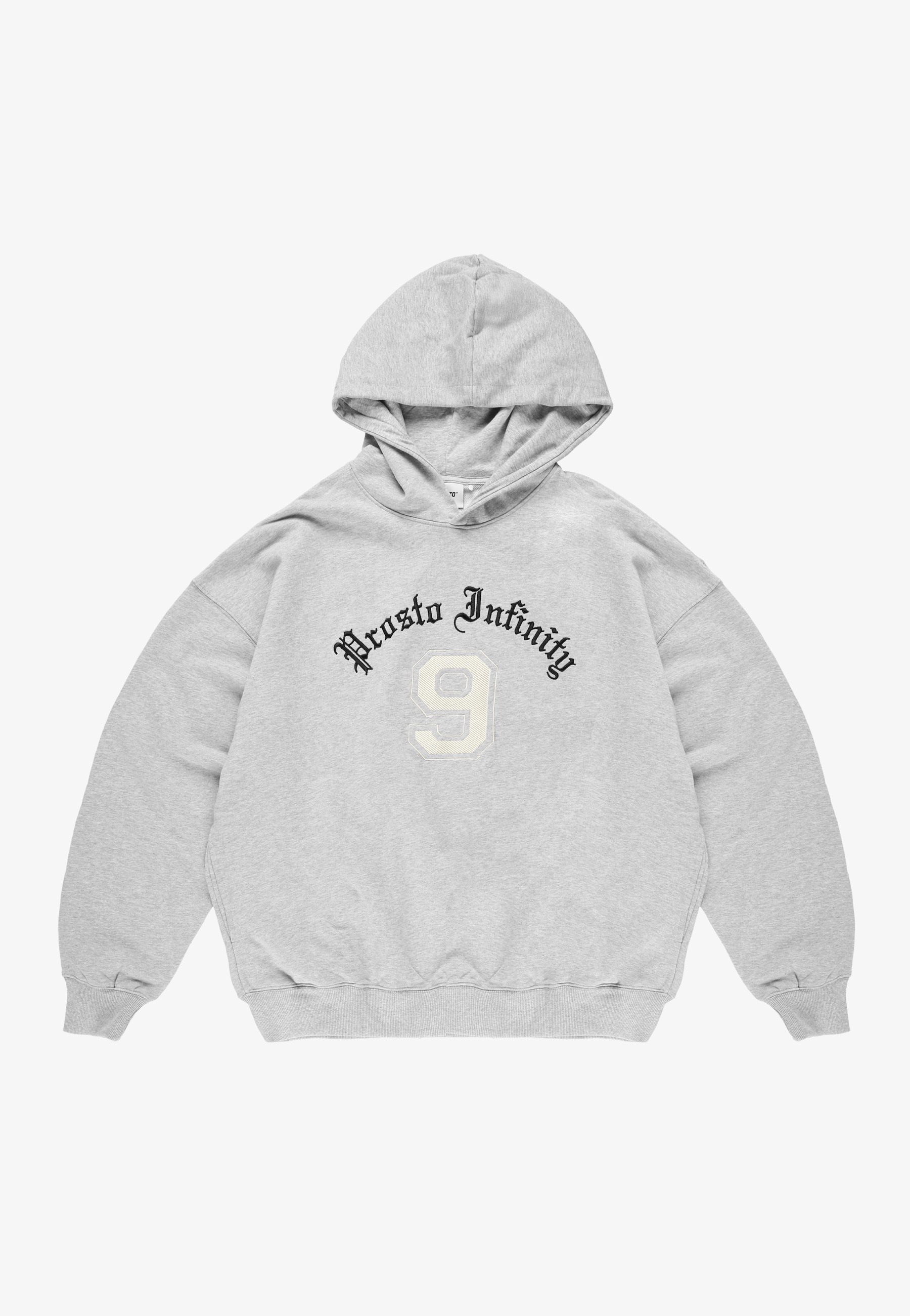 Hoodie Nine Gray – szara męska bluza o kroju oversize, w której kontrast buduje cały klimat. Gotycki napis "Prosto Infinity" zestawiony z numerem 9 inspirowanym typografią z trykotów piłkarskich tworzy mocne, wyraziste połączenie. Surowa estetyka liter kontra sportowy charakter numeru – dwa światy, jeden front. Szary melanż podbija ten efekt i nadaje całości bardziej archiwalny vibe. Wykonana w 100% z bawełny typu french terry. Gruba dzianina trzyma fason, a boczne kieszenie ukryte w szwach zachowują czystą sylwetkę. Postaw na element, który zrobi look.