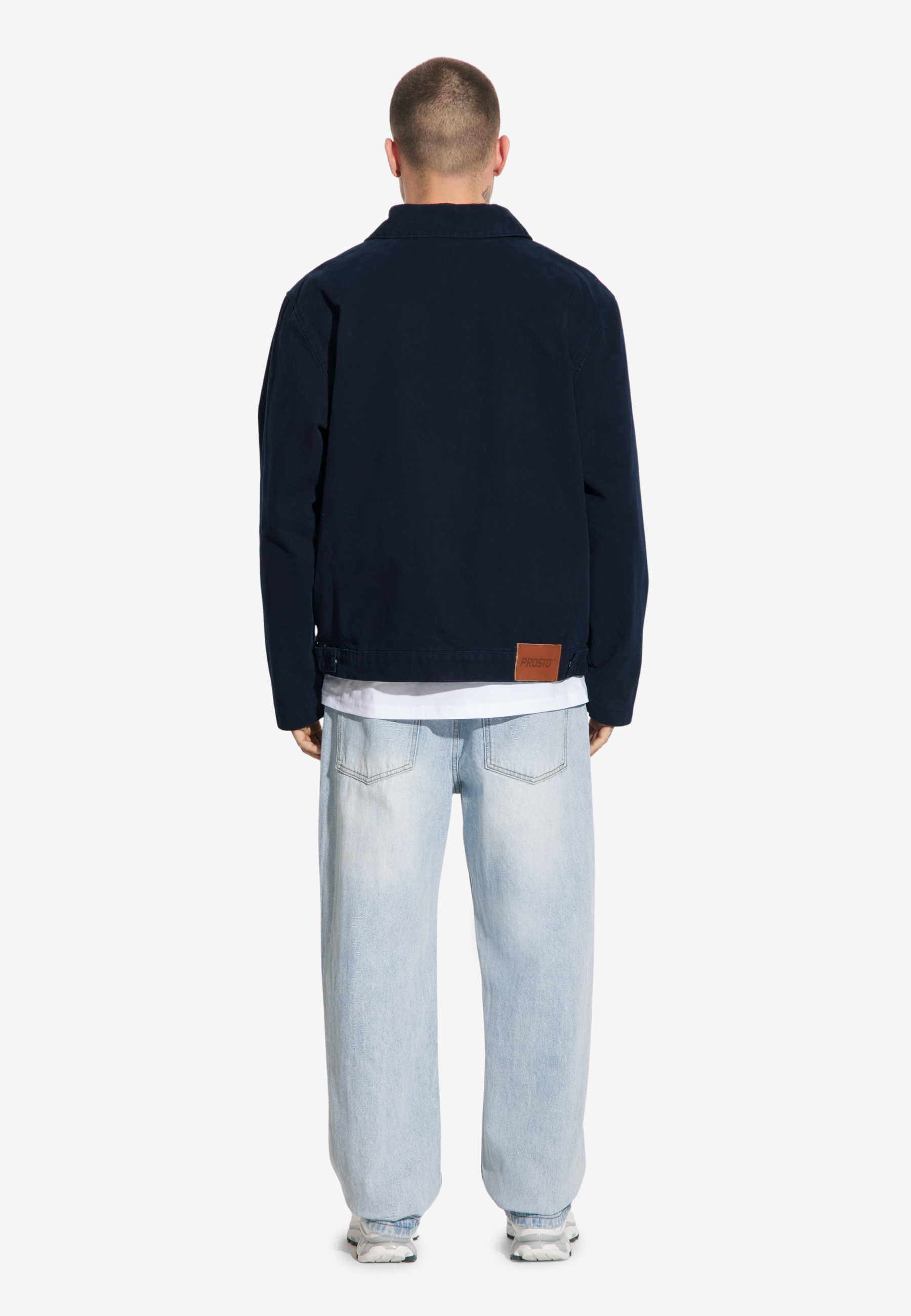 Jacket 24-HR Navy – inspirowana odzieżą roboczą, stworzona z myślą o miejskim rytmie. Uszyta z ciężkiej bawełny o gramaturze 418 g/m², z flanelową podszewką w kratę, łączy trwałość z komfortem. Metalowy zamek z logo Prosto Infinity, haftowane „P” na piersi i ukryte kieszenie na zatrzaski podkreślają solidny, dopracowany charakter. Prosta, wytrzymała i gotowa na wszystko.
