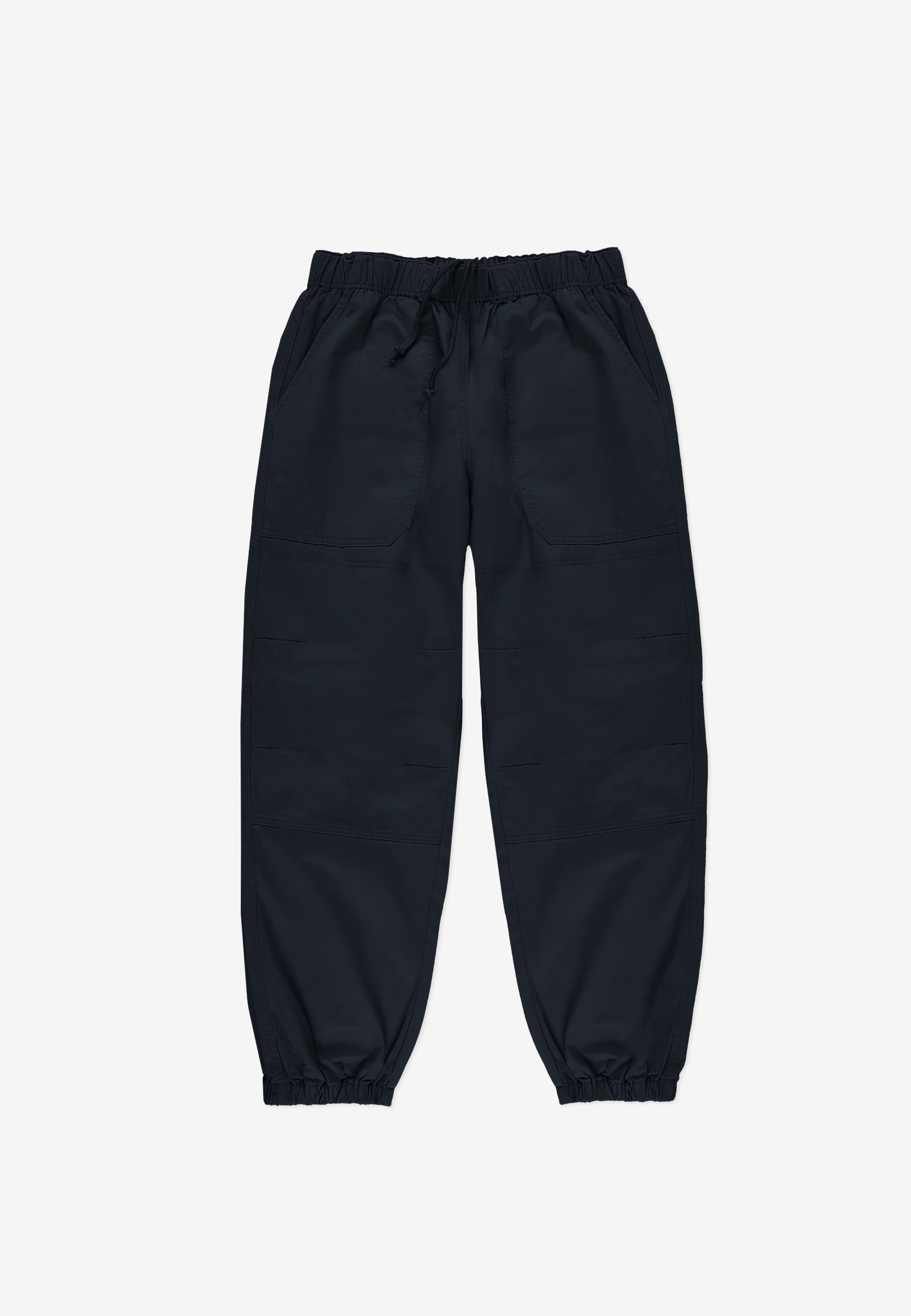 Pants Jogger Baggy Slate Navy – luźne, wygodne spodnie joggery, które łączą streetwearowy charakter z codziennym komfortem. Mają obniżony krok i szerokie nogawki zakończone ściągaczami, co nadaje im swobodny, miejski look. Elastyczna talia regulowana sznurkiem pozwala na idealne dopasowanie, a żakardowa naszywka z logo Prosto umieszczona nad tylną kieszenią podkreśla ich oryginalny charakter.
