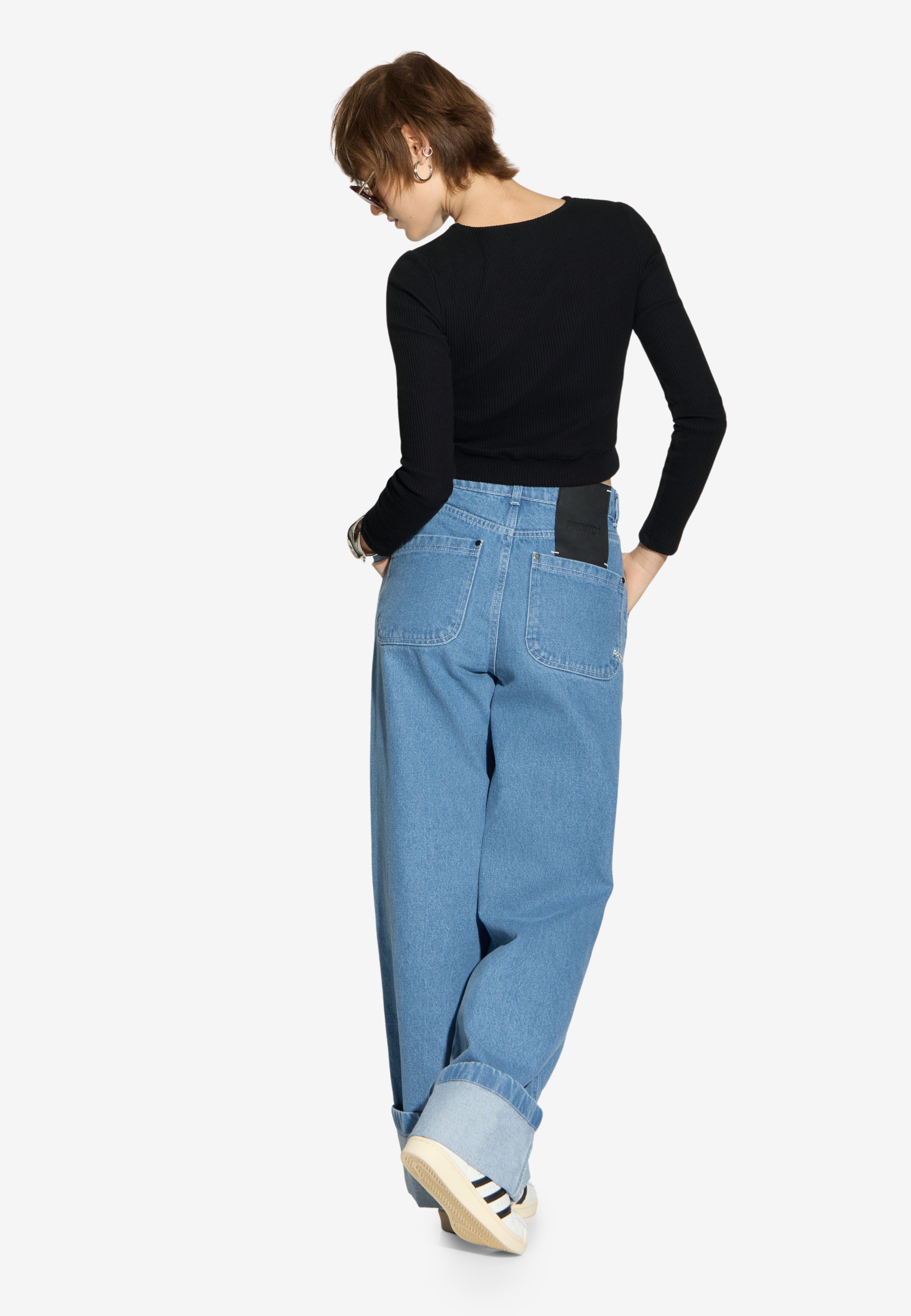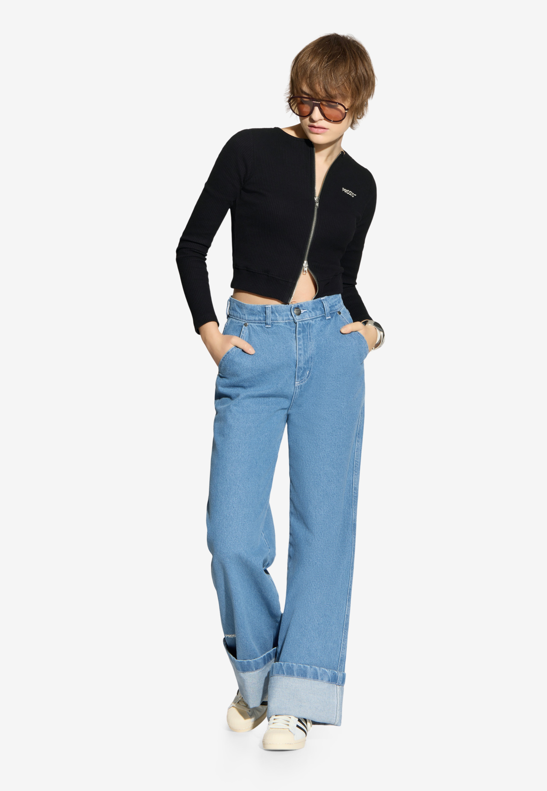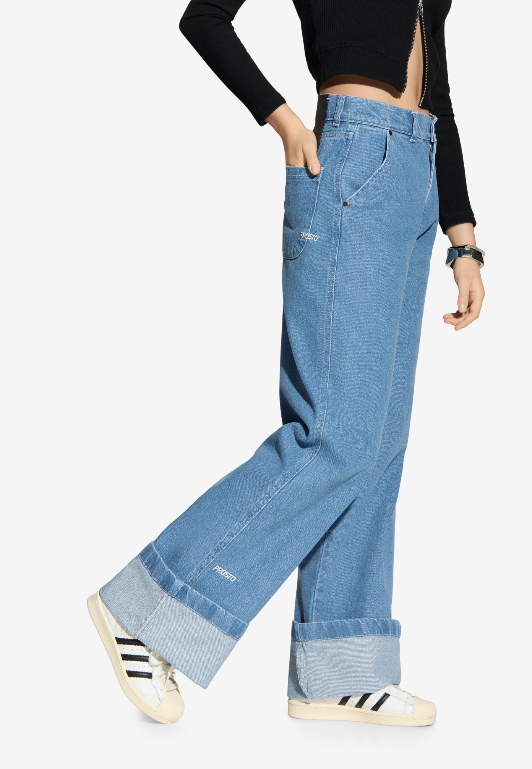 Long Pants Work Light Blue – damskie spodnie z kolekcji Prosto w kolorze jasnego, spranego denimu. Mają luźny, baggy krój z prostą nogawką zakończoną wywinięciem, które dodaje im luzu i podkreśla streetowy charakter. Uszyte w 100 % z bawełnianego denimu o miękkiej strukturze i delikatnie vintage’owym wyglądzie uzyskanym dzięki procesowi prania. Model zdobią podwójne przeszycia, metalowe nity oraz naszywane kieszenie z tyłu i z boku. Z przodu umieszczono haft z logo Prosto, a z tyłu – czarną metkę z ekoskóry z tłoczonym logo. To nowoczesny, dopracowany model inspirowany klasycznymi spodniami workwear.