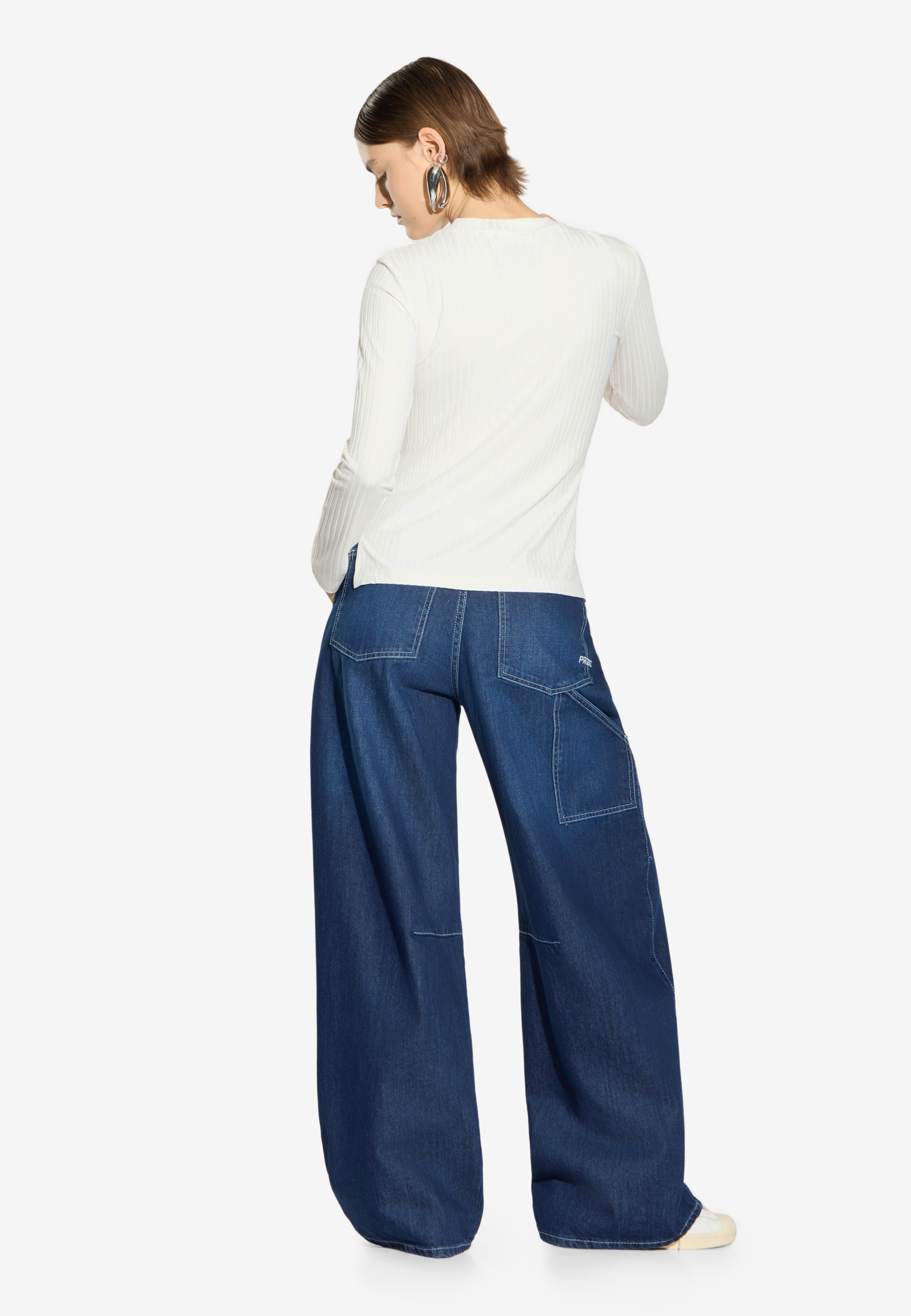 Longsleeve Bamboo Black – damski longsleeve z kolekcji Prosto w klasycznym, czarnym kolorze. Wykonany z miękkiej dzianiny bambusowej z domieszką elastanu, jest lekki, półprześwitujący i przyjemny w dotyku. Prążkowany splot subtelnie podkreśla sylwetkę, a regularny krój – dopasowany w górnej części i luźniejszy przy dole oraz rękawach – zapewnia naturalny, lekko oversize’owy efekt. Prosty, minimalistyczny design dopełnia metka żakardowa z logo Prosto. Model, który świetnie sprawdzi się w codziennych stylizacjach – zarówno w duecie z denimem, jak i spodniami cargo.