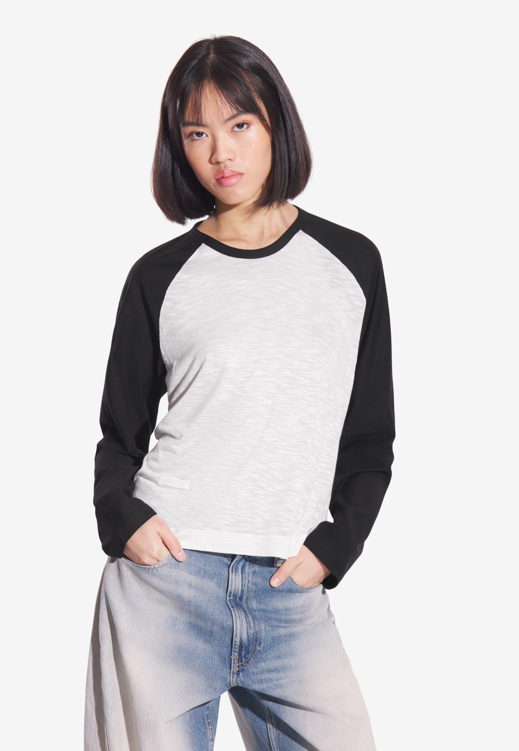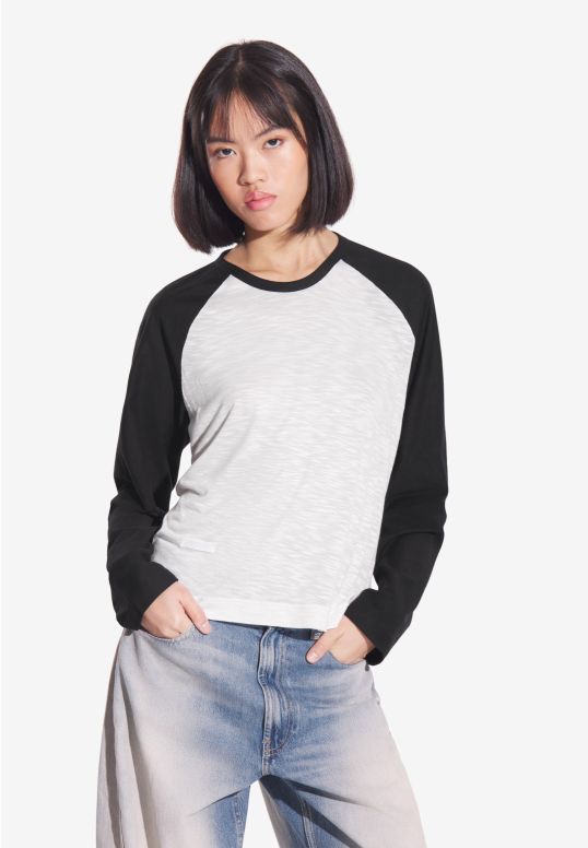 Longsleeve College Black – damski longsleeve z kolekcji Prosto inspirowany klasycznymi, uniwersyteckimi koszulkami z amerykańskich kampusów. Klasyk z delikatnym sportowym vibem, który łączy dwa odcienie – stonowaną bazę off-white i kontrastowe, czarne rękawy. Wykonany z połączenia dwóch dzianin: miękkiej wiskozy i elastycznej bawełny, dzięki czemu jest lekki, wygodny i dobrze układa się na sylwetce. To model, który wprowadza luz do codziennych stylizacji – niezależnie od tego, z czym go połączysz, zawsze wygląda świeżo i niewymuszenie.