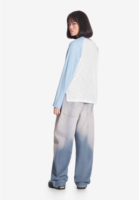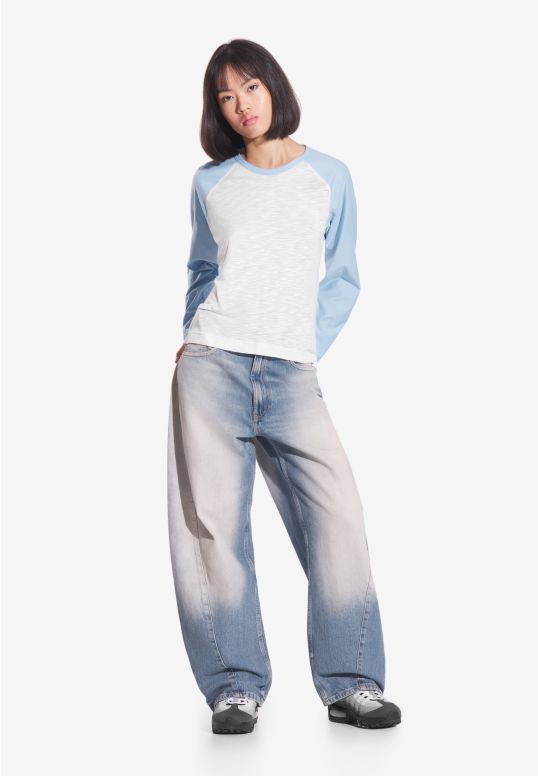 Longsleeve College Light Blue – damski longsleeve z kolekcji Prosto inspirowany klasycznymi koszulkami z amerykańskich kampusów. Model, który łączy sportowy luz z codzienną prostotą. Stonowana baza off-white zestawiona z rękawami w kolorze jasnego błękitu tworzy świeże, delikatne połączenie. Wykonany z dwóch rodzajów dzianiny – miękkiej wiskozy i elastycznej bawełny – zapewnia lekkość, wygodę i dobre dopasowanie do sylwetki. To longsleeve, który dodaje energii nawet najprostszej stylizacji – wygląda dobrze solo i pod kurtką.