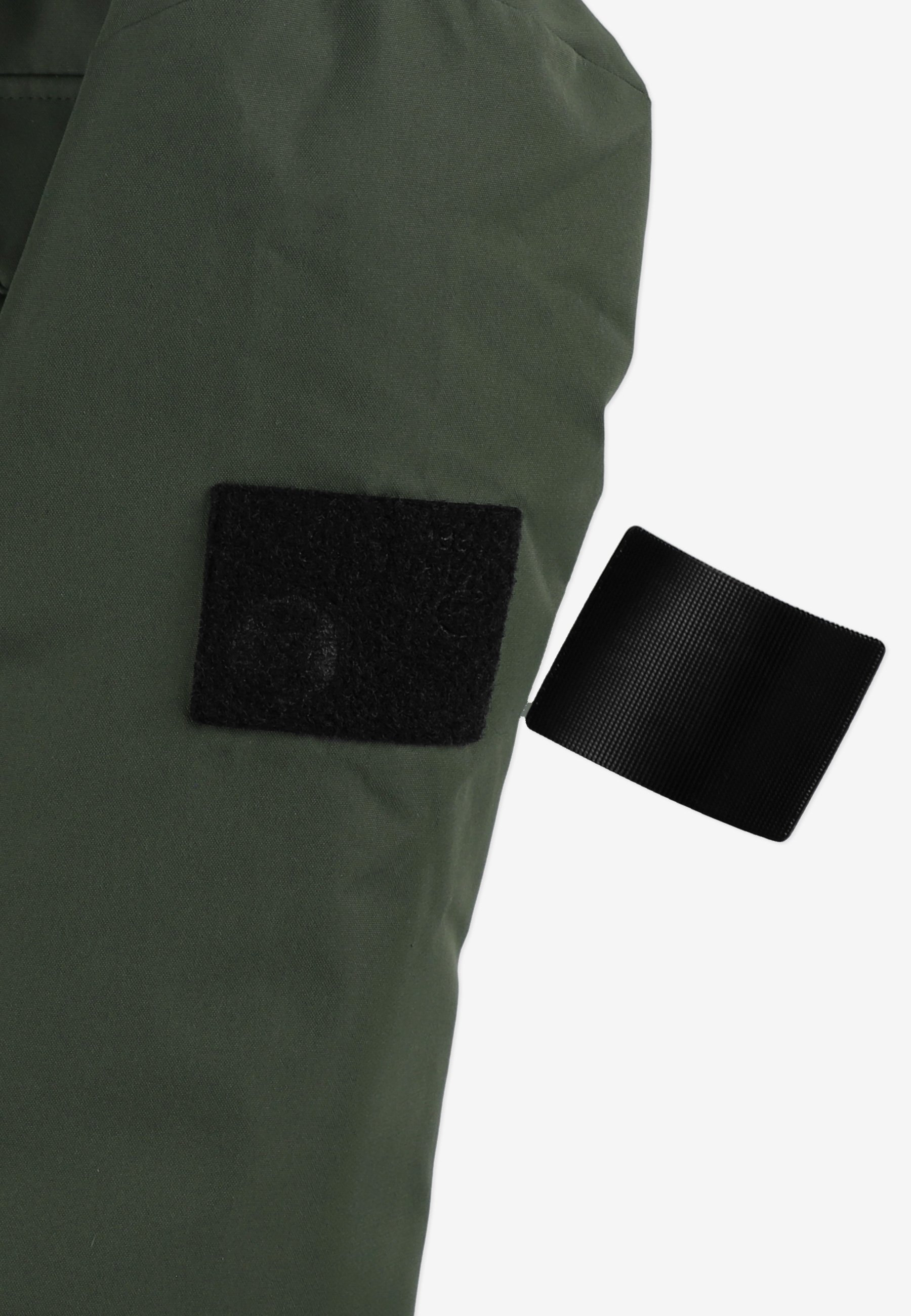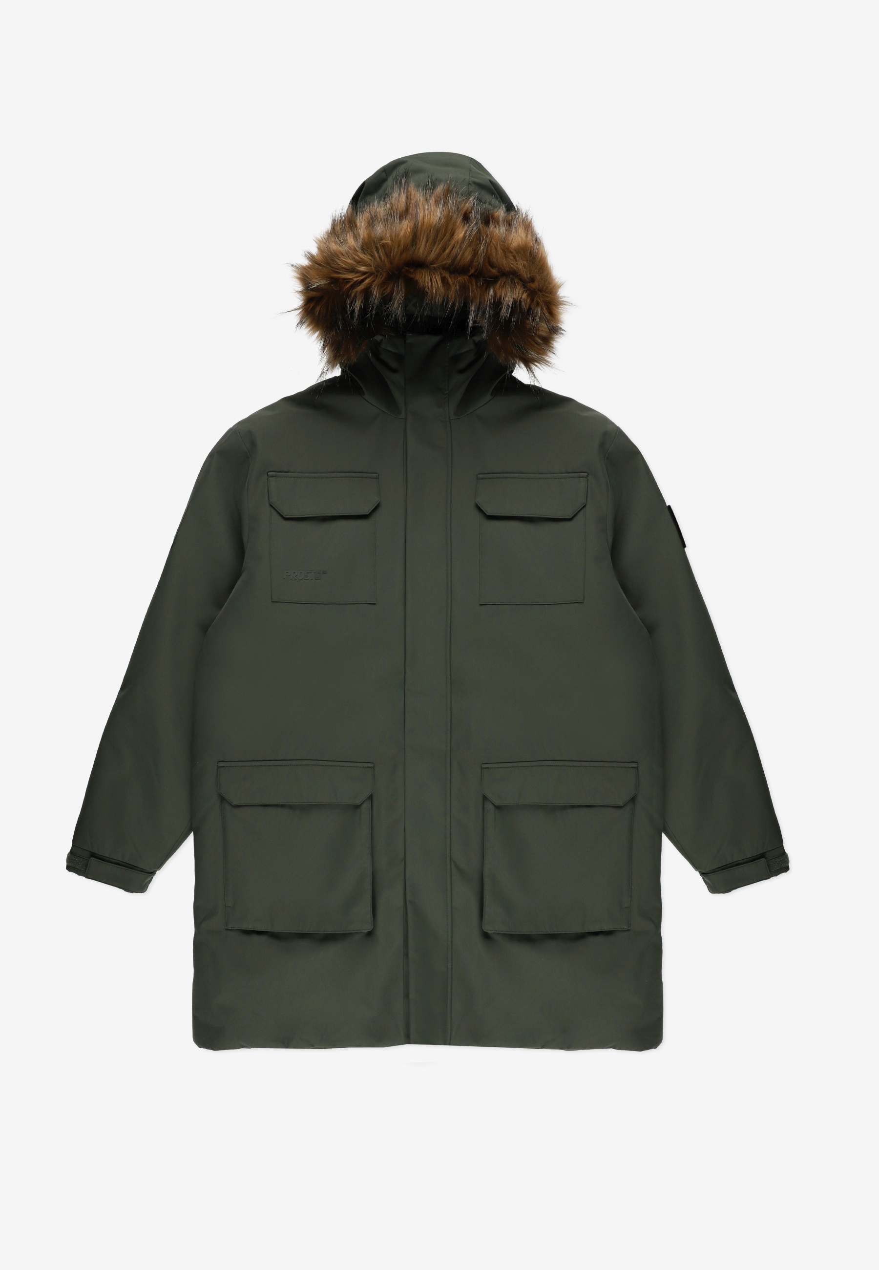 Parka Jacket Expedition Dark Olive Green – męska parka Prosto, która łączy funkcjonalność z mocnym streetwearowym charakterem. Model w głębokiej czerni został wyposażony w cztery pakowne kieszenie cargo na froncie, odpinane futro przy kapturze i wewnętrzną gumkę ze ściągaczami w pasie, pozwalającą na indywidualne dopasowanie sylwetki. Wyróżniają go też detale o technicznym sznycie – od logotypu Prosto na klatce piersiowej po rzep z naszywką na rękawie, który dodaje całości surowego, miejskiego vibe’u. Idealna propozycja na zimę, kiedy liczy się zarówno wygoda, jak i charakter.