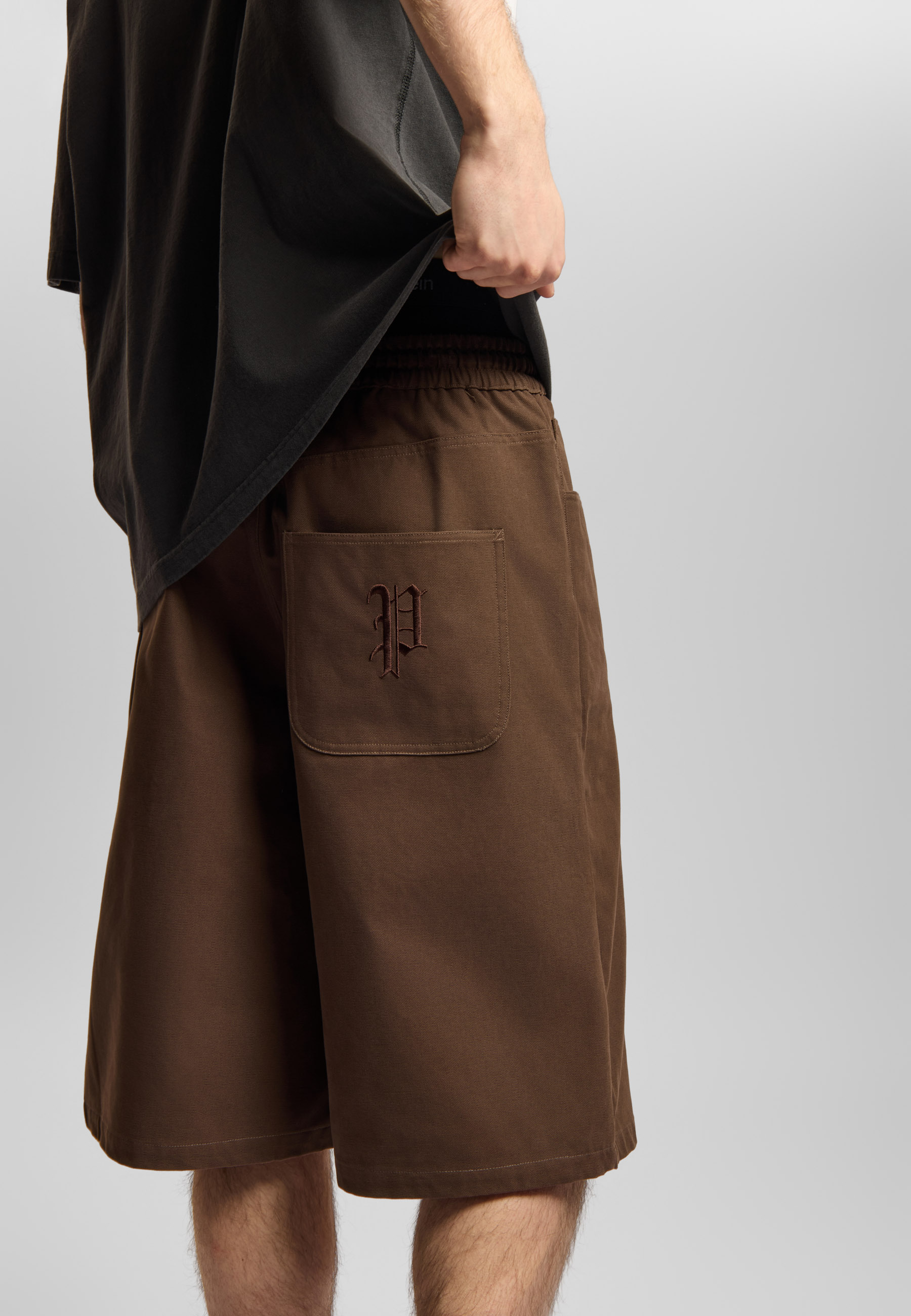 Elastyczny pas ze sznurkiem zapewnia dopasowanie, a kieszenie podbijają funkcjonalność na co dzień. Haftowane logo „P” na froncie spina całość subtelnym akcentem. To model, który nie potrzebuje dużo - wystarczy prosty zestaw i robi się klimat.