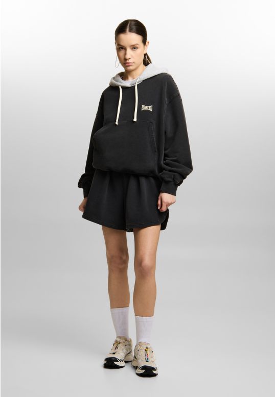 Sweat Shorts Baloon Washed Black - damskie szorty dresowe Prosto z charakterystyczną, balloonową sylwetką, która nadaje całości bardziej modowy, dopracowany charakter. To model zbudowany na proporcji - krótki, objętościowy i lekko zaokrąglony w formie, dzięki czemu wygląda dużo ciekawiej niż klasyczne dresowe szorty. Washed black dodatkowo podkreśla ich charakter i nadaje całości bardziej premium wykończenie.