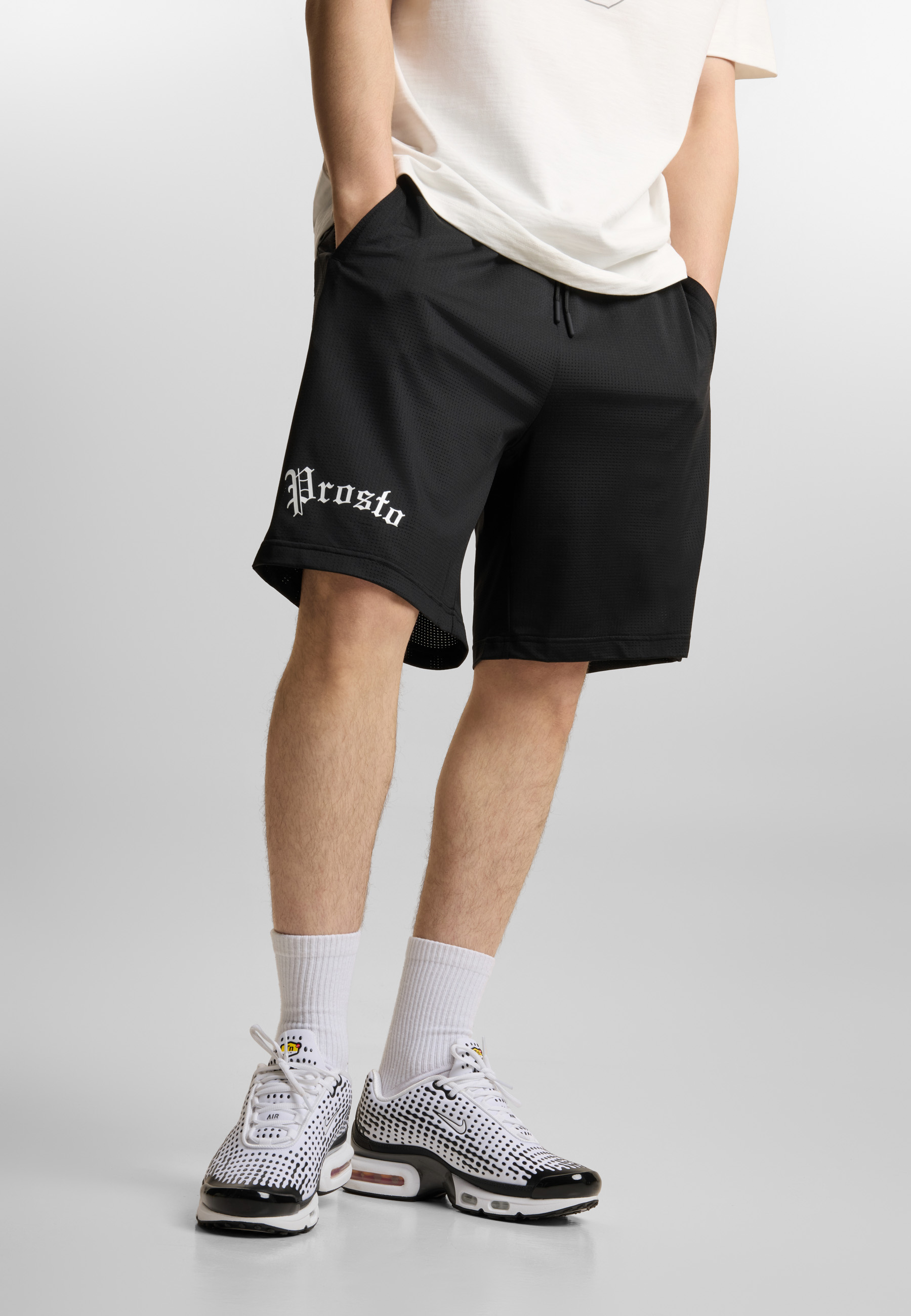 Spodenki Sweat Shorts Nine Black - męskie spodenki Prosto inspirowane koszykarskim stylem, zaprojektowane z myślą o lekkim, wygodnym noszeniu na co dzień i w ruchu. Regularny krój dobrze układa się na sylwetce, a przewiewna siatka mesh nadaje całości sportowego charakteru i zapewnia komfort w cieplejsze dni. Kontrastowa aplikacja z numerem 9 przyciąga wzrok i buduje wyrazisty look, a subtelne logo Prosto podkreśla streetwearowy sznyt modelu. Elastyczny pas ze sznurkami pozwala na wygodne dopasowanie, a lekka konstrukcja sprawia, że to idealna opcja na lato. To model, który czerpie z klimatu boiska, ale bez problemu odnajduje się też w miejskich stylizacjach - zakładasz i masz gotowy luźny set.