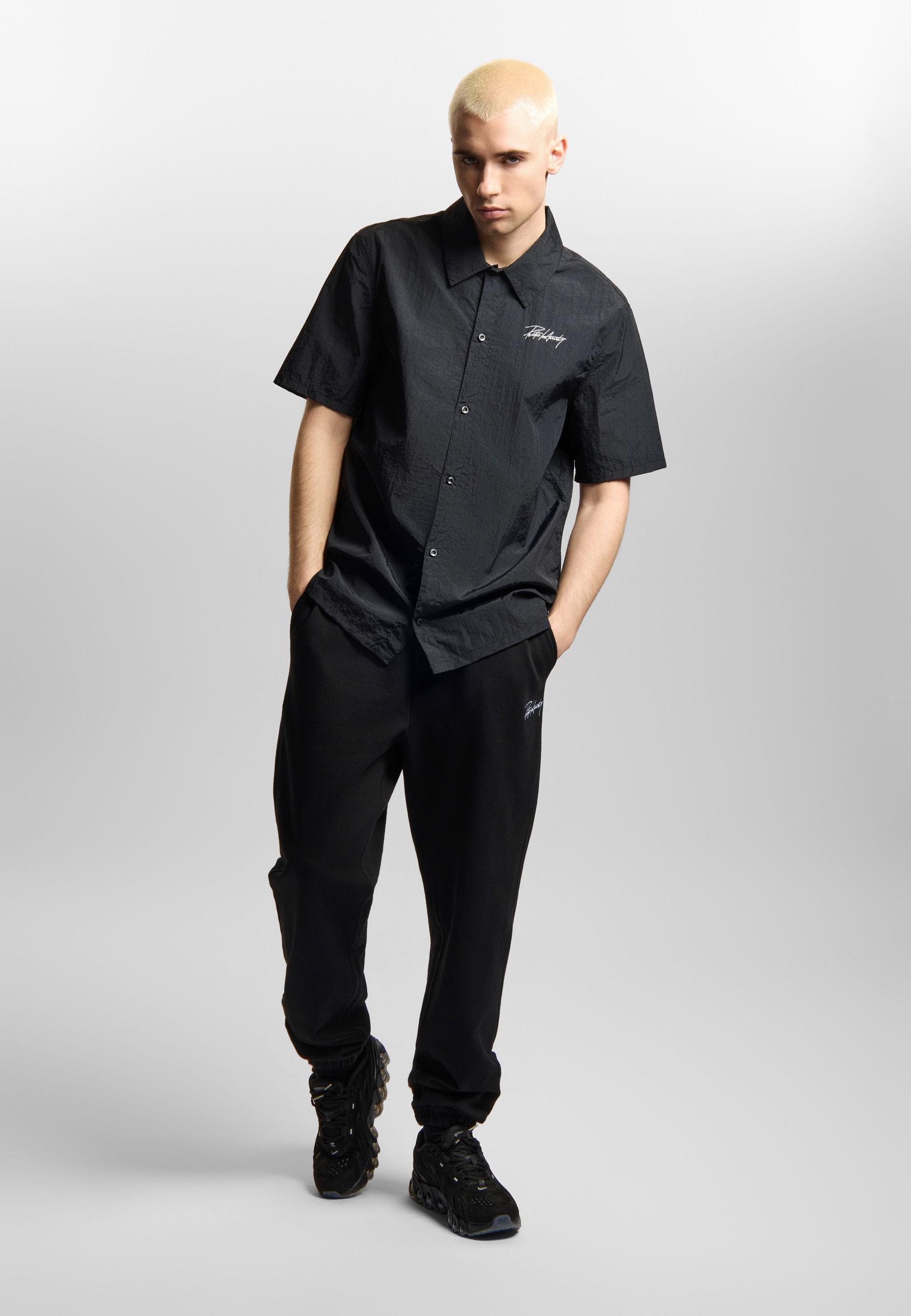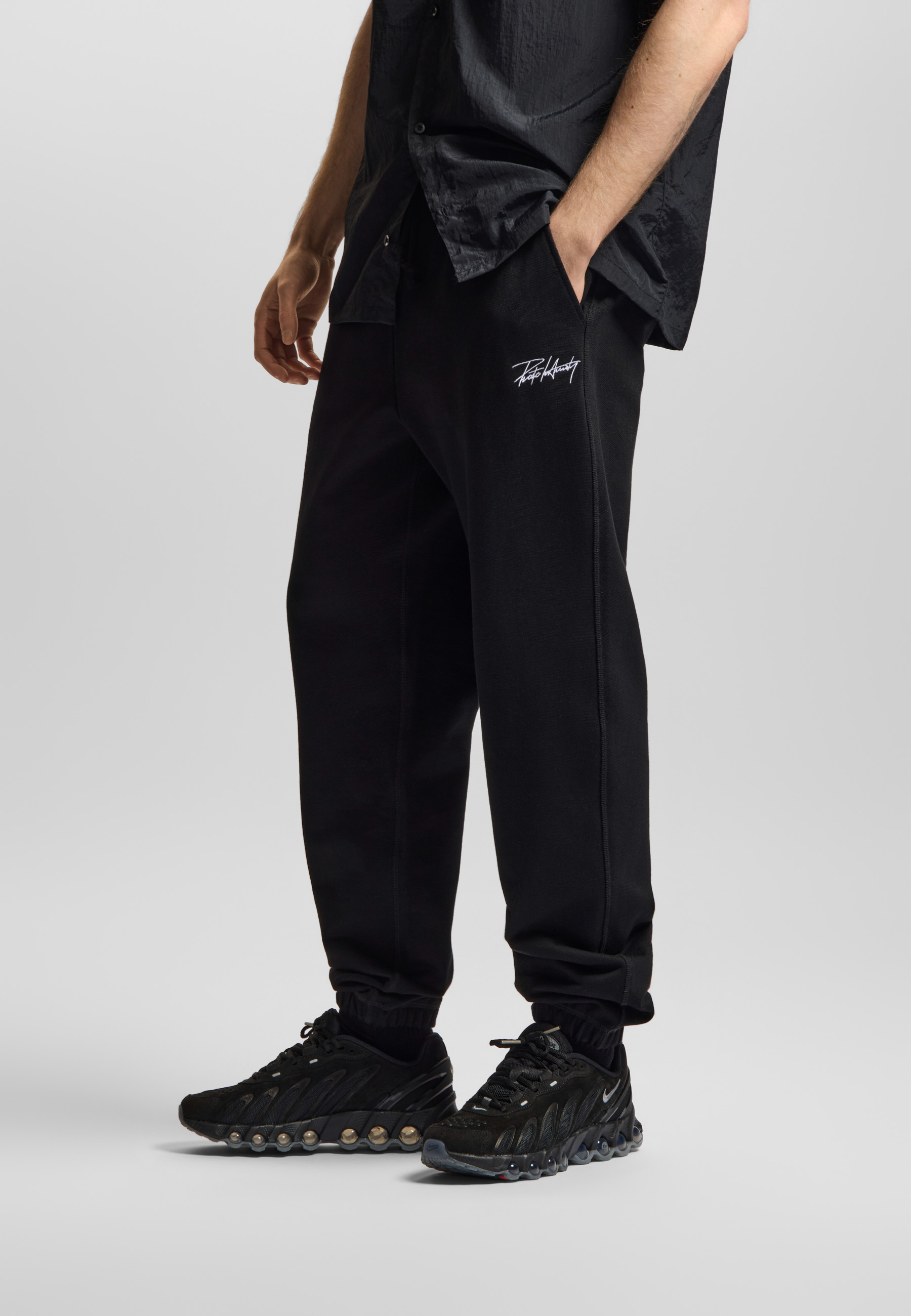 Spodnie Sweatpants Club Black - męskie spodnie dresowe Prosto w klasycznej czerni. Prosta, dopracowana forma i regularny krój sprawiają, że to model, który dobrze układa się na sylwetce i sprawdza się w codziennym noszeniu. Na nogawce subtelny haft Prosto Infinity, który dodaje całości charakteru, ale pozostaje minimalistycznym detalem. Elastyczny pas ze sznurkami pozwala łatwo dopasować spodnie do siebie, a ściągacze przy nogawkach nadają im sportową sylwetkę. To po prostu bardzo dobre, jakościowe dresy – wygodne, uniwersalne i gotowe na każdy dzień.