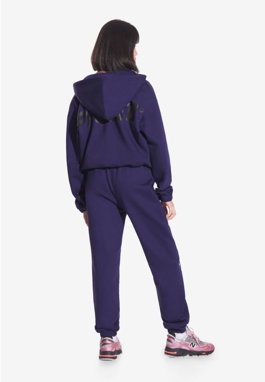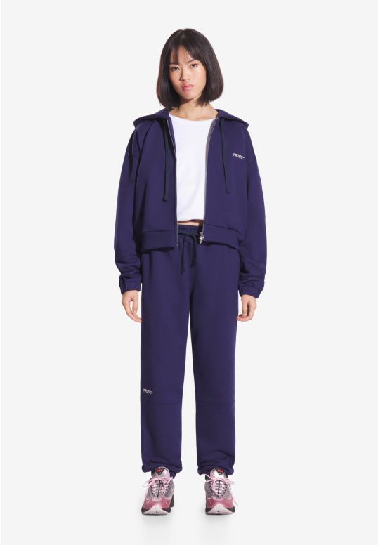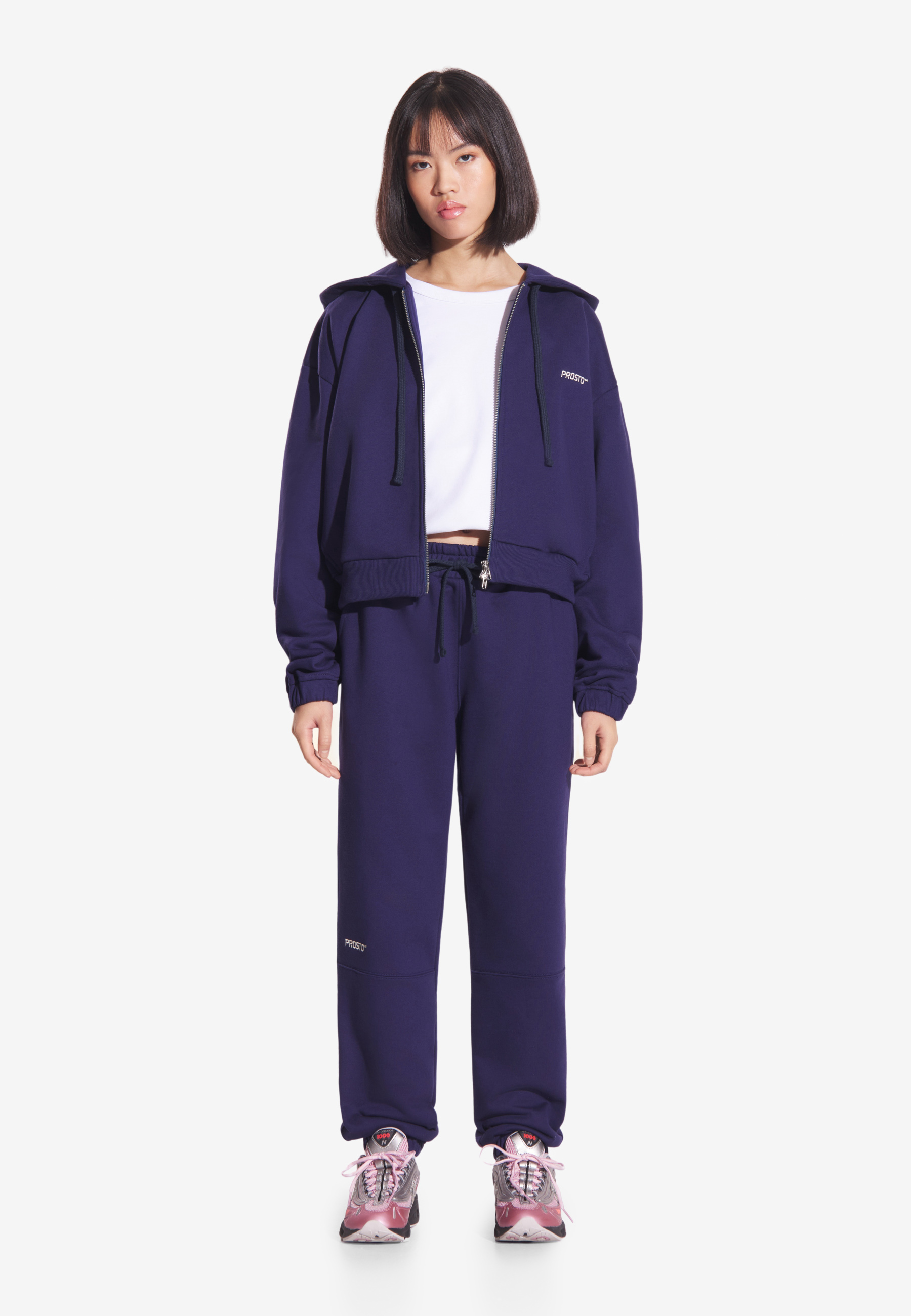 Sweatpants Cut Navy – damskie spodnie dresowe z kolekcji Prosto w kolorze navy blue. Mają klasyczny, regularny krój z lekko zwężaną nogawką, zakończoną elastycznym ściągaczem. Charakterystyczne, poziome przeszycie na nogawkach nadaje im nowoczesny, streetowy wygląd. W pasie znajduje się elastyczna guma i sznurek do regulacji, dzięki czemu spodnie dobrze leżą i nie tracą formy. Wykonane z grubej, miękkiej bawełny typu pętelka – materiał jest trwały, przyjemny w dotyku i dobrze trzyma kształt. Haft z logo Prosto na nogawce oraz subtelny print wykonany metodą sita wodnego dopełniają minimalistyczny design. To uniwersalny model, który sprawdzi się zarówno solo, jak i w komplecie z bluzą z tej samej linii.