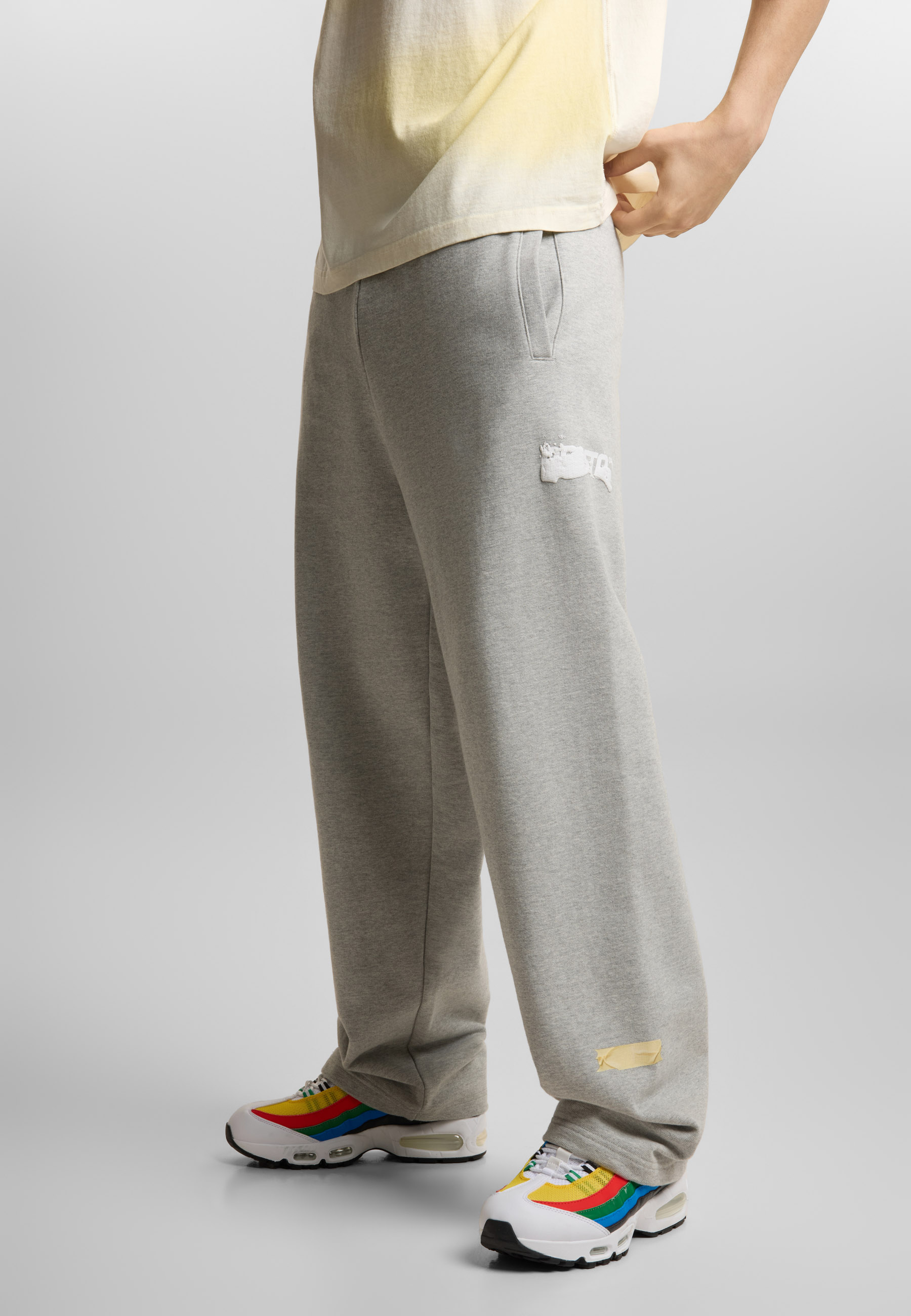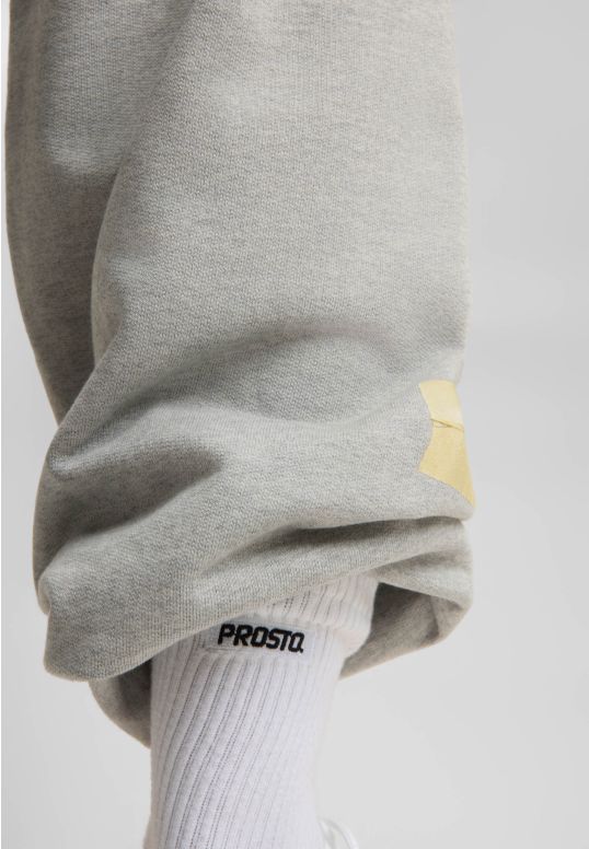 Spodnie Sweatpants Tape Gray - męskie spodnie dresowe Prosto o szerokim kroju w ponadczasowym szarym melanżu. Luźna sylwetka daje pełen komfort i nowoczesny look, który działa w każdej stylizacji. Subtelny nadruk Prosto Infinity 9 na nogawce to znak rozpoznawczy - prosty, ale z charakterem, od razu wiadomo, w jakiej grasz drużynie. Całość przełamują nadrukowane taśmy, które dodają nieoczywistego twistu i sprawiają, że ten model wychodzi poza basic. Gruba, miękka dzianina robi robotę od pierwszego założenia. Zakładasz i masz gotowy vibe.