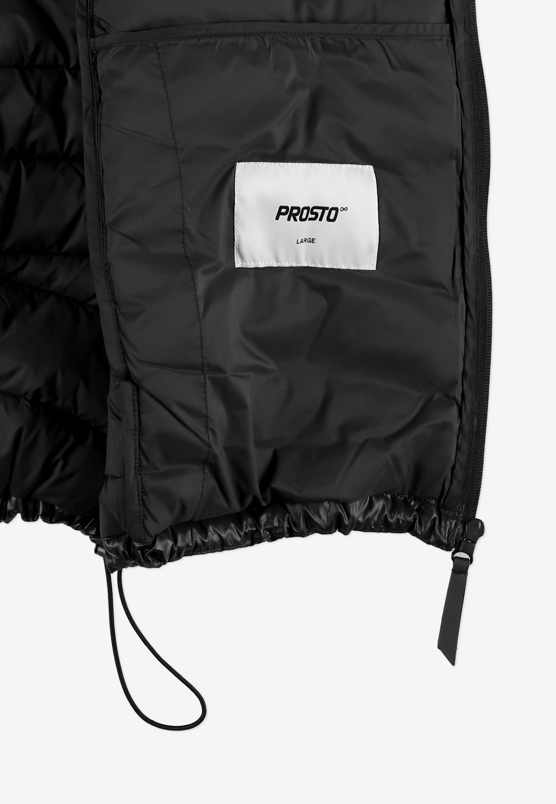 Synthetic Jacket Lightweight Black – męska kurtka przejściowa Prosto w klasycznej czerni. Wykonana z lekkiego, błyszczącego materiału, który nadaje jej nowoczesny i streetwearowy charakter. Wypełnienie syntetycznym puchem zapewnia ochronę przed chłodem i wiatrem, a jednocześnie sprawia, że kurtka pozostaje lekka i wygodna w codziennym noszeniu. Kaptur o kominiarkowym kroju otula twarz i dodaje całości technicznego sznytu. Minimalistyczny design w połączeniu z subtelnym logo Prosto na piersi sprawia, że to uniwersalny wybór na miejskie stylówki w chłodniejsze dni.