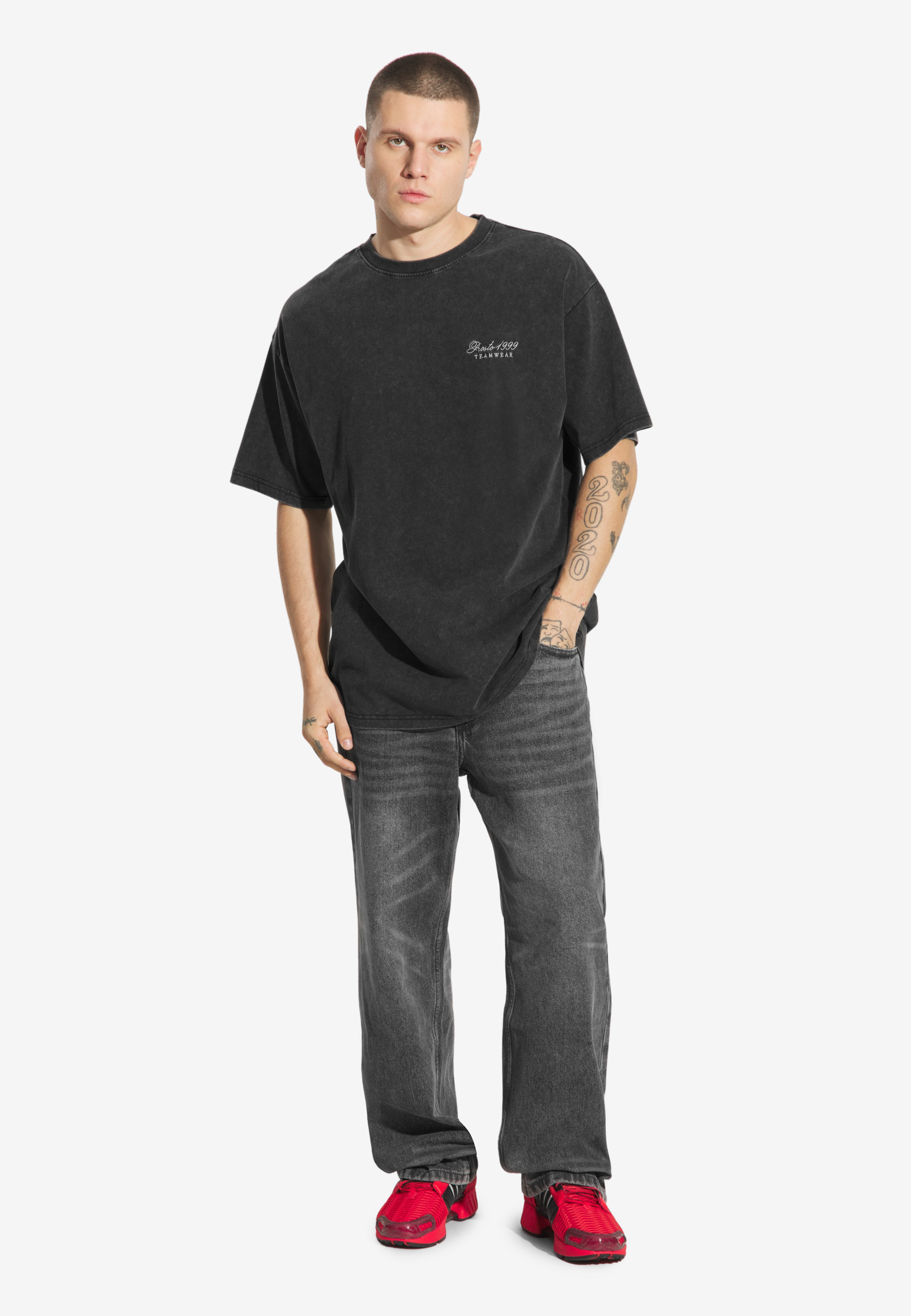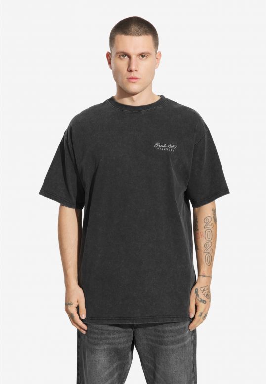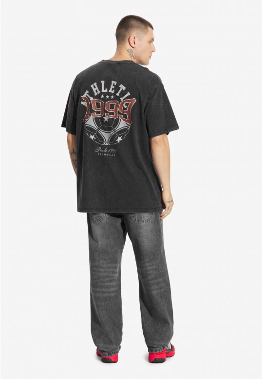 T-shirt Athletic Washed Black – oversizowy T-shirt z efektem sprania, który nadaje mu surowego, vintage’owego charakteru. Połączenie haftu i nadruku tworzy wyrazisty, oldschoolowy motyw nawiązujący do sportowej estetyki. Wykonany w 100 % z bawełny, jest przewiewny, wygodny i trwały.