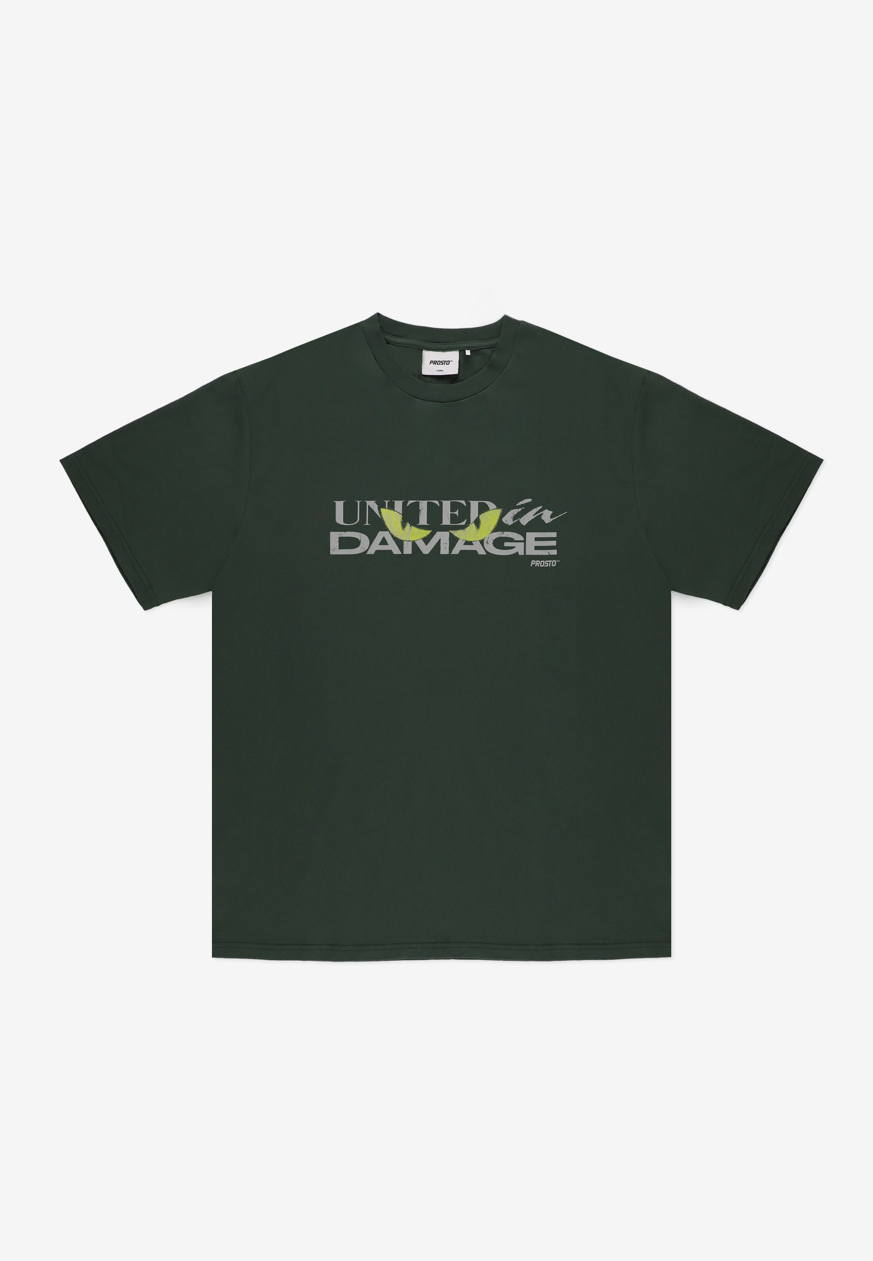 T-shirt Damage Khaki – oversize’owa koszulka z kolekcji Prosto. Model z wyrazistym nadrukiem UNITED IN DAMAGE na froncie, utrzymanym w estetyce charakterystycznej dla marki. Luźny krój i miękka bawełna zapewniają swobodę ruchów oraz wygodę w codziennym noszeniu. Prosty fason i stonowany kolor khaki sprawiają, że koszulka pasuje zarówno do klasycznych, jak i bardziej streetowych stylizacji.