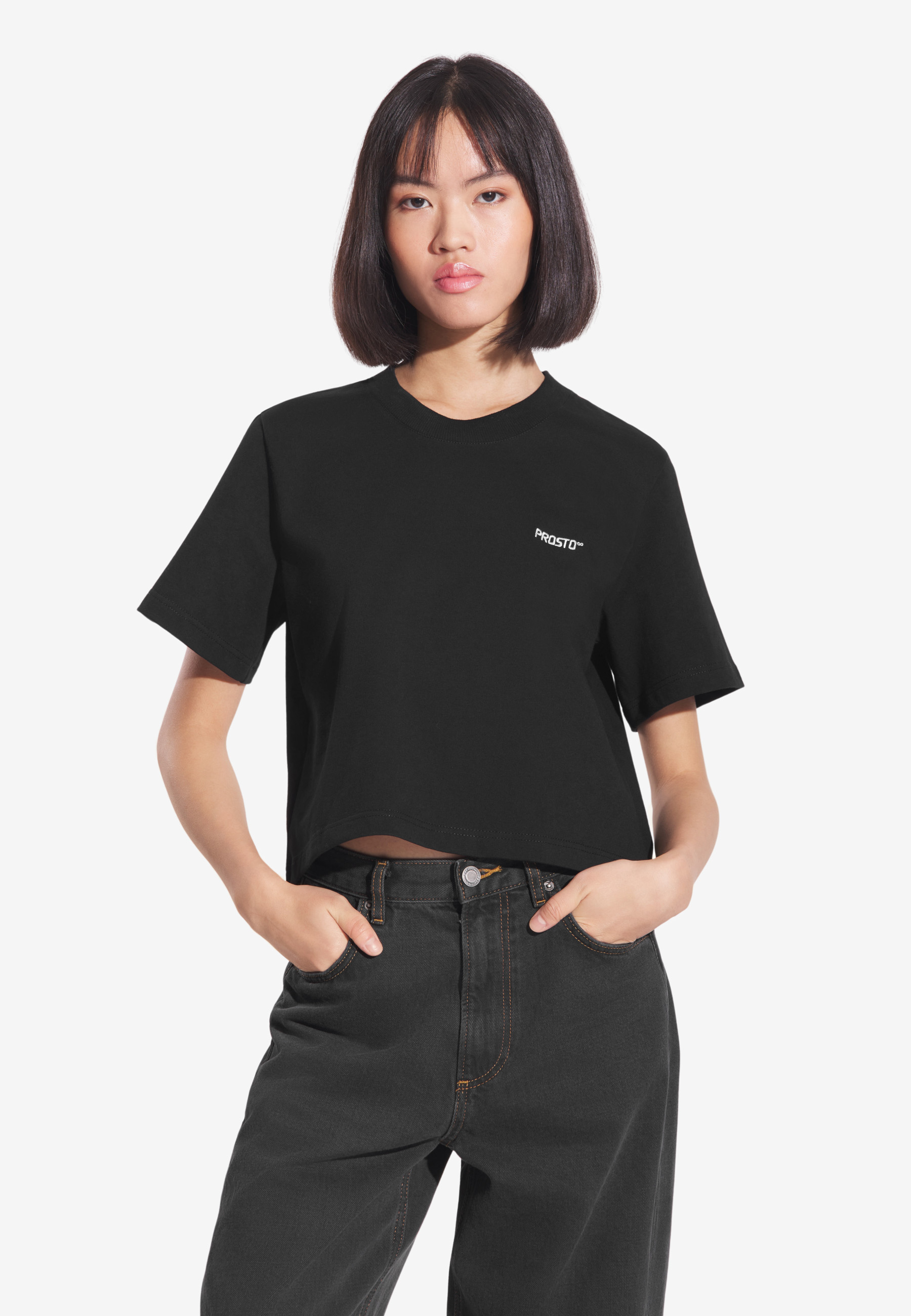 T-shirt Heavyweight Black – damski t-shirt z linii Prosto. Masywny w formie, prosty w przekazie. Boxy krój i mocna, grubsza bawełna nadają mu charakter i strukturę – materiał nie opada, tylko trzyma linię, dzięki czemu sylwetka wygląda świeżo i nowocześnie. Subtelny haft z logo Prosto podkreśla jego minimalistyczny styl, a głęboka czerń dodaje mu mocy i ponadczasowego charakteru. Niezależnie od tego, z czym go nosisz, to ponadczasowy klasyk w twojej garderobie – prosty, ale z wyczuwalnym charakterem.