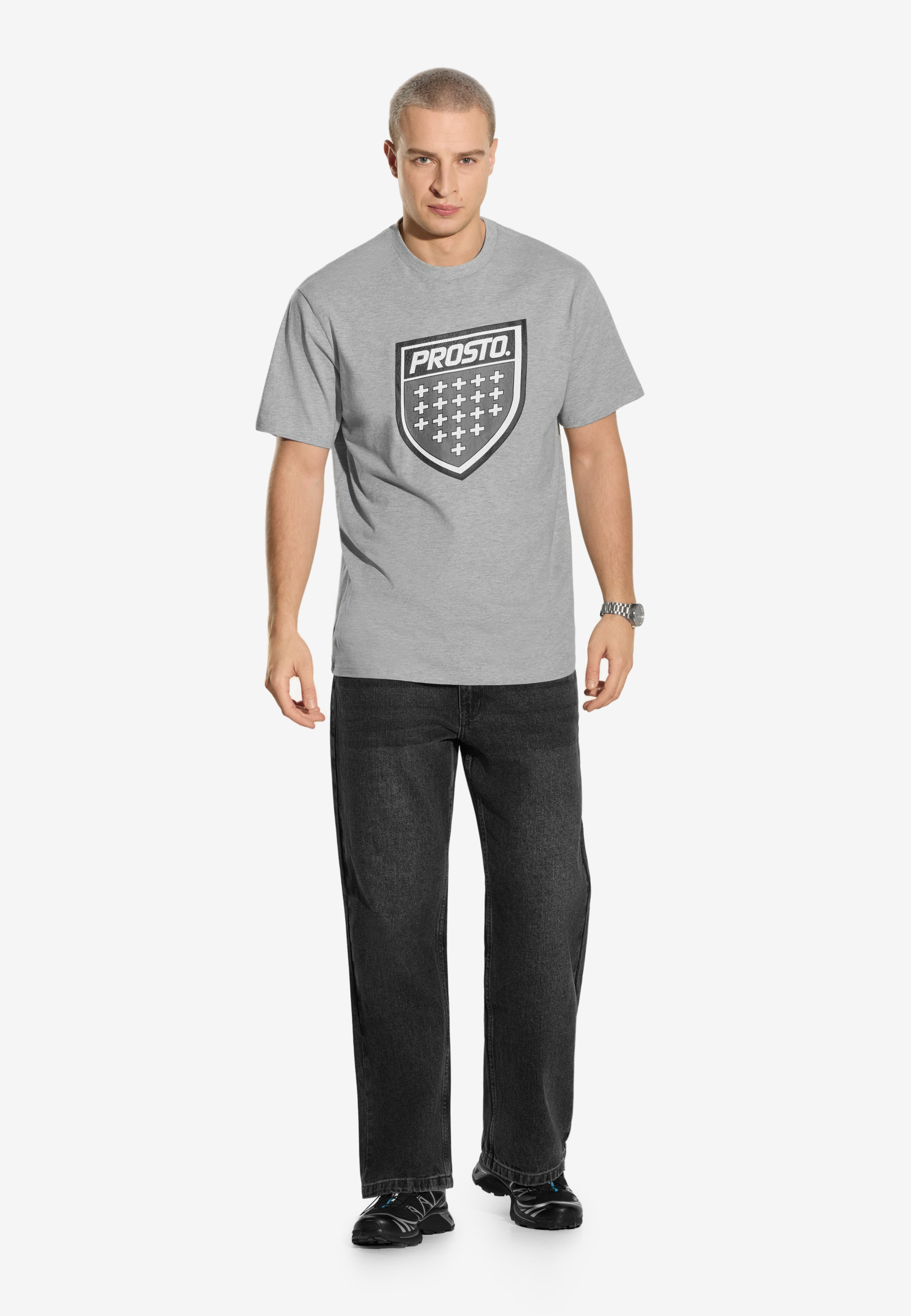 T-shirt Infine Gray – klasyczna koszulka z kolekcji Prosto, wchodząca w skład dropu z motywem kultowej tarczy marki. Z przodu umieszczono nadruk wykonany metodą silicone dots print, który podkreśla charakter projektu i dodaje mu lekko sportowego wyrazu. Regularny krój i przyjemna w dotyku bawełna o średniej gramaturze zapewniają komfort i uniwersalność. Sprawdzi się w każdej stylizacji – zarówno solo, jak i jako baza do budowania warstwowych stylizacji.