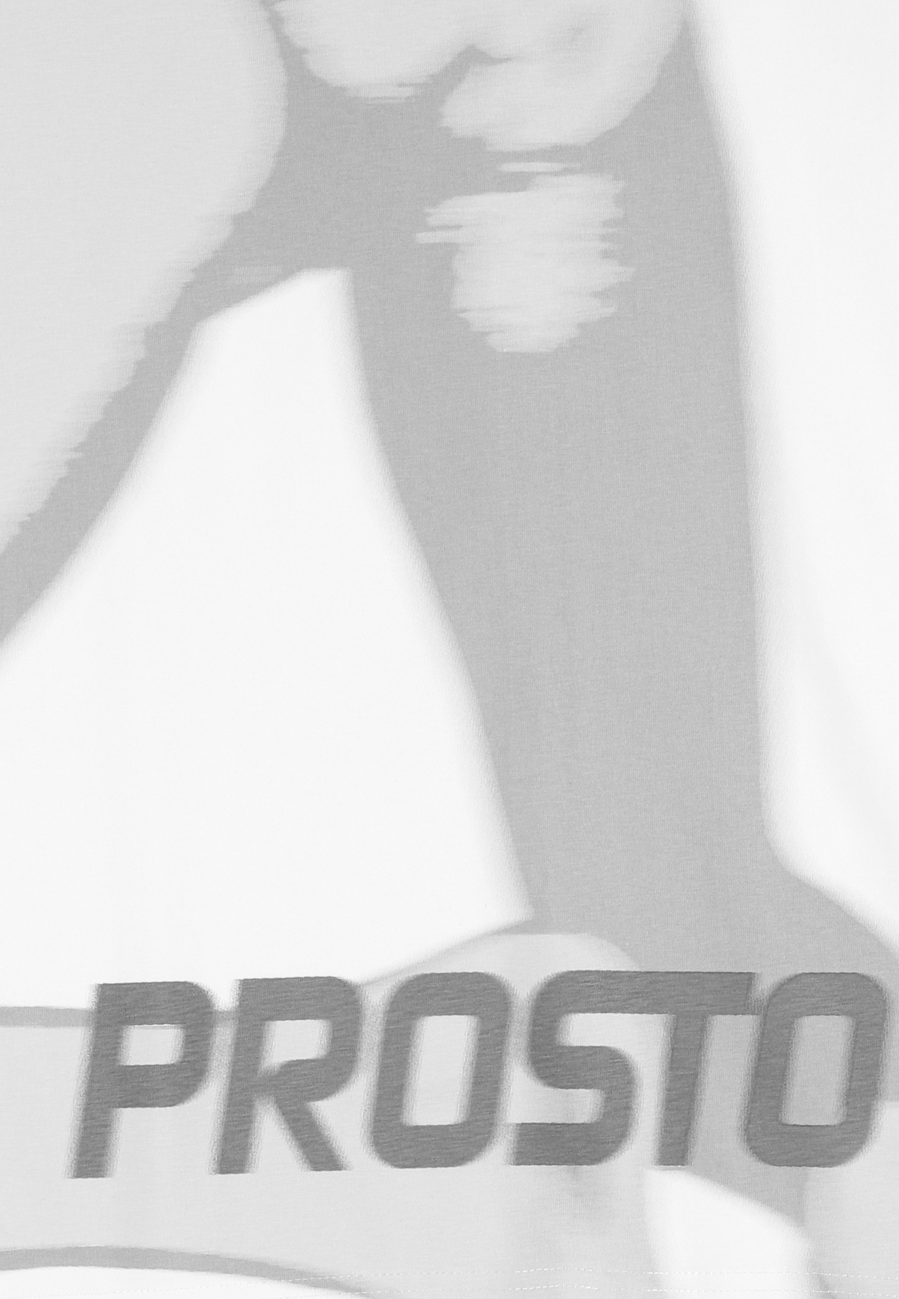Top NSFW Off White – damski T-shirt o kroju boxy z kolekcji Prosto Not Safe For Work (NSFW). Nadruk na froncie nawiązuje do motywów z pogranicza zmysłowości i sztuki, zachowując przy tym subtelny, estetyczny charakter. Delikatny kadr w odcieniach szarości i beżu kontrastuje z minimalistyczną formą topu, tworząc wyważony, ale wyrazisty efekt. Krótki, boxy fason podkreśla sylwetkę, a całość wpisuje się w nowoczesne podejście do streetwearu.