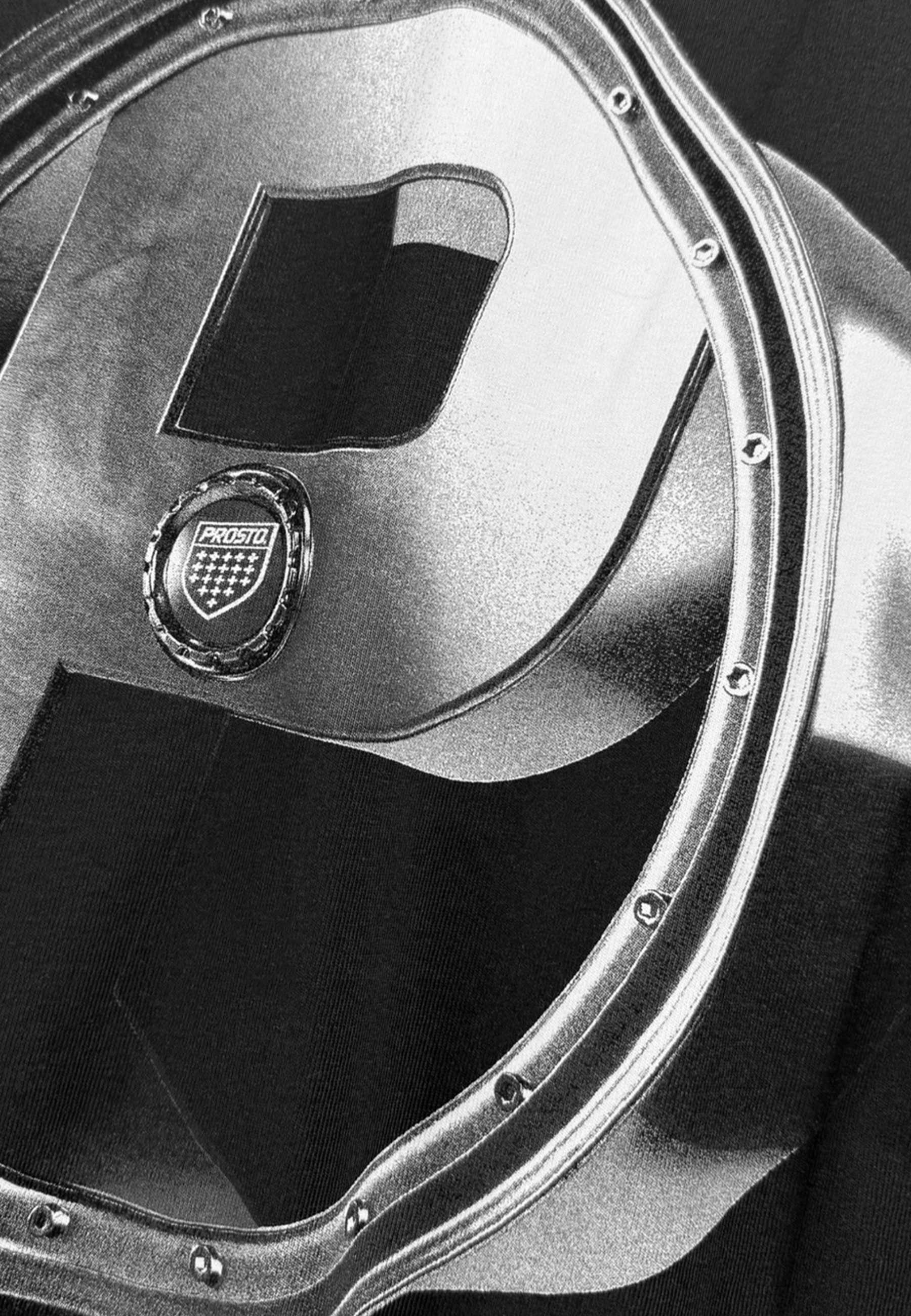 T-shirt P Rim Silver Gray – męska koszulka z kolekcji Prosto, w której klasyczna forma spotyka się z techniczną inspiracją. Oversize’owy krój i gładka baza tworzą czyste tło dla detalu. Na plecach pojawia się trójwymiarowy symbol P zamknięty w feldze samochodowej – mocny, industrialny akcent, który nadaje całości charakteru. Z przodu mniejszy znak, jak sygnatura całej formy. To koszulka dla tych, którzy lubią prosty krój, ale oczekują wyrazistego detalu. Niezależnie od tego, czy masz prawo jazdy, czy po prostu lubisz dobre projekty.