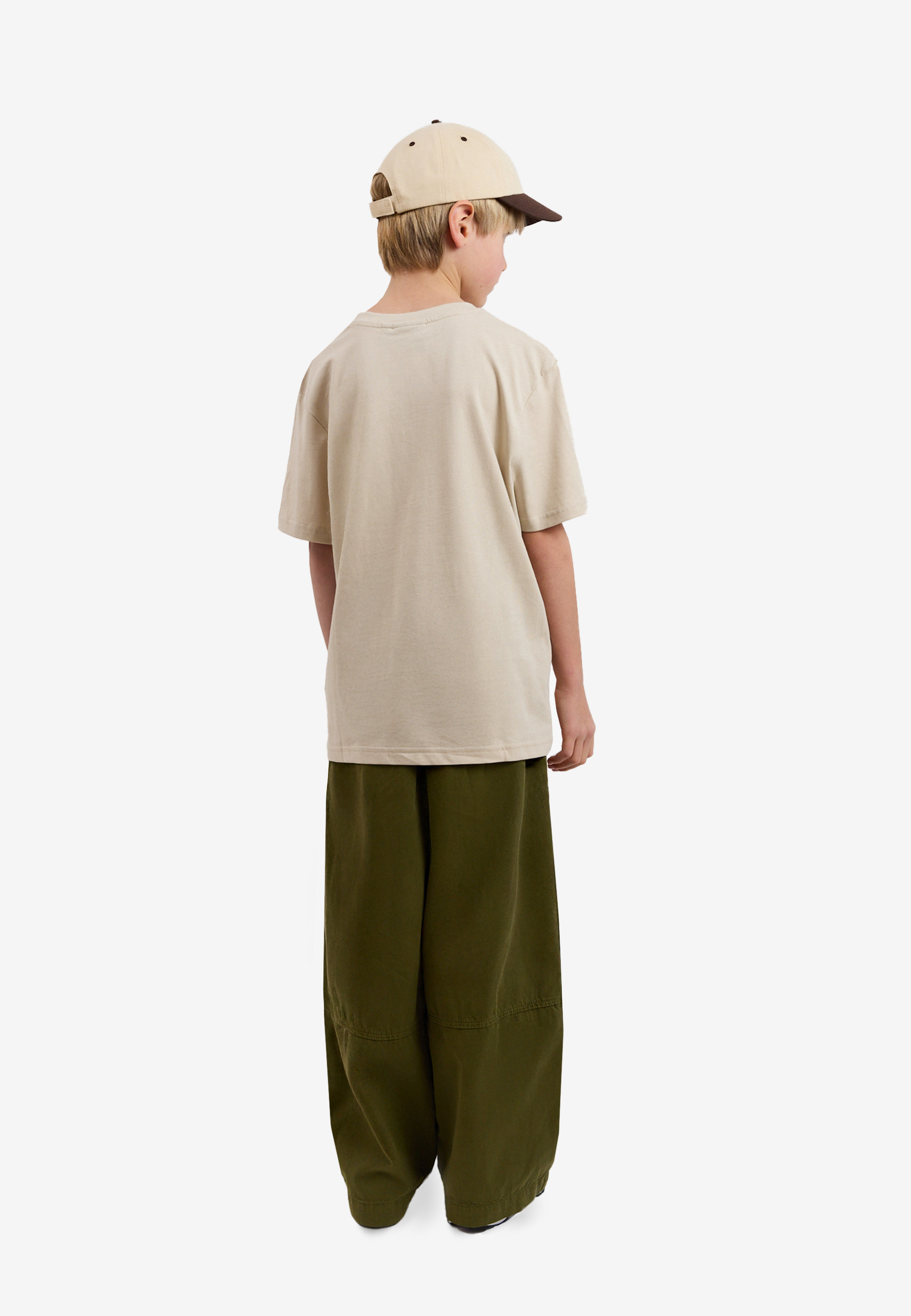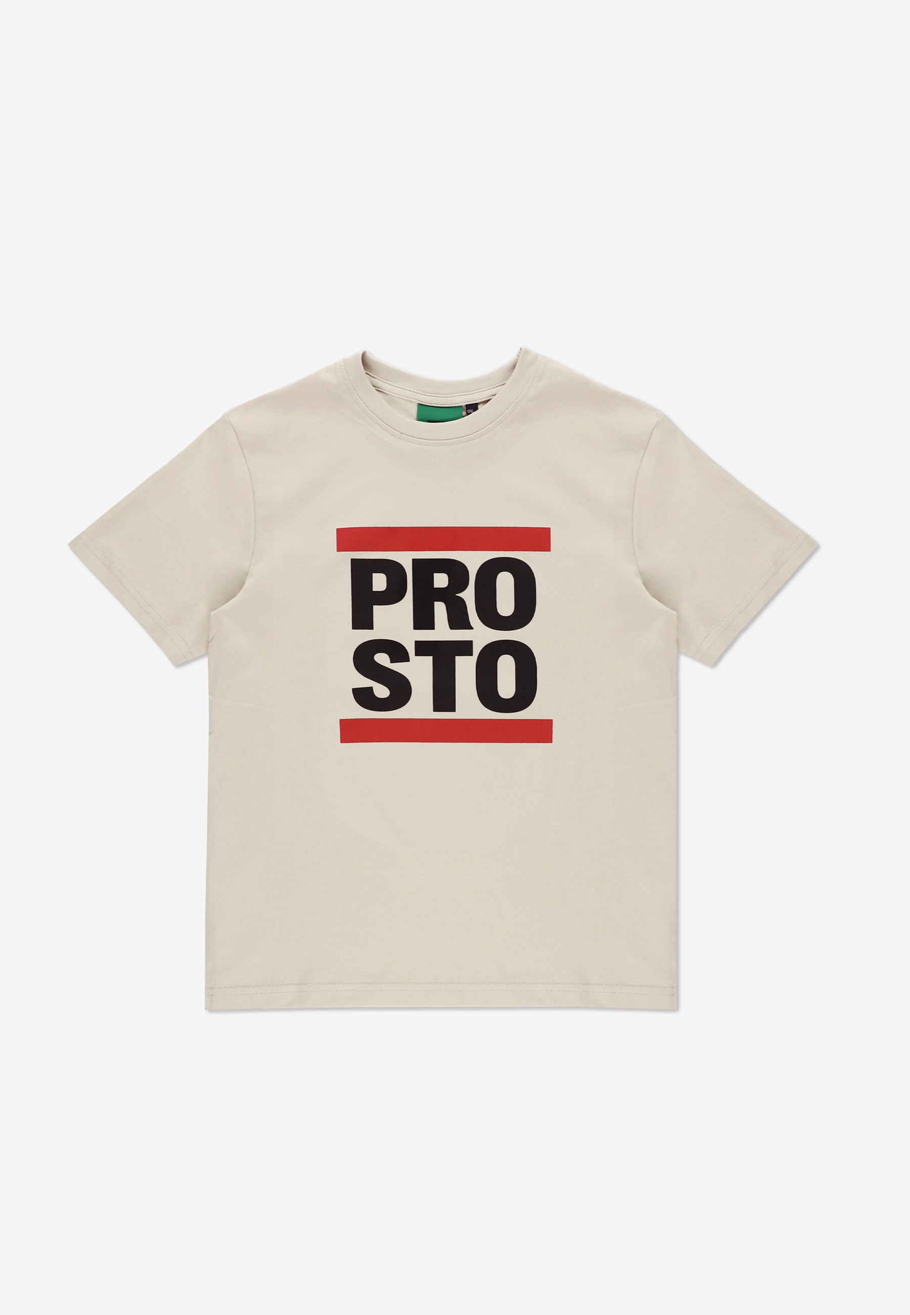 T-shirt PRO DMC – dziecięca koszulka z linii Prosto Kids, inspirowana kultową estetyką hip-hopowego zespołu Run DMC. Duży, kontrastowy nadruk Prosto z charakterystycznymi czerwonymi pasami nawiązuje do klasycznych wzorów kojarzonych z tą ikoną rapu, nadając modelowi wyrazisty, sceniczny charakter. Beżowy kolor i regularny krój sprawiają, że koszulka jest wygodna i idealna do codziennych, miejskich stylizacji najmłodszych.