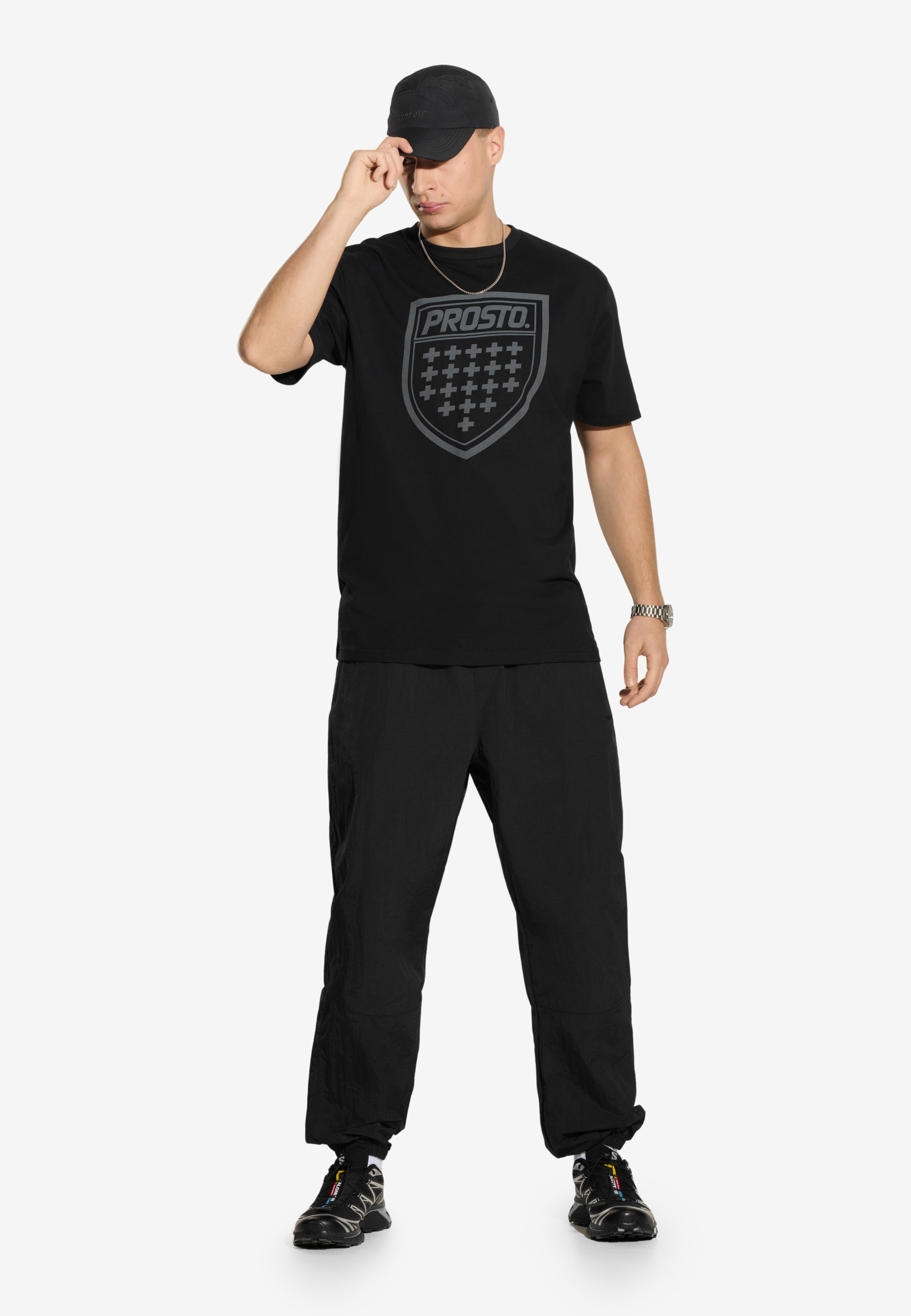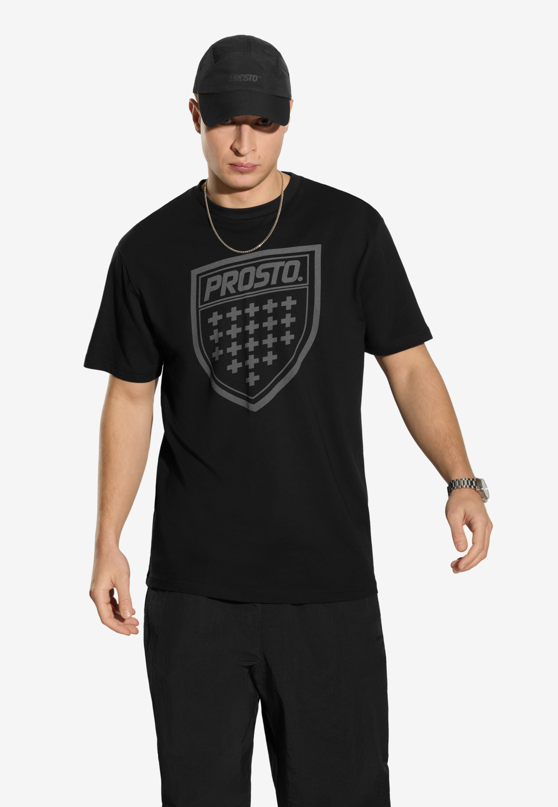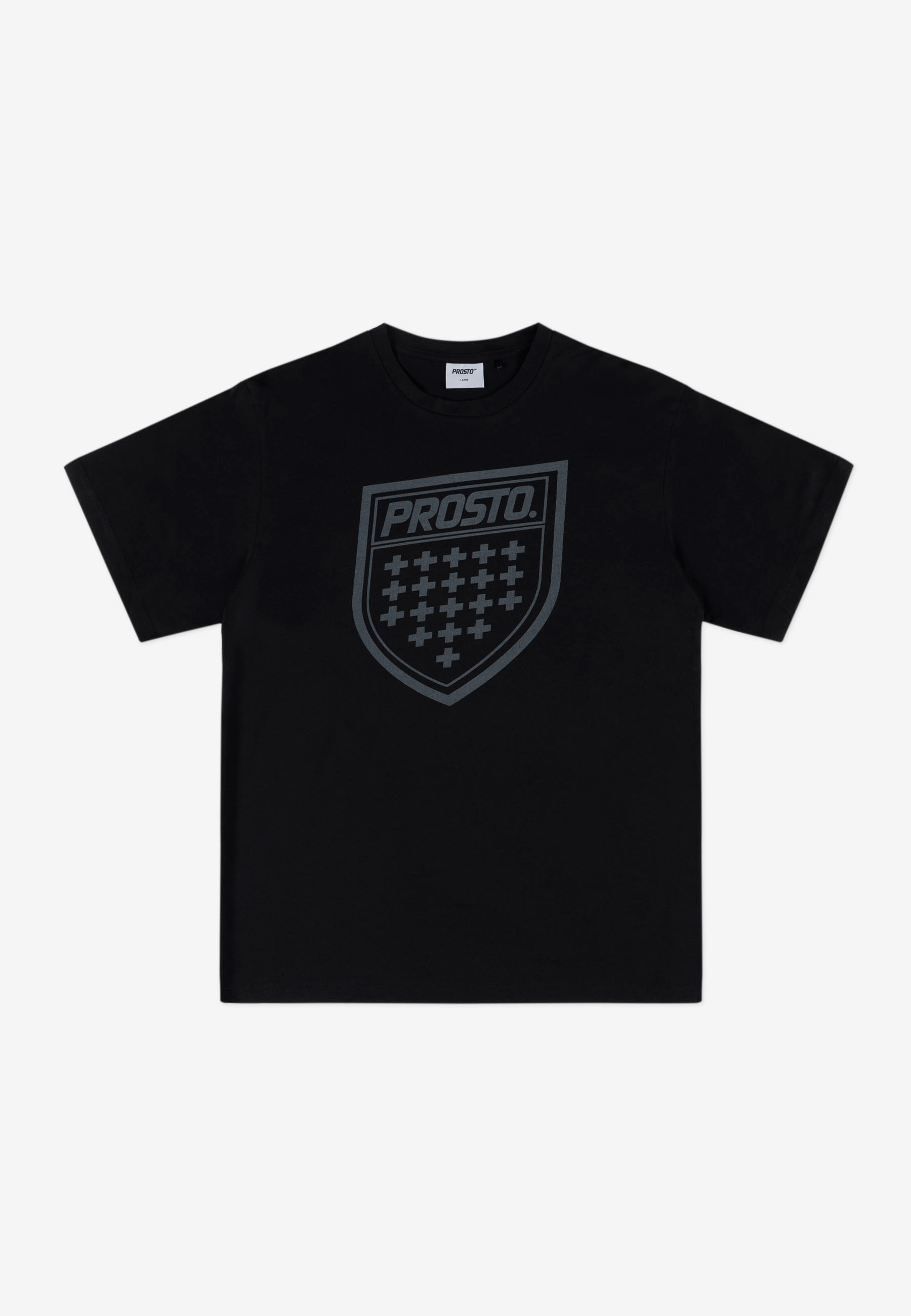 T-shirt Shield Black – męska koszulka z kolekcji Prosto z motywem kultowej tarczy marki. Tonalny nadruk wykonany techniką lasera nadaje jej nowoczesny, stonowany wygląd. Regularny krój i miękka, przewiewna bawełna zapewniają wygodę w codziennym noszeniu. To uniwersalny T-shirt, który świetnie wygląda zarówno solo, jak i jako warstwa pod bluzę czy kurtkę.