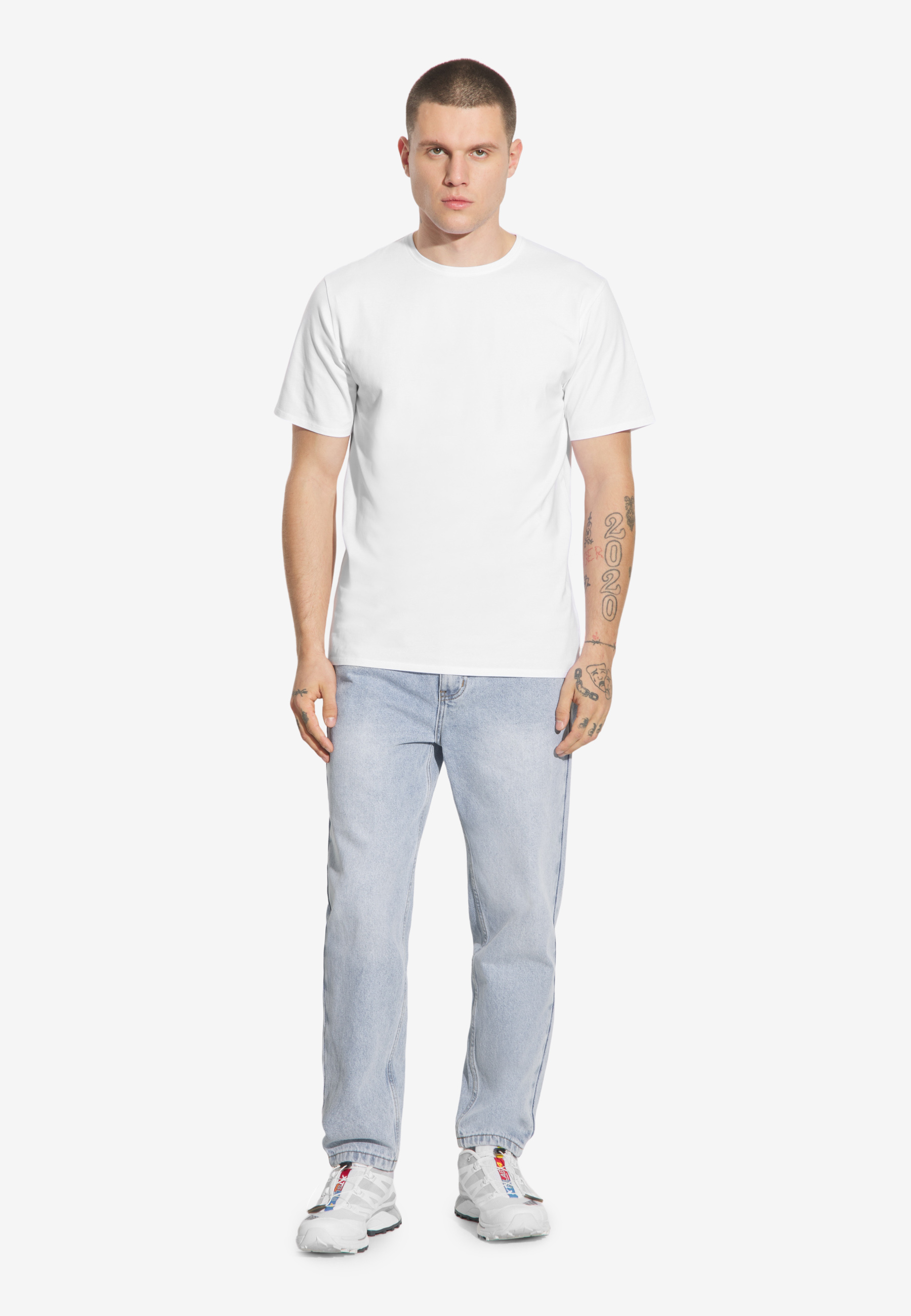 T-shirt Slim White – basic w minimalistycznym wydaniu. Świetny solo lub jako baza do budowania warstwowych stylizacji. Wykonany z mieszanki bawełny i elastanu, dzięki czemu jest miękki, przewiewny i lekko elastyczny. Dopasowany krój slim fit podkreśla sylwetkę, a mała metka z logo Prosto dodaje subtelnego akcentu.