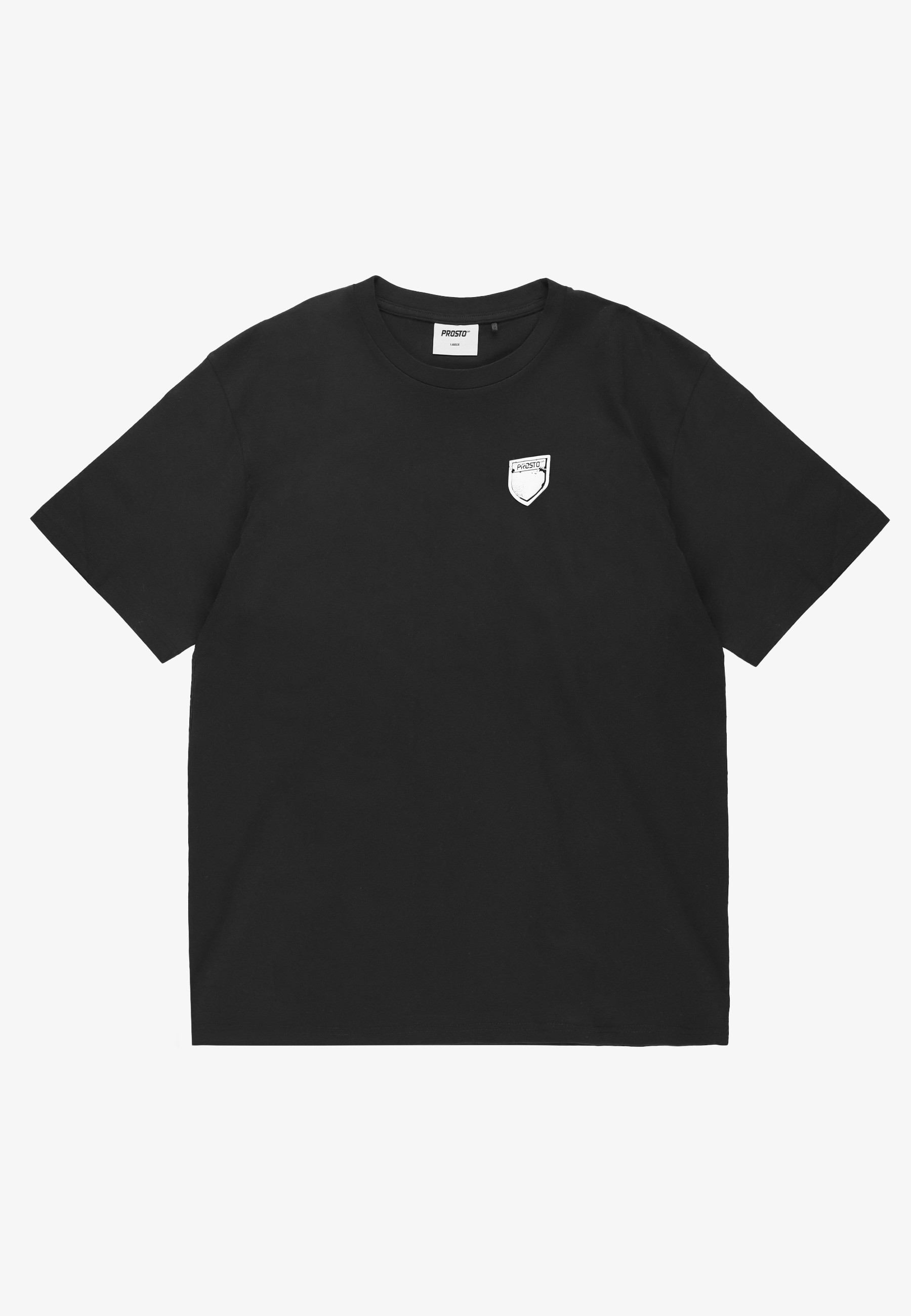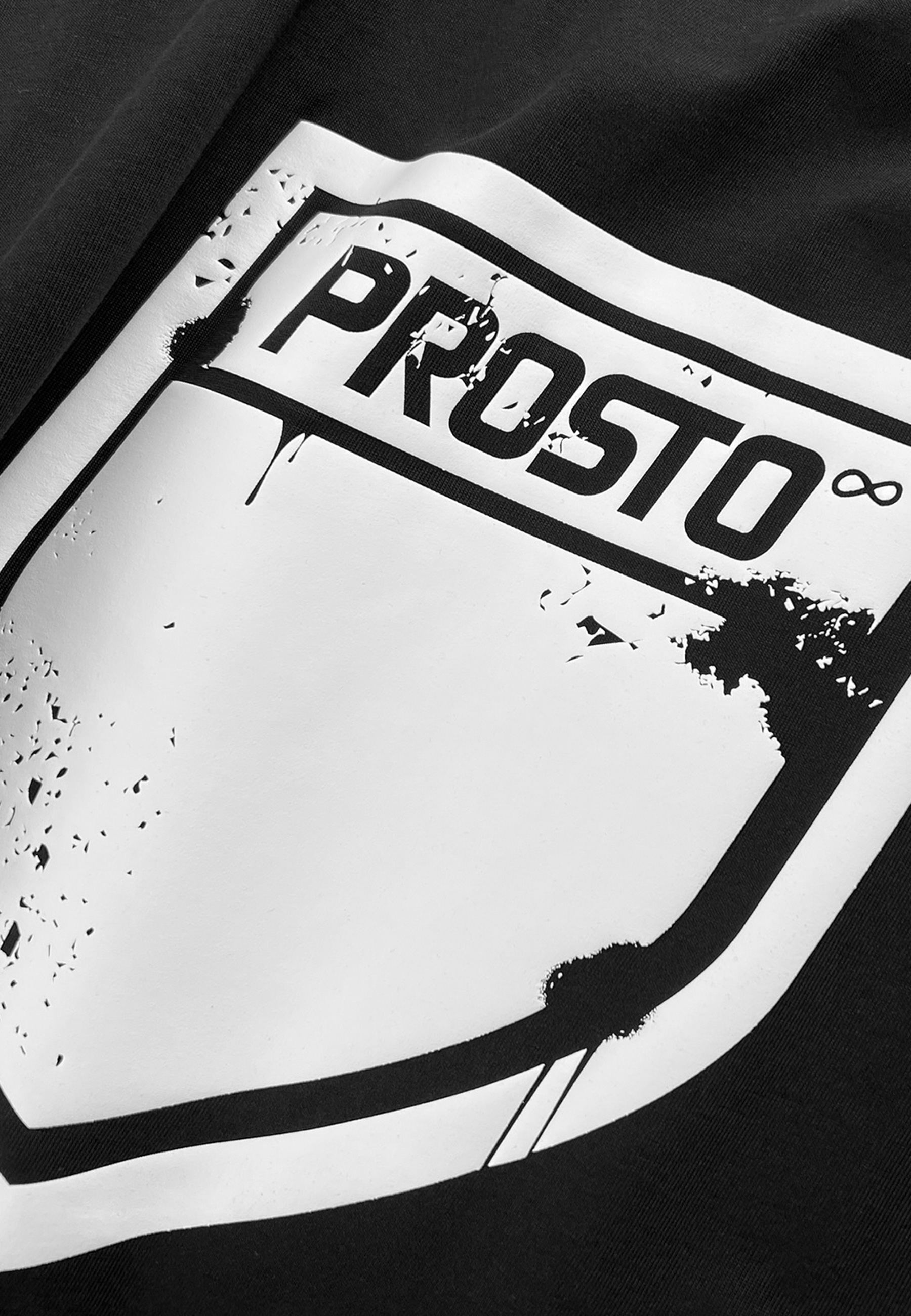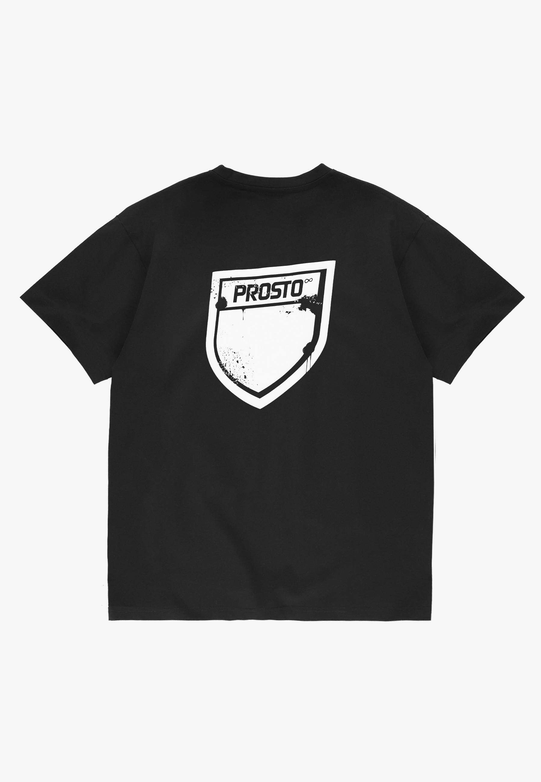 T-shirt Splash Shield Black - męska koszulka z kolekcji Prosto, która łączy klasyczny oversize z wyrazistym detalem. Luźny krój daje swobodę sylwetce, a czarna baza stanowi mocne, czyste tło dla graficznej tarczy Prosto w wersji Splash. Na plecach duży shield z surowym, lekko „zużytym” efektem buduje wyraźny statement, z przodu mniejszy znak subtelnie zapowiada główny motyw. Nadruk wykonany techniką sodo puff tworzy delikatnie wypukłą, przestrzenną strukturę, która dodaje grafice głębi i charakteru. To koszulka, która sprawdza się na co dzień, ale dzięki detalowi robi cały fit.
