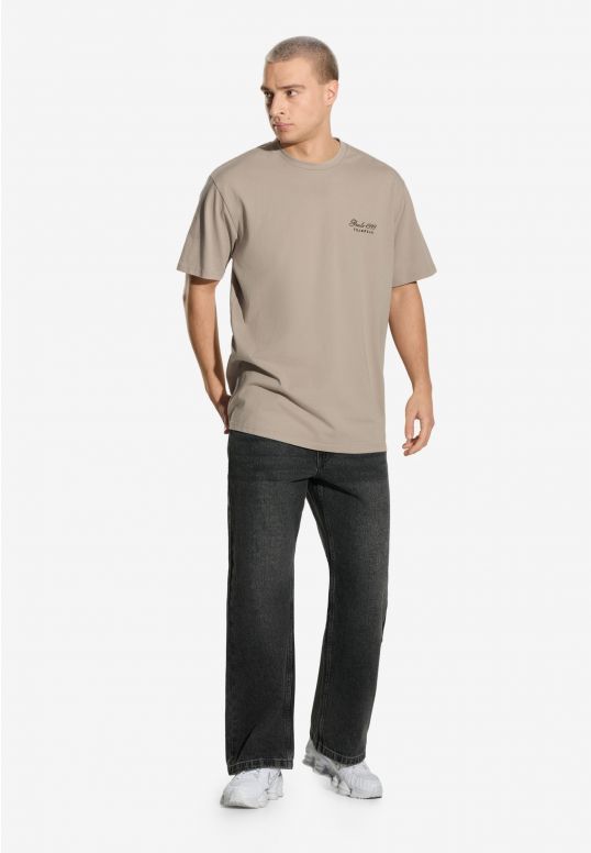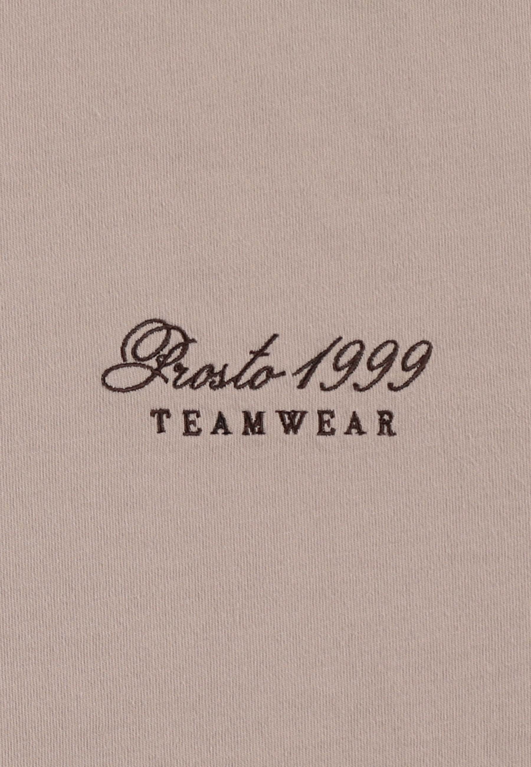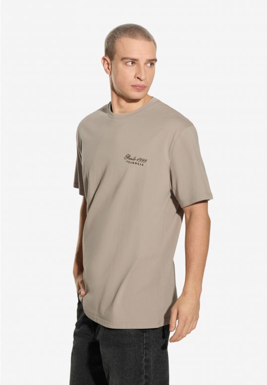 T-shirt Team Beige – klasyczny T-shirt z efektem sprania, który nadaje mu surowego, lekko vintage’owego charakteru. Ma regularny krój i minimalistyczny haft Prosto Teamwear na piersi, inspirowany sportową estetyką lat 90. Wykonany z miękkiej, bawełnianej dzianiny o przyjemnej strukturze, dobrze układa się na sylwetce i zapewnia komfort noszenia. To uniwersalny model, który sprawdzi się zarówno w casualowych, jak i streetowych stylizacjach.
