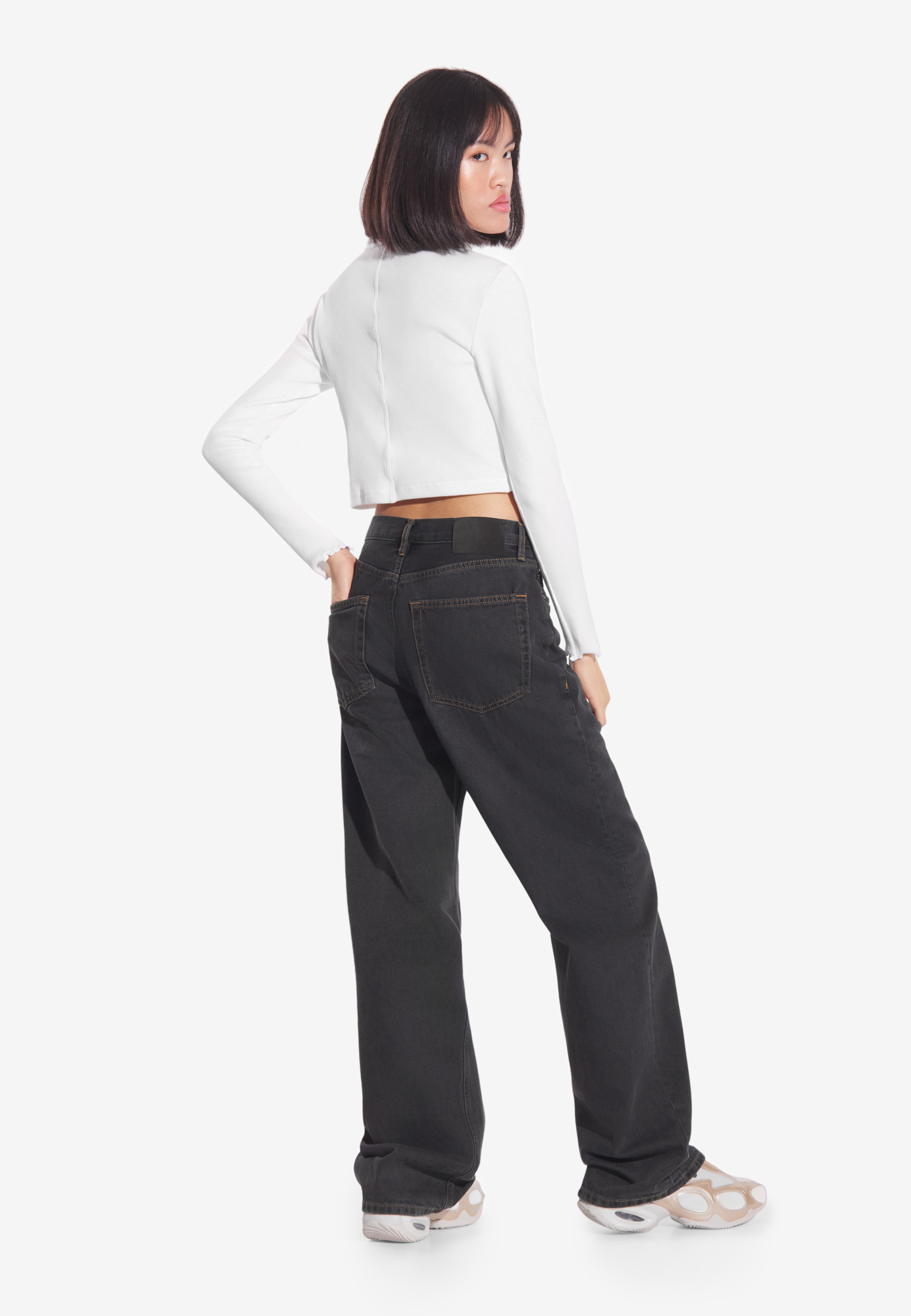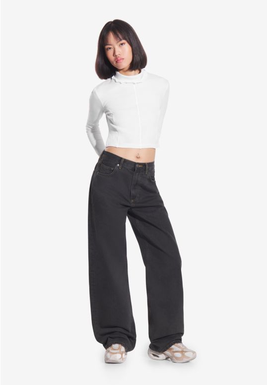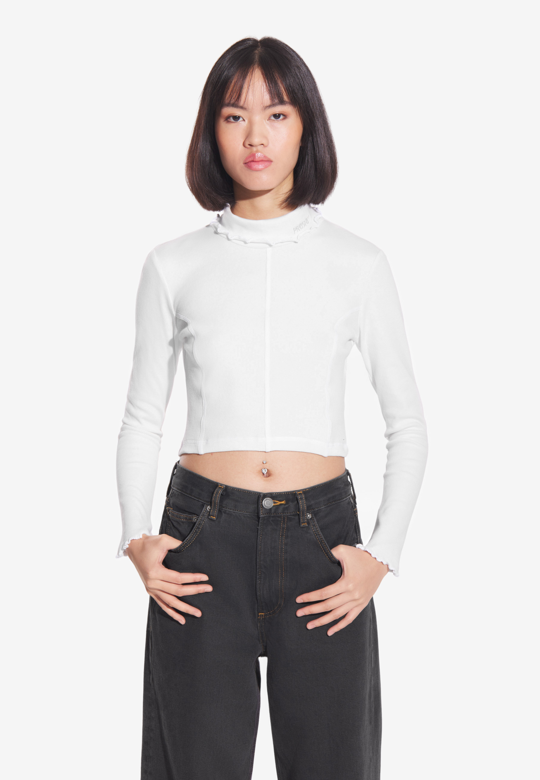 Turtleneck Ribbed Off-White – dopasowany damski longsleeve z kolekcji Prosto w odcieniu off-white. Ma krótki, taliowany krój i ozdobny golf, który delikatnie podkreśla linię szyi. Wykonany z elastycznej, prążkowanej dzianiny bawełnianej z dodatkiem elastanu. Przeszycia optycznie modelują sylwetkę, nadając całości charakter. To kobiecy, dopracowany model, który łączy wygodę i estetykę.