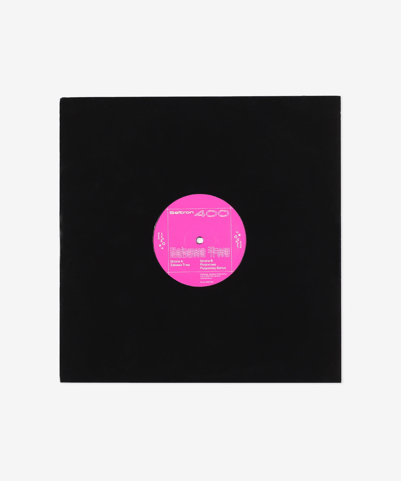 Seltron 400 to projekt dedykowany bezkompromisowym formom muzyki tanecznej, który współtworzą dwaj producenci: SLG i Eltron John. Jako duet sprytnie wyłamują się z dominujących muzycznych konwencji, tworząc unikatowe i ekstatyczne, acz nie pozbawione specyficznego poczucia humoru brzmienie. Na pierwsze wydawnictwo w MOST Records Seltron 400 przygotowali trzy utwory. Tytułowy track „Zabawa Trwa” to potężny rytm i budujący napięcie motyw przewodni, które rozwijają się aż do dramatycznego finału. Bez wątpienia sprawią, że każdy miłośnik tańca zapragnie unieść ręce powyżej linii ramion.