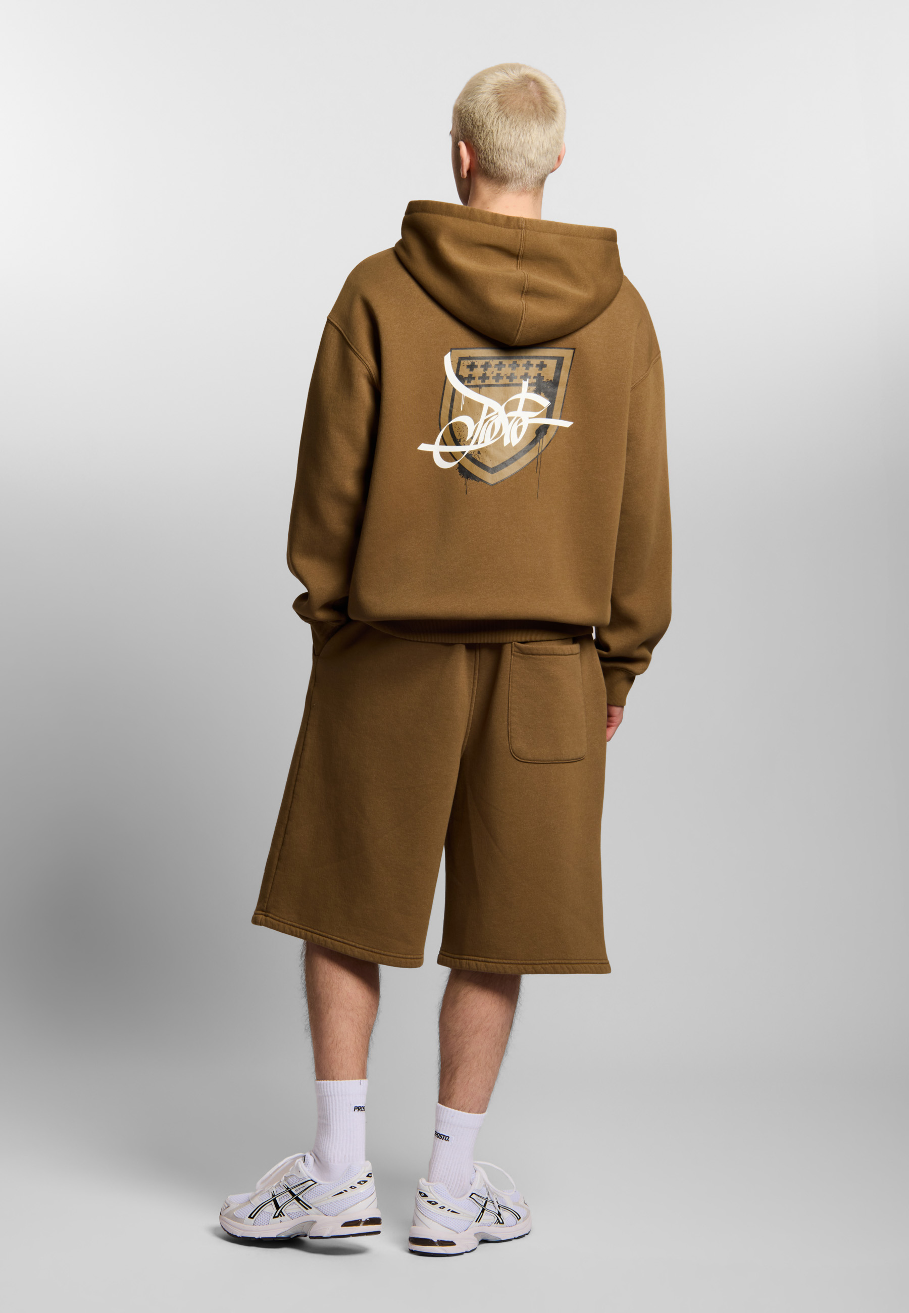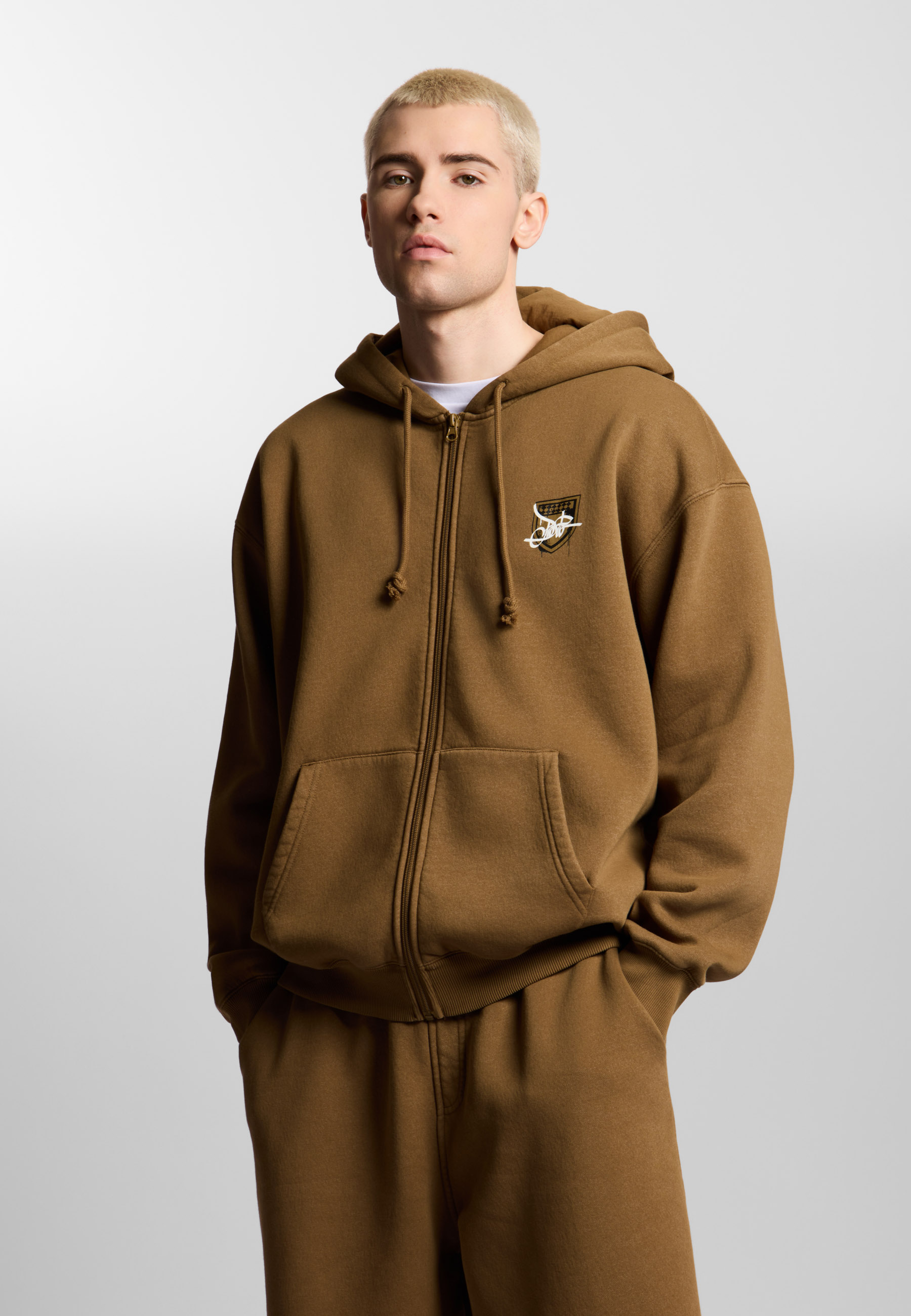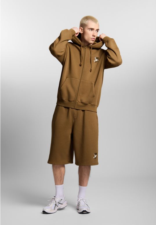 Bluza Zip Hoodie Damage Target Washed Cinnamon Beige - męska bluza z kapturem Prosto w odcieniu washed cinnamon beige. Sprany beż nadaje jej nowoczesny, streetwearowy charakter, a głównym elementem projektu jest duża grafika na plecach. Tarcza Prosto w wersji Damage Target wygląda jak znak pozostawiony w ruchu - lekko naruszona, dynamiczna i celowo niedoskonała, dzięki czemu całość ma surowy, autentyczny vibe. Na froncie pojawia się mniejszy detal graficzny, który równoważy projekt. Bluza rozpinana z kapturem i sznurkami daje wygodę i łatwo wpisuje się w codzienne stylizacje - od prostych streetowych zestawów po bardziej dopracowane fit’y.