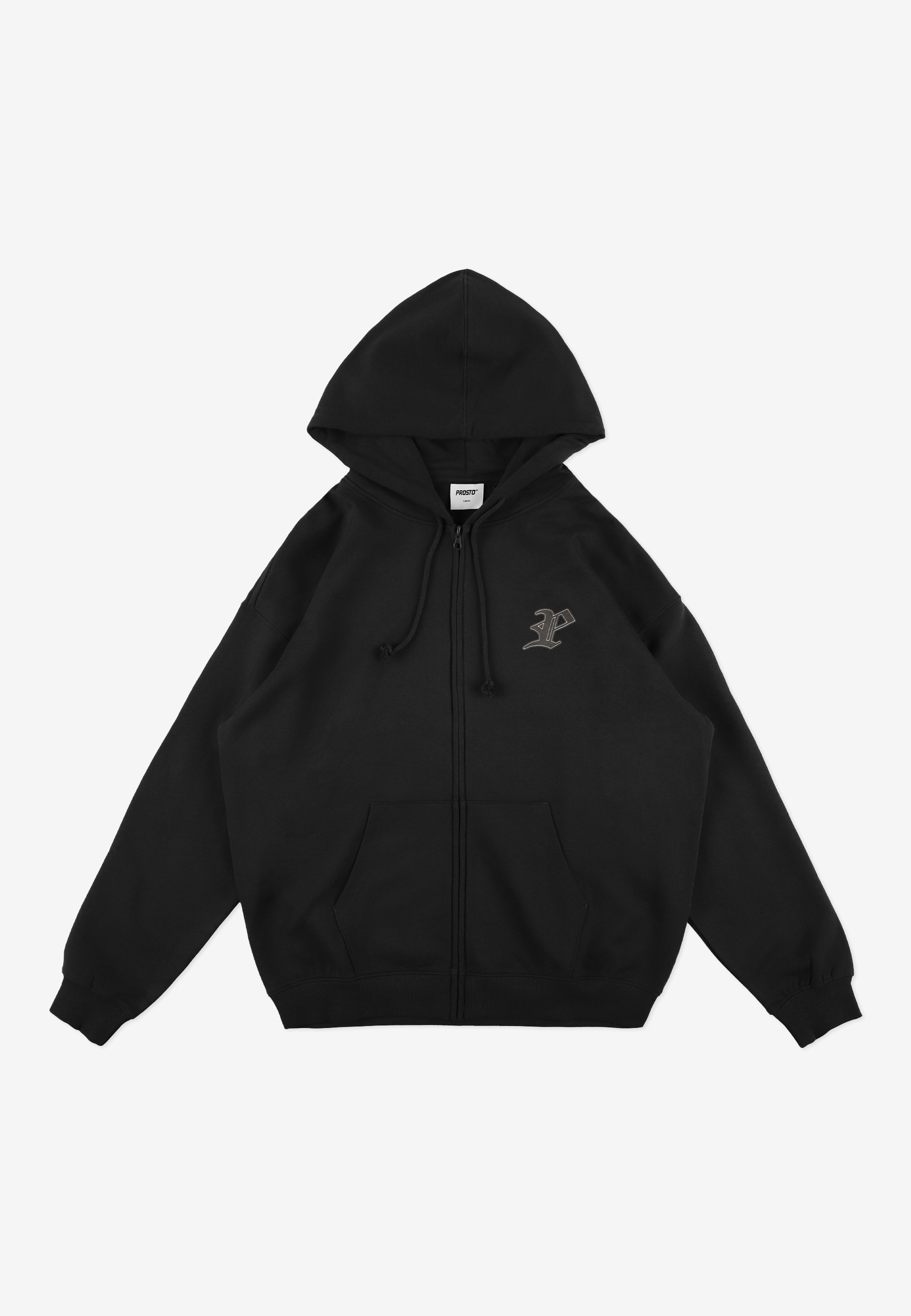 Zip Hoodie Gothic P Black – klasyczne czarne Hoodie w unowocześnionym wydaniu. Gotycka litera „P” na piersi i plecach to odejście od typowej formy logo Prosto – zamiast pełnego napisu mamy minimalistyczny, ale mocny symbol, który wyróżnia ten model. Miękka, mięsista dzianina otula i zapewnia komfort, a zamek na całej długości pozwala nosić bluzę na wiele sposobów – rozpiętą na luźny t-shirt lub zapiętą, kiedy zrobi się chłodniej.