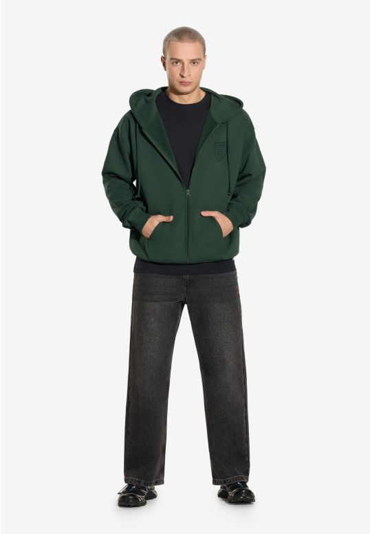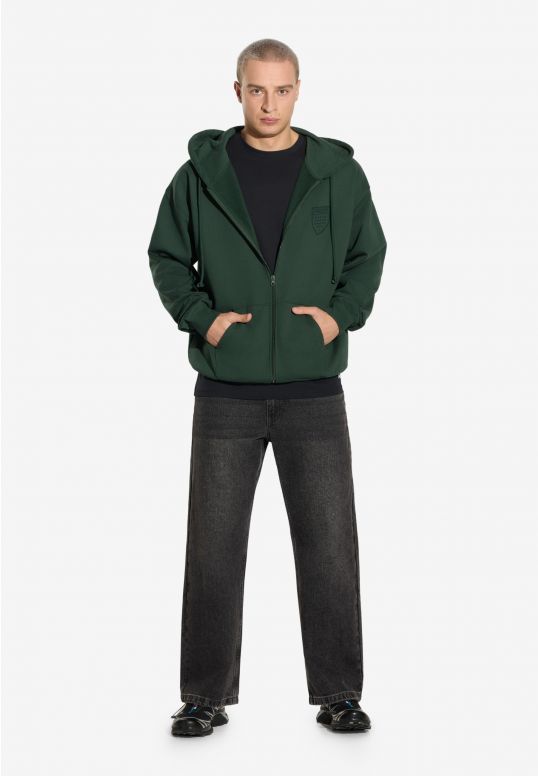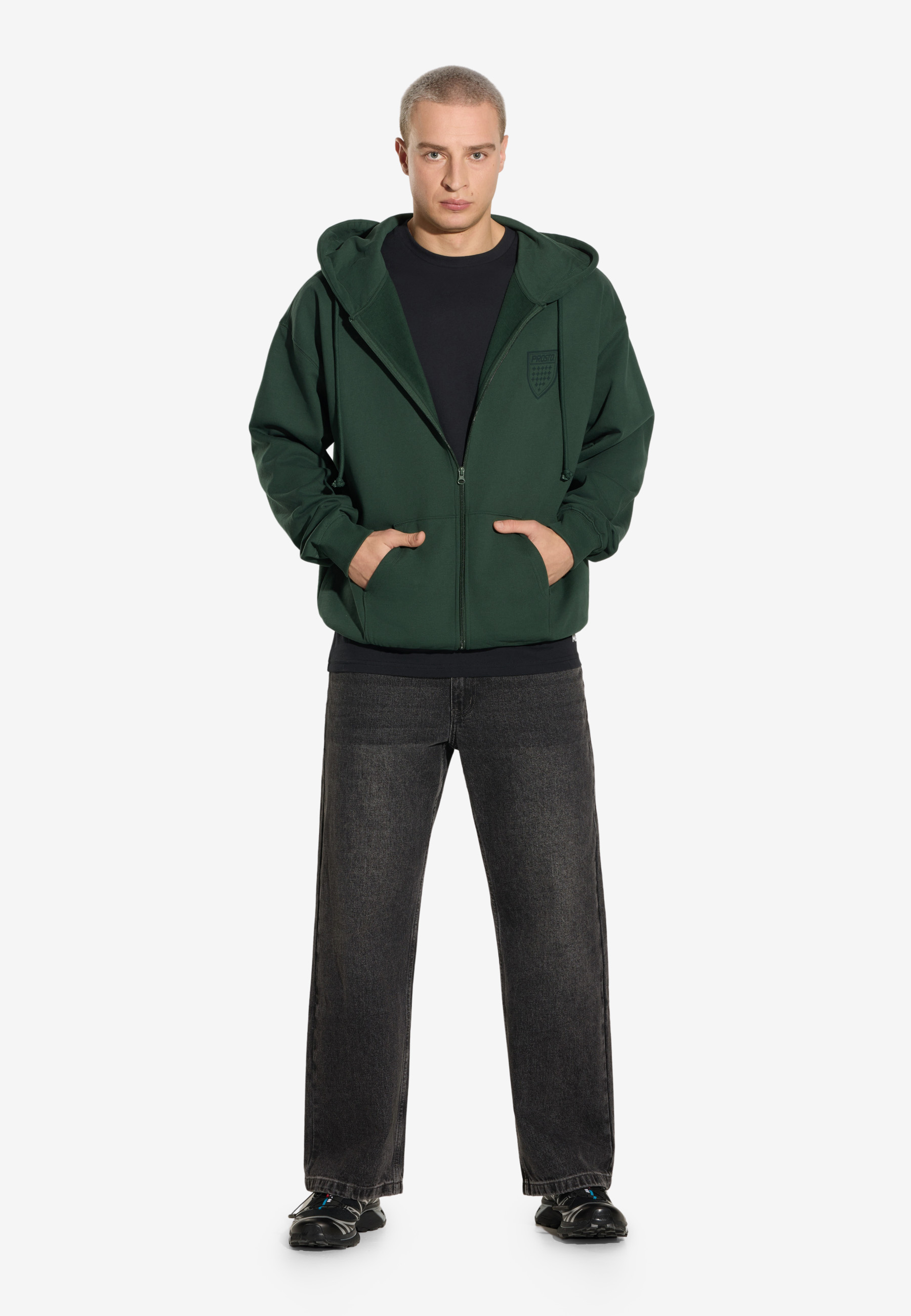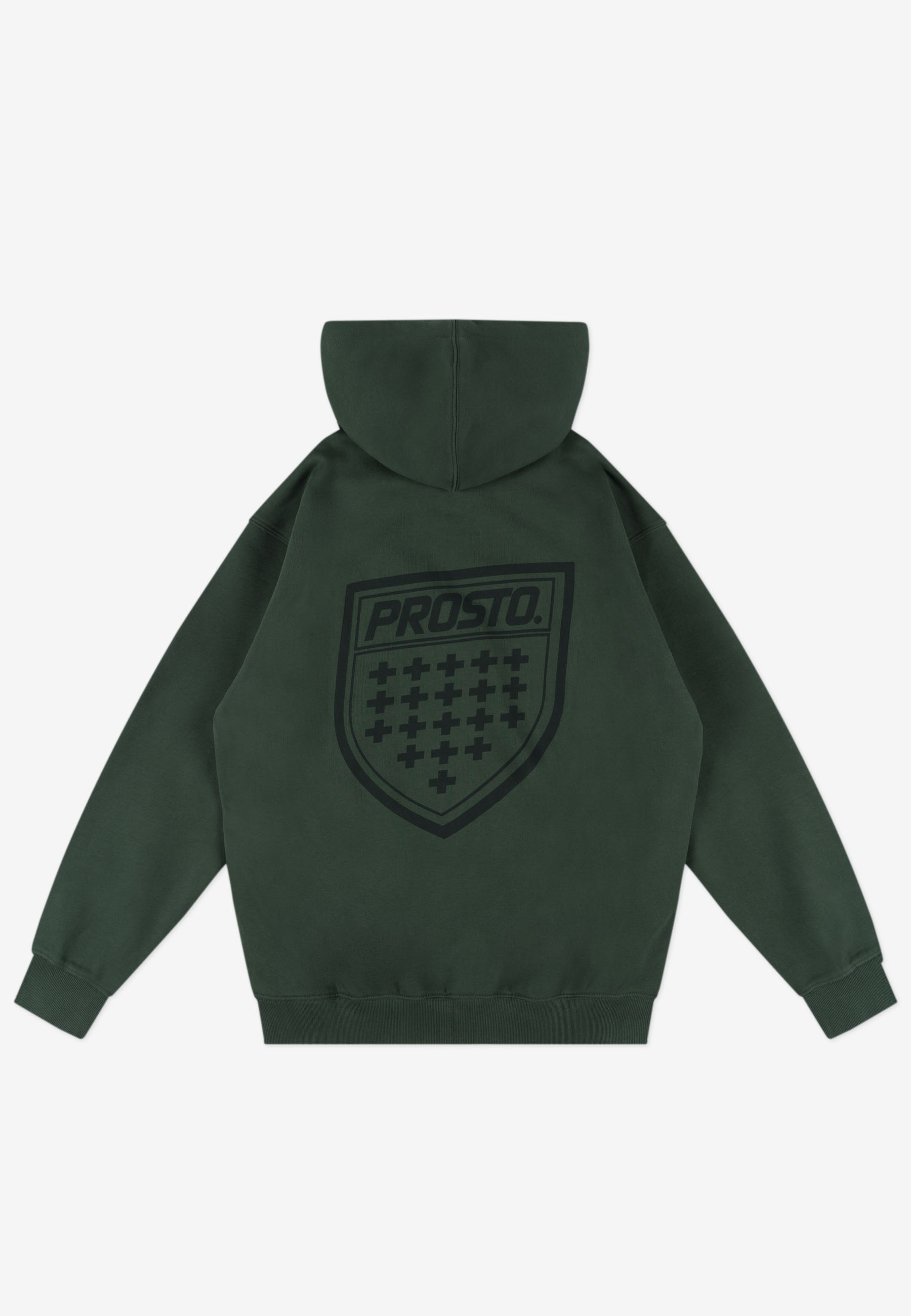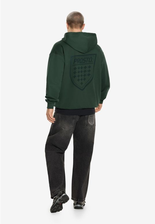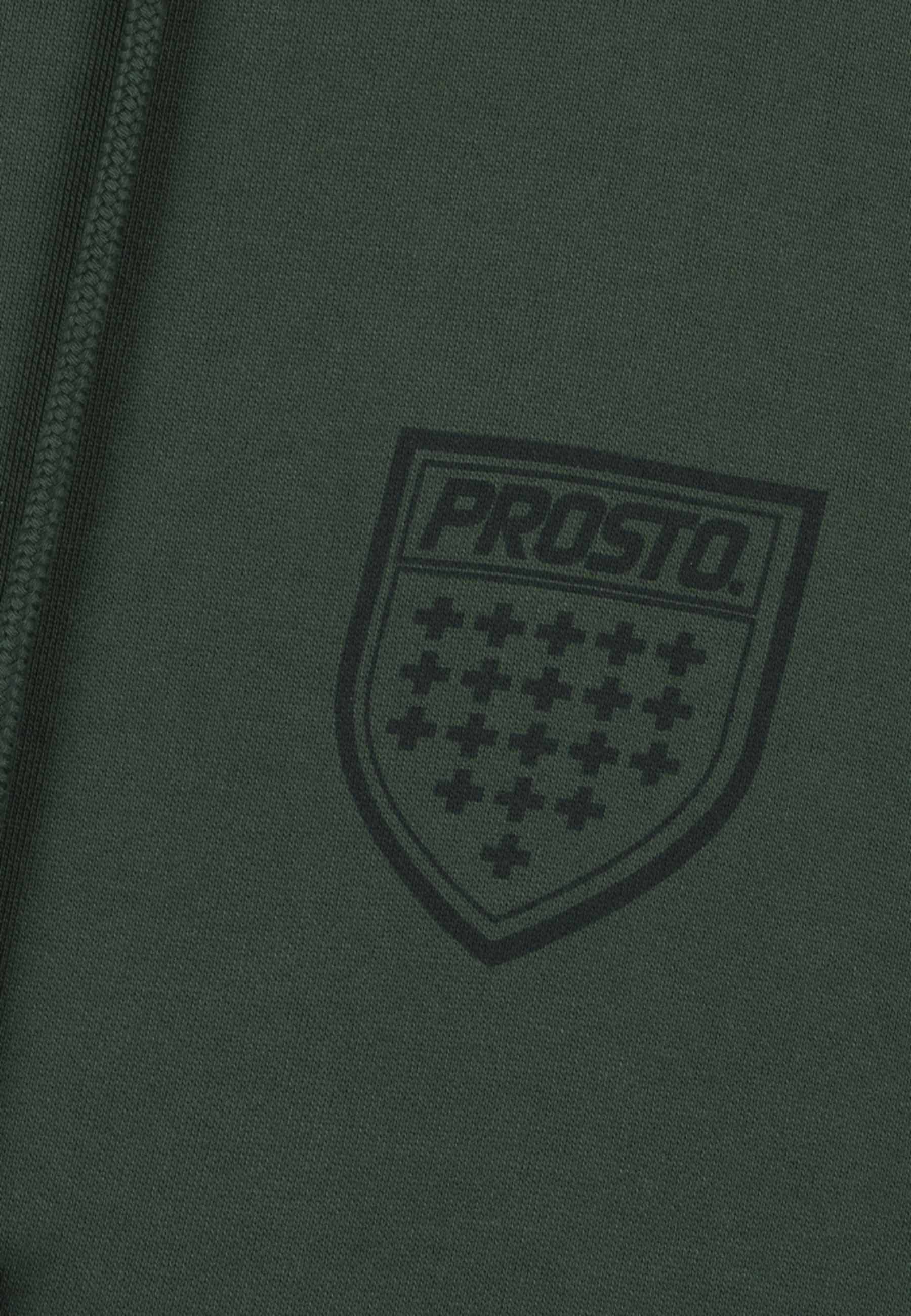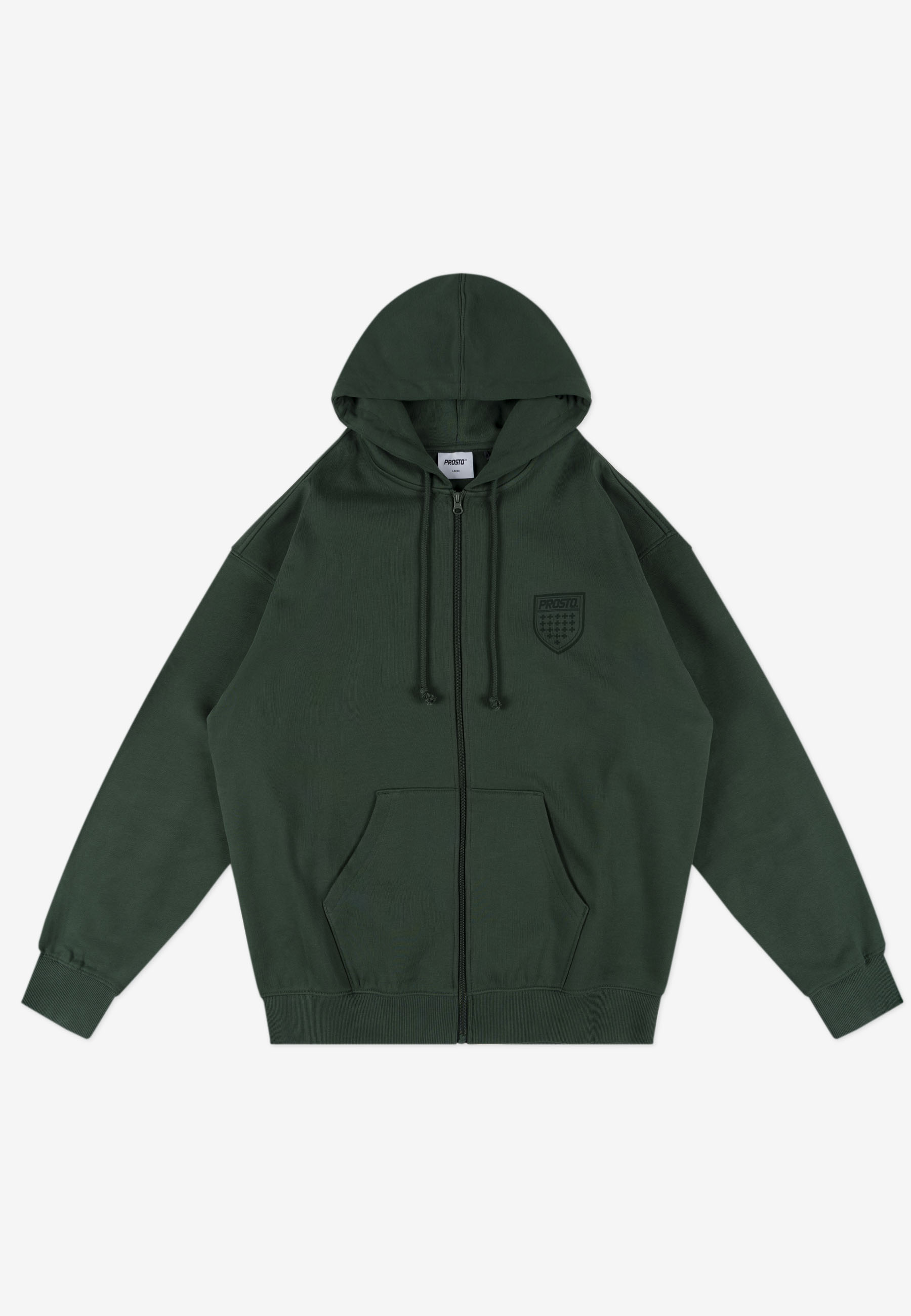 Zip Hoodie Shield Khaki – klasyczna bluza z kapturem z kolekcji Prosto, będąca częścią dropu inspirowanego kultową tarczą. Model ma regularny krój i został wykonany z grubej, bawełnianej dzianiny typu fleece, zapewniającej komfort i trwałość. Nadruk water print w odcieniu zbliżonym do koloru materiału nadaje całości stonowany, dopracowany wygląd. Bluza ma zamek na całej długości, kieszeń typu kangurka i elastyczne ściągacze, które gwarantują wygodne dopasowanie.