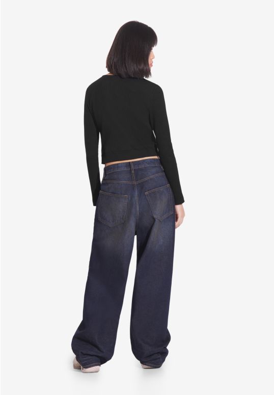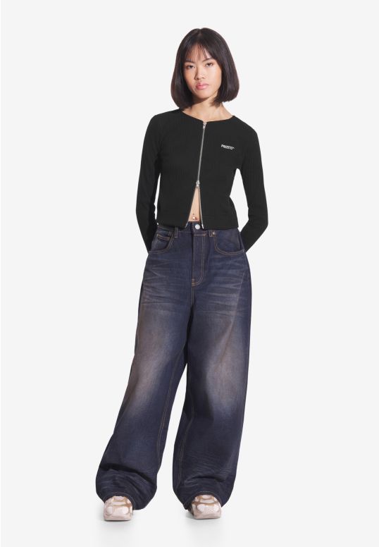 Zip Ribbed longsleeve rozpinany damski czarny