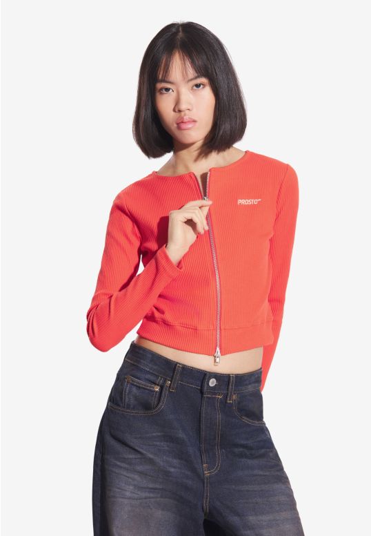 Zip Ribbed longsleeve rozpinany damski czerwony