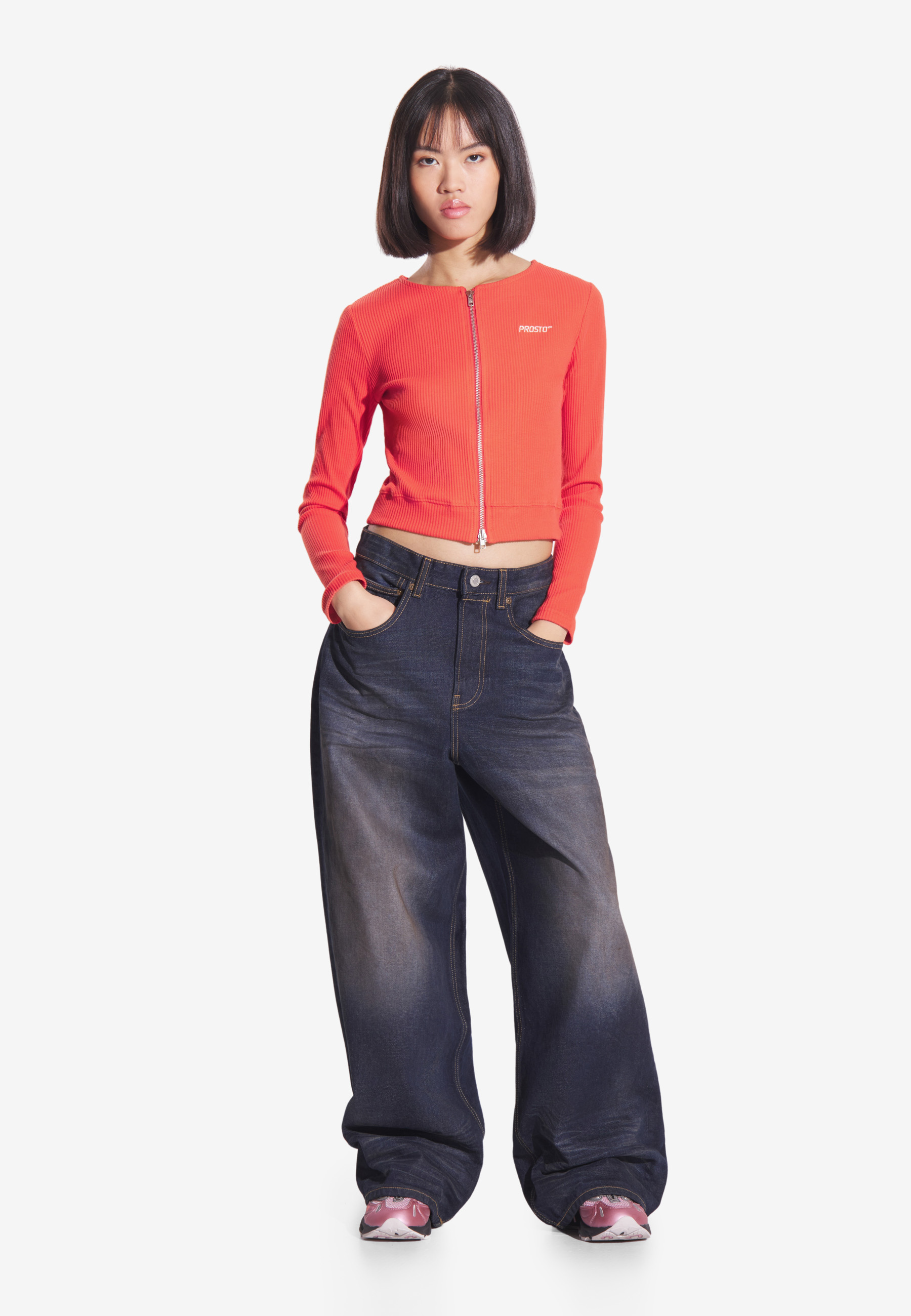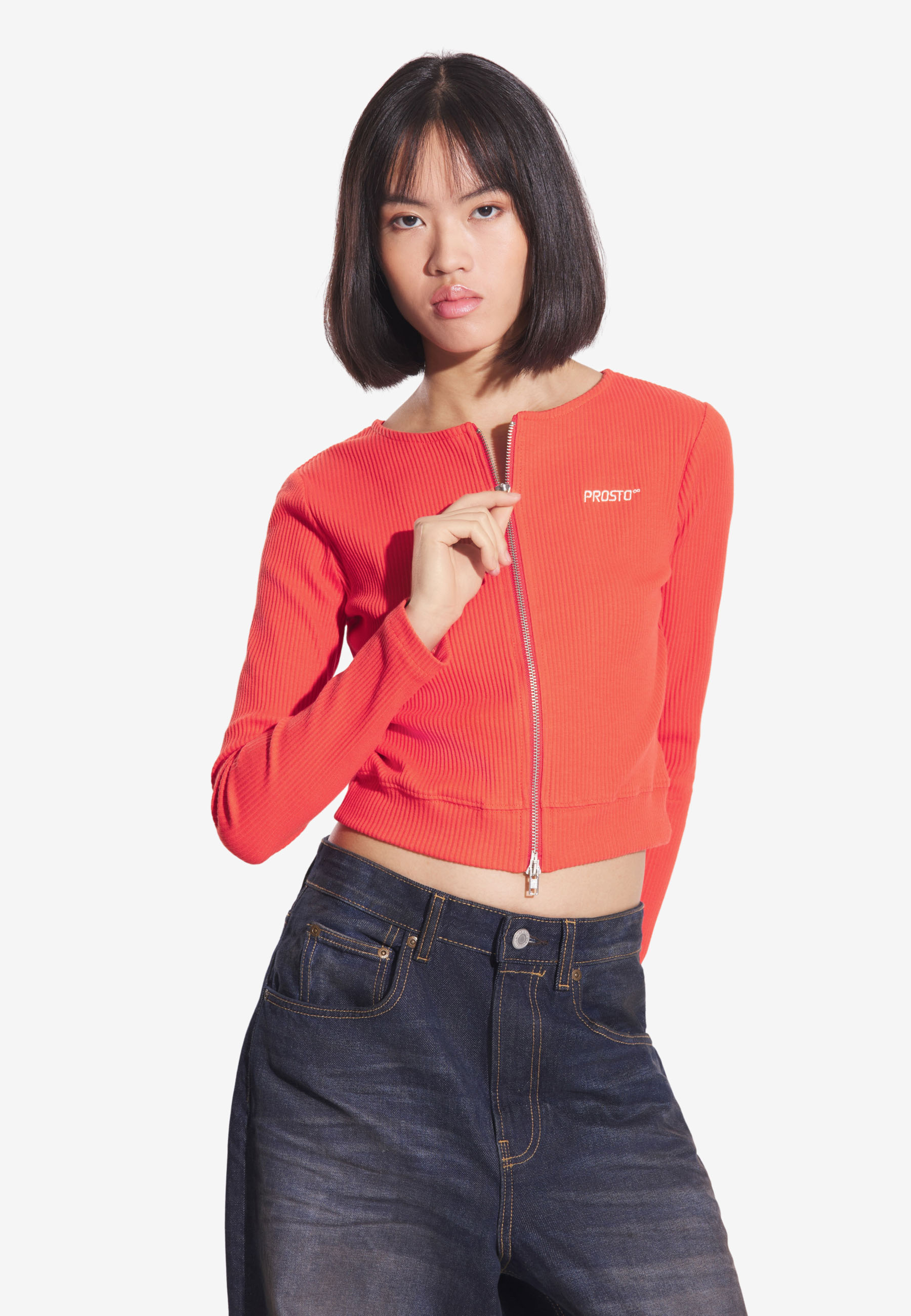 Zip Sweatshirt Ribbed Red – taliowany damski longsleeve z kolekcji Prosto w intensywnym, czerwonym kolorze. Wykonany z elastycznej, prążkowanej dzianiny bawełnianej z dodatkiem elastanu. Ten dopasowany top podkreśla sylwetkę, zapewniając jednocześnie ciepło i komfort noszenia. Dwustronny metalowy zamek na całej długości pozwala na różne sposoby dopasowania i stylizacji – od subtelnego rozpięcia po bardziej odważne formy. To kobiecy, nowoczesny model, który łączy prostotę z wyrazistym charakterem.